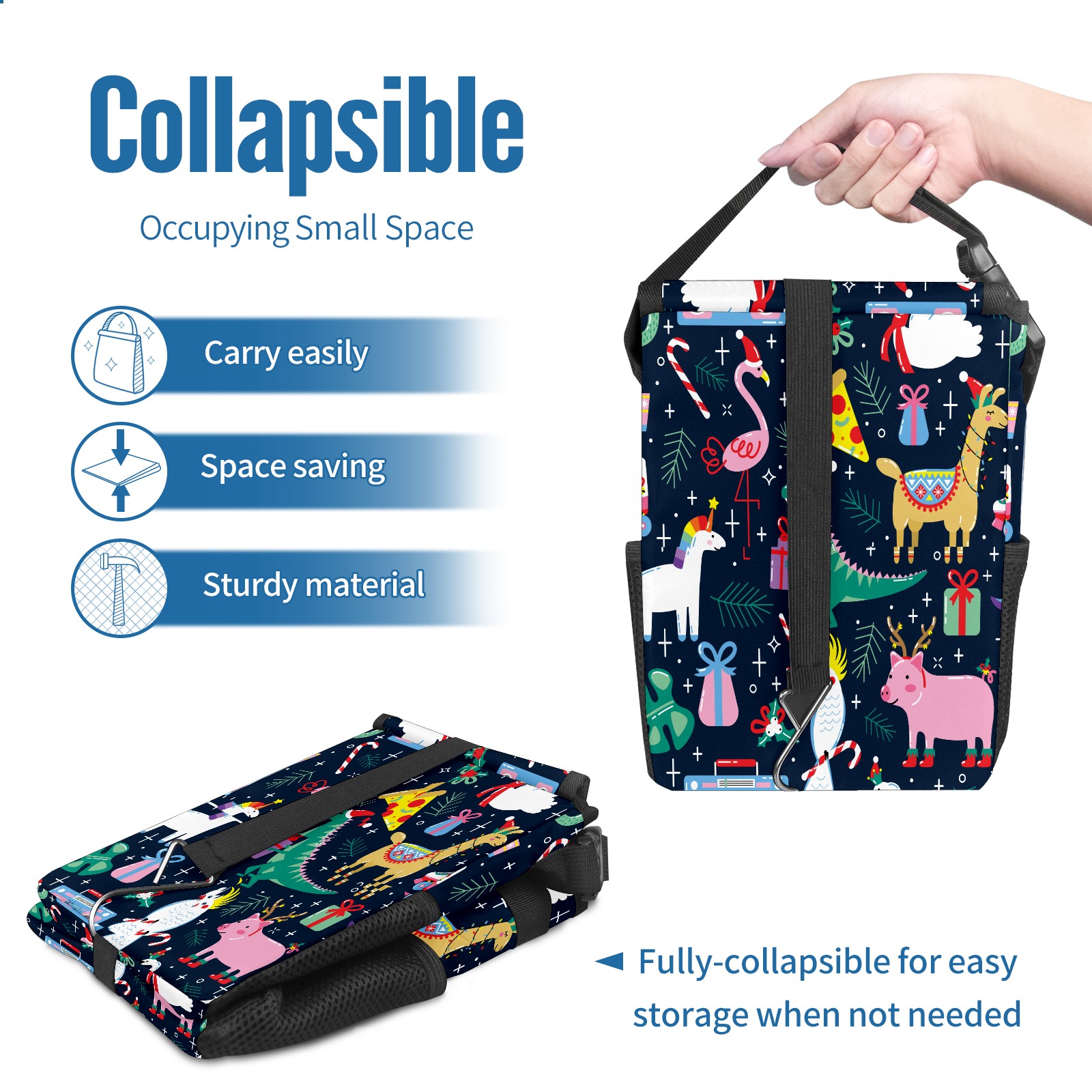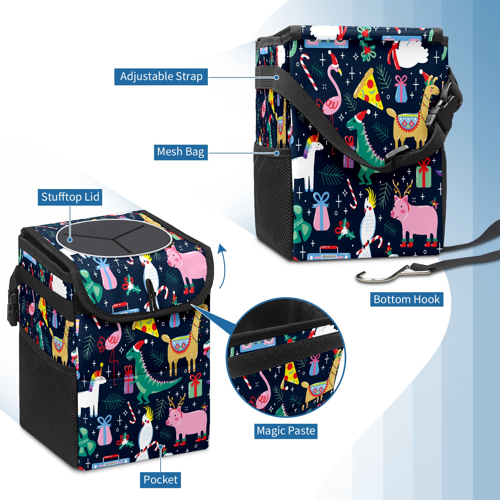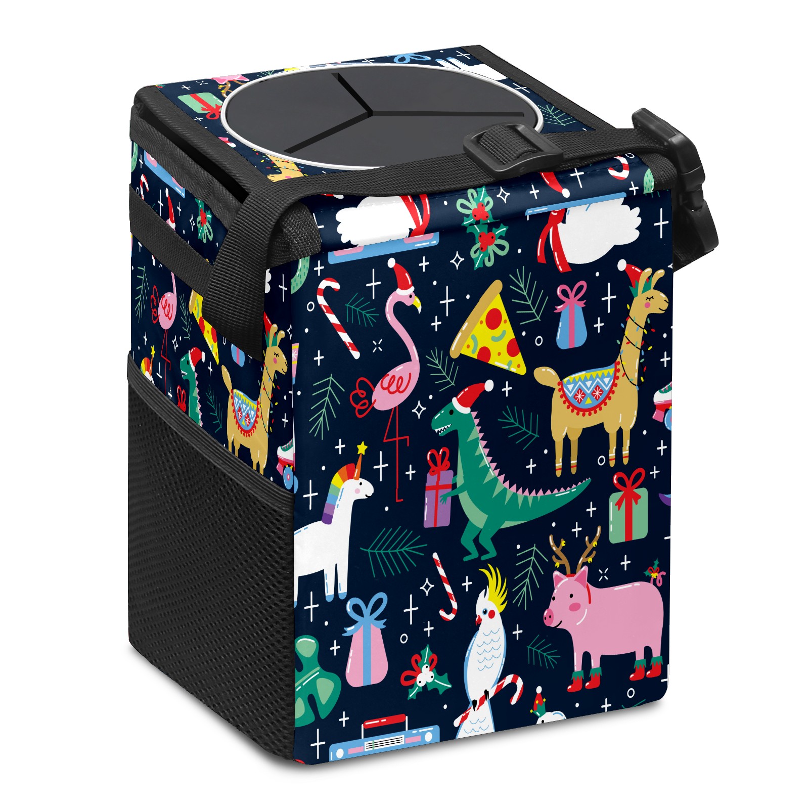 Car Trash Bin with Lid Auto Garbage Bag Hanging for Back Seat - Leakproof Trash Can for Cars SUVs Trucks Vehicle Car Accessories (Christmas Flamingo Unicorn Alpaca Dinosaur)