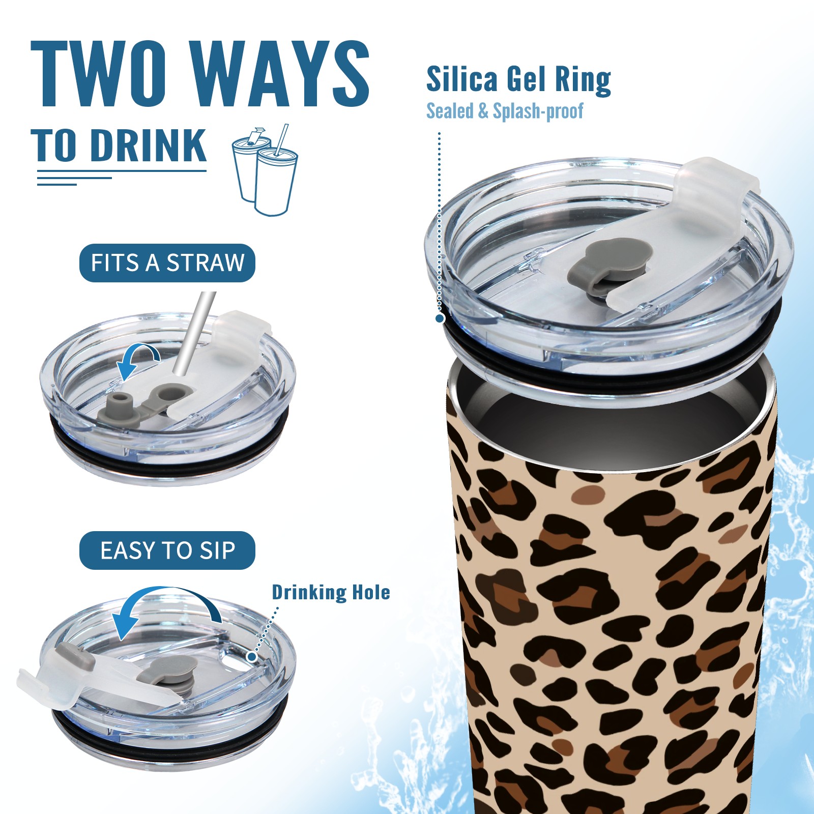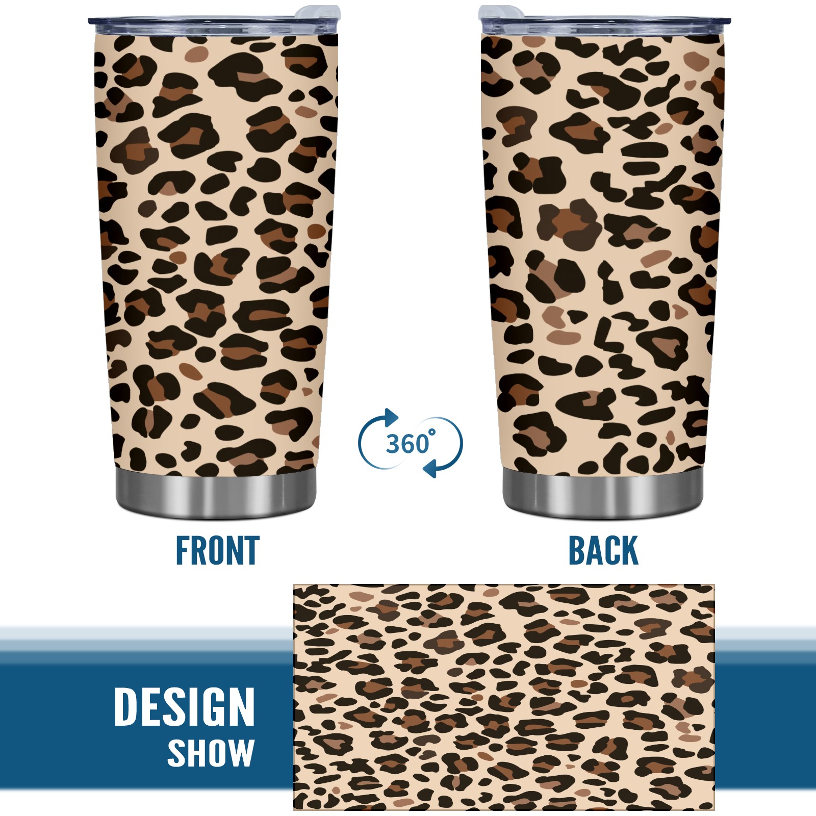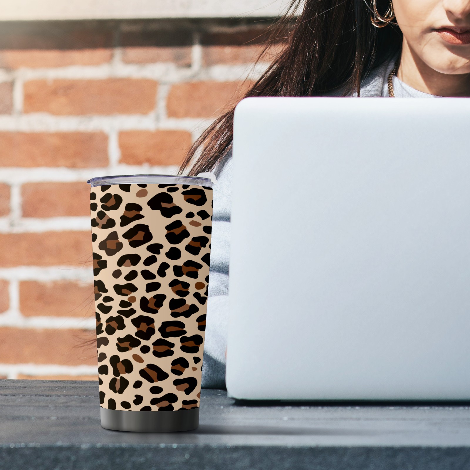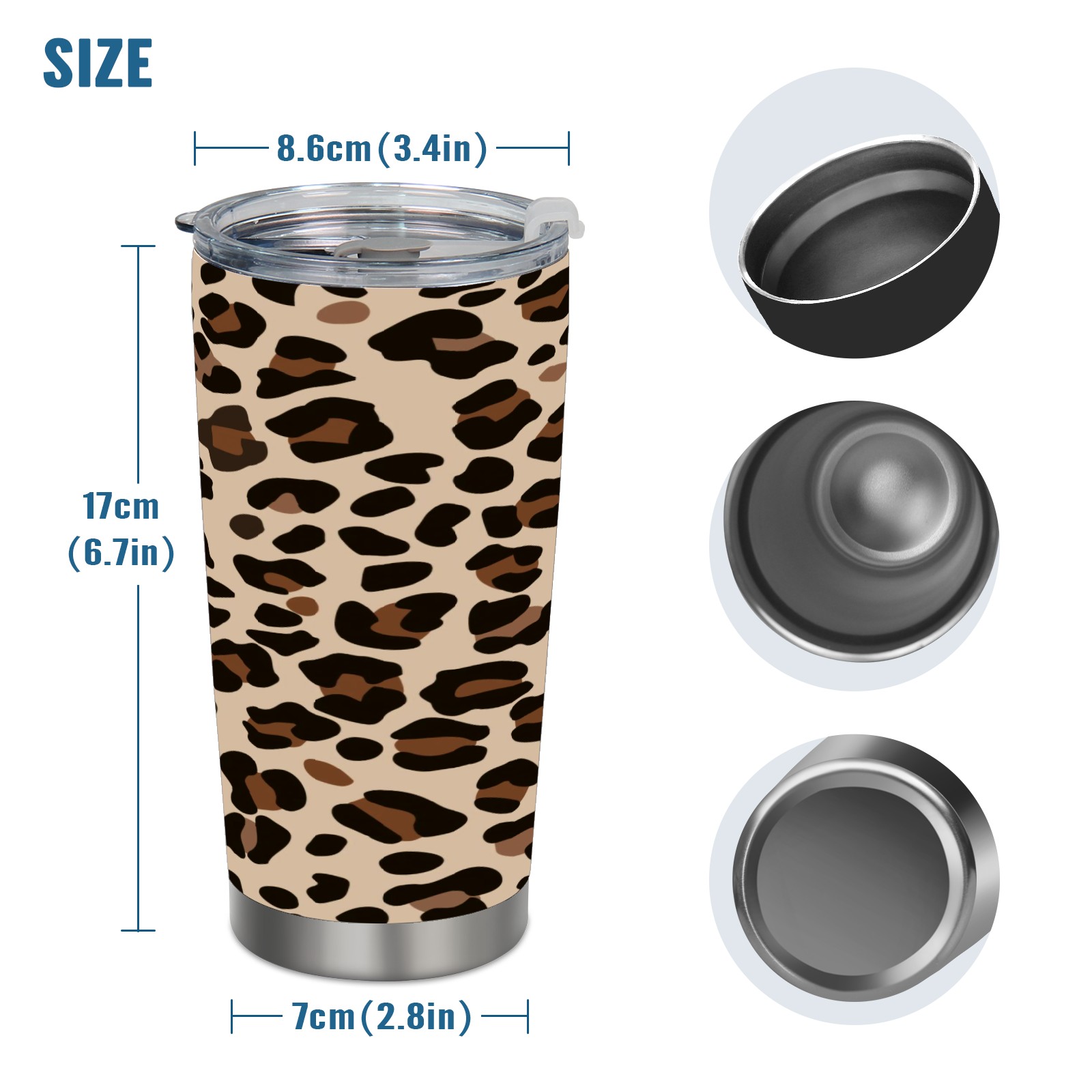 20 oz Tumbler Leopard Brown Print Stainless Steel Insulated Tumbler with Lid Double Wall Vacuum Insulated Travel Mug Cup for Coffee Ice Hot Drinks