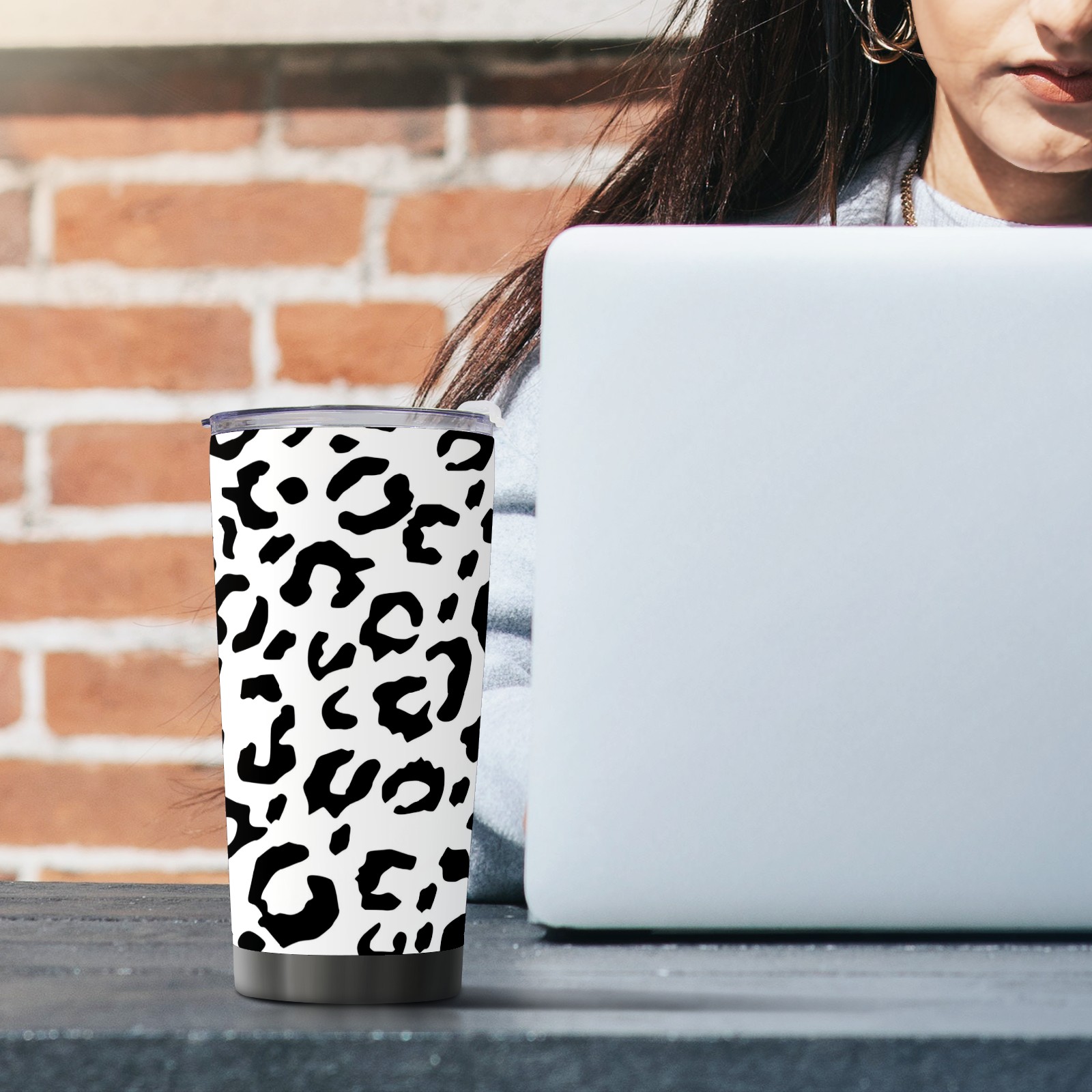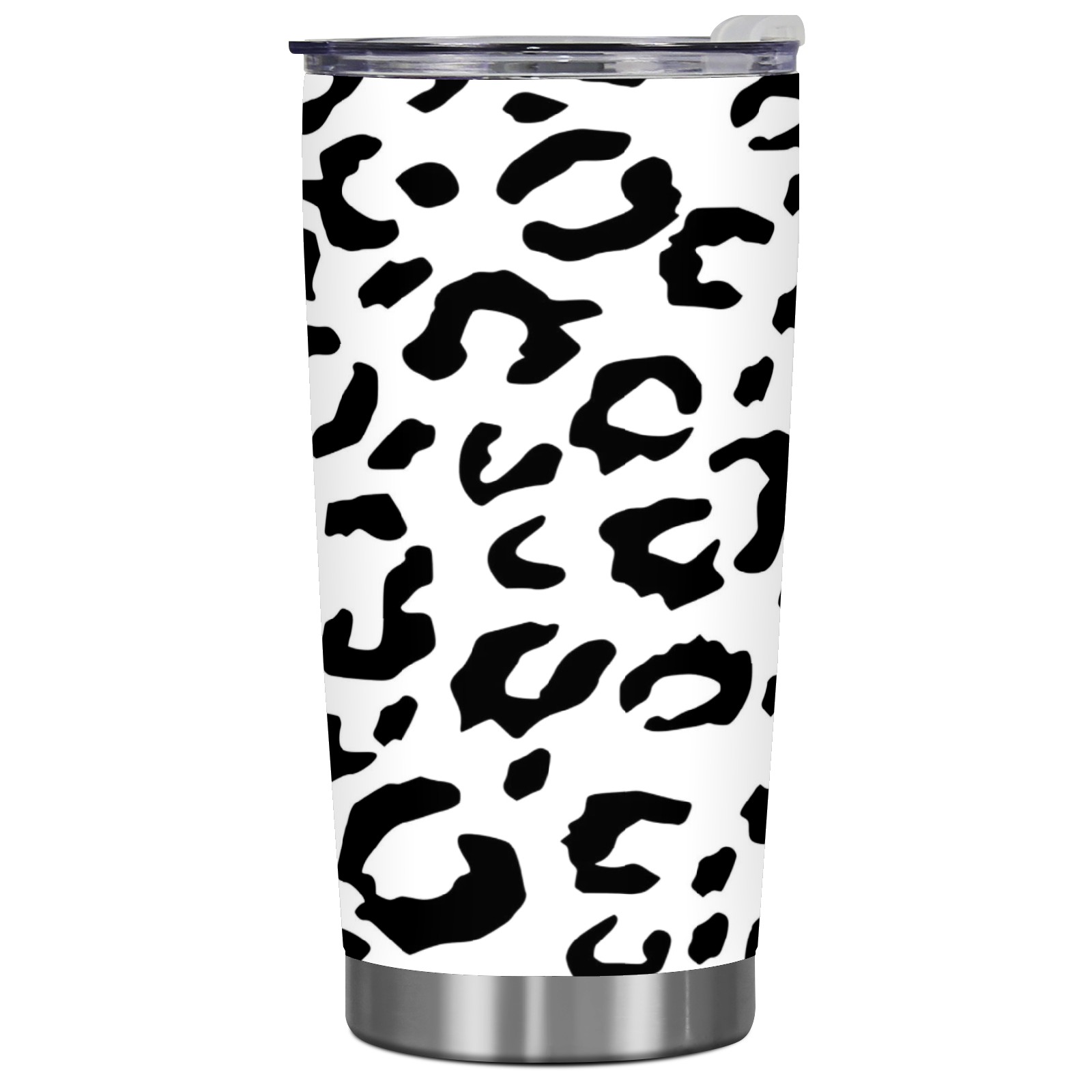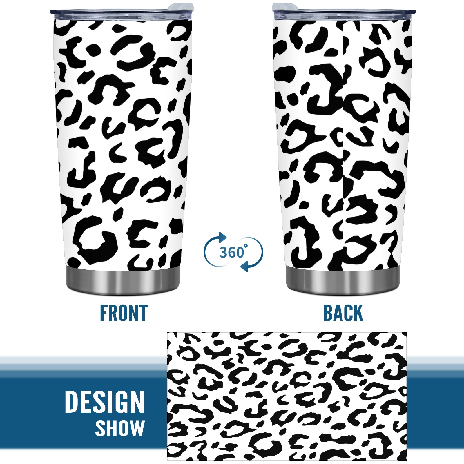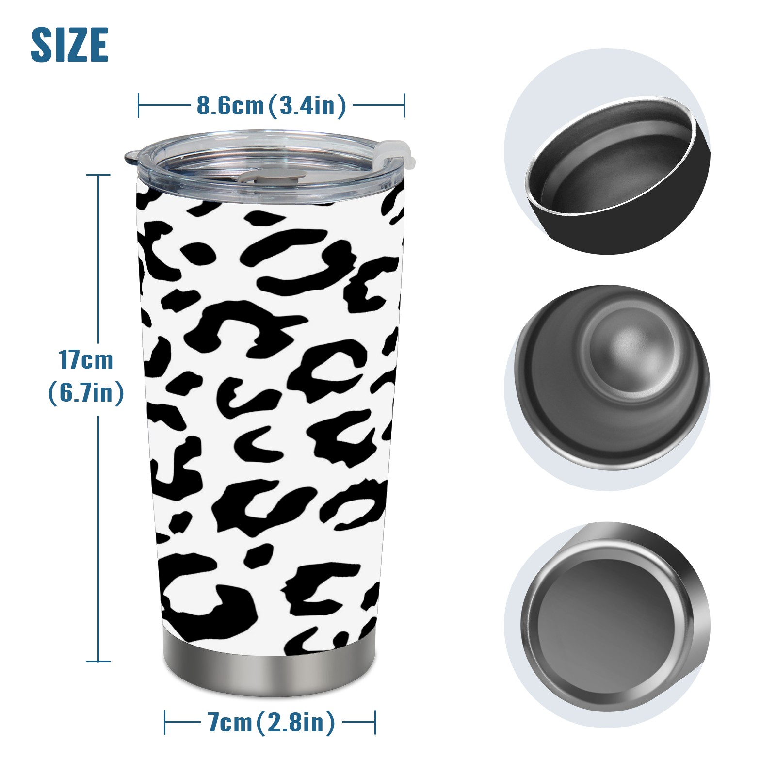 20 oz Tumbler Black White Leopard Print Stainless Steel Insulated Tumbler with Lid Double Wall Vacuum Insulated Travel Mug Cup for Coffee Ice Hot Drinks