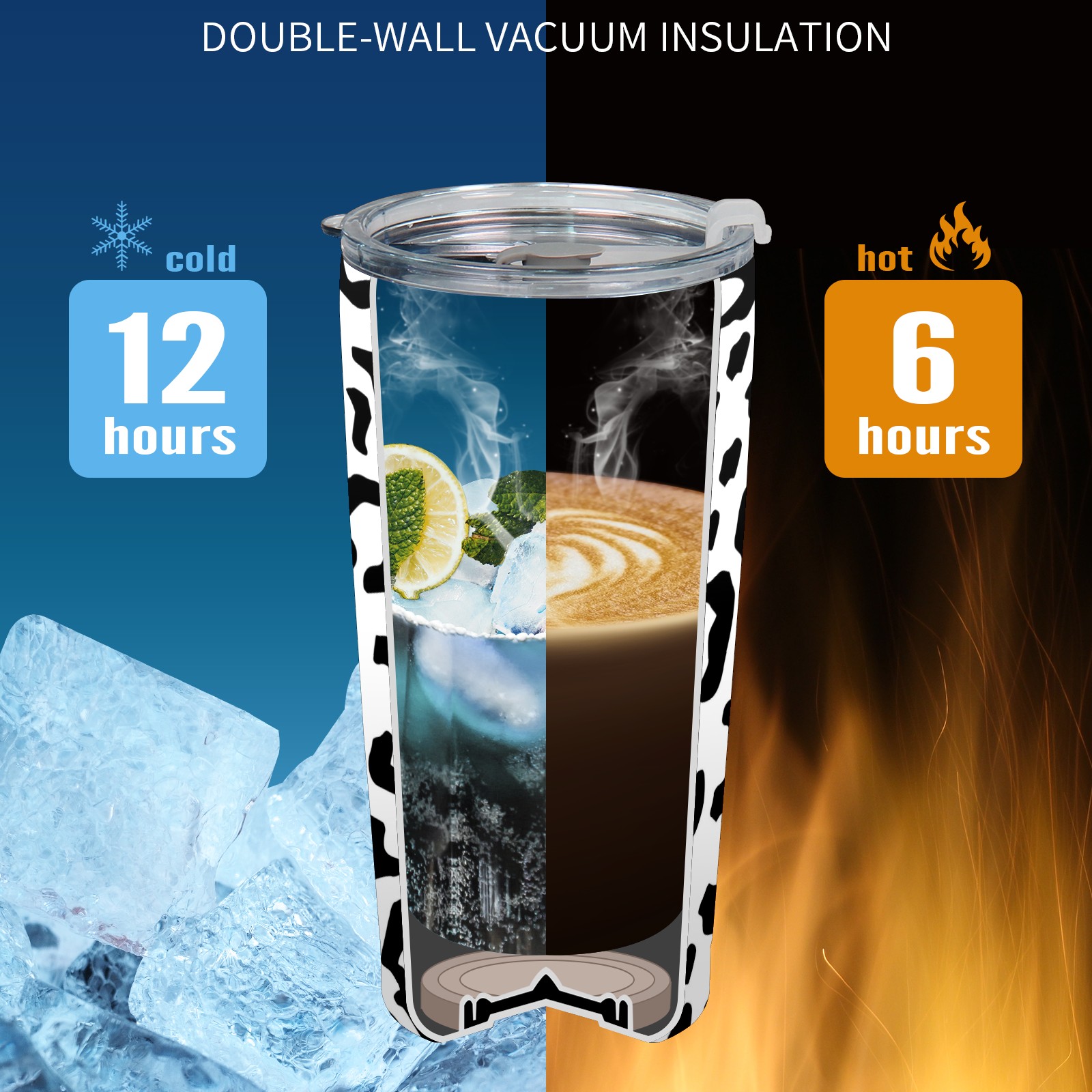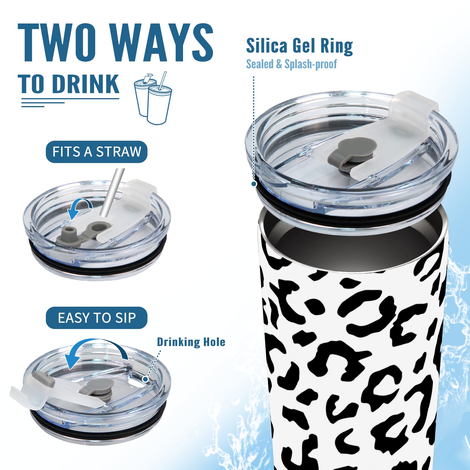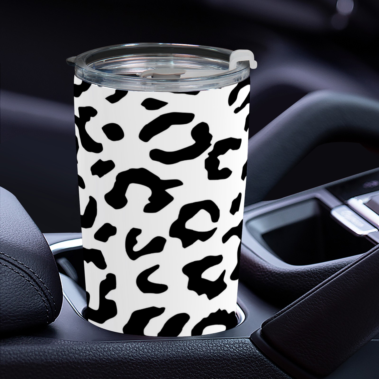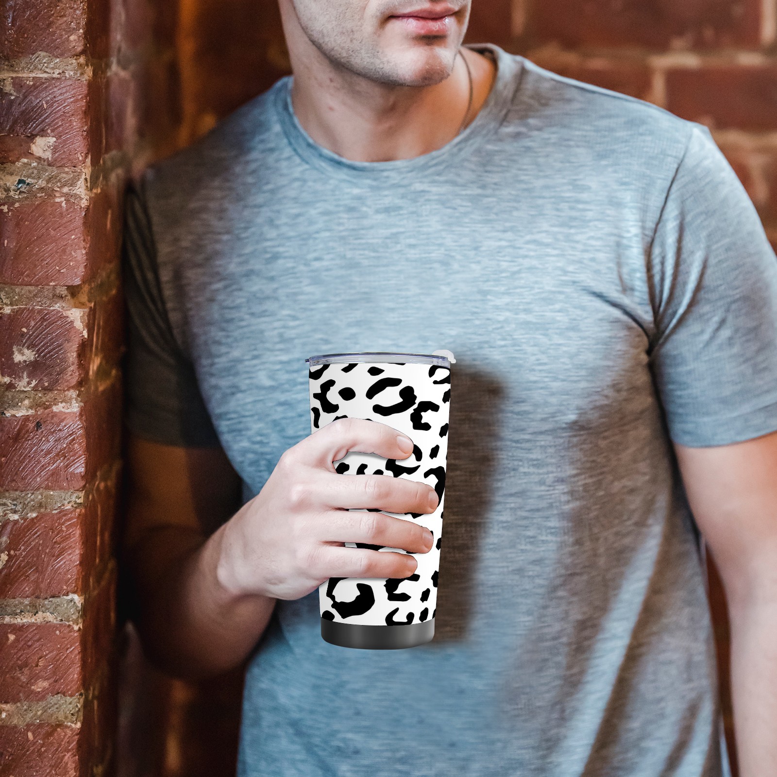 20 oz Tumbler Black White Leopard Print Stainless Steel Insulated Tumbler with Lid Double Wall Vacuum Insulated Travel Mug Cup for Coffee Ice Hot Drinks