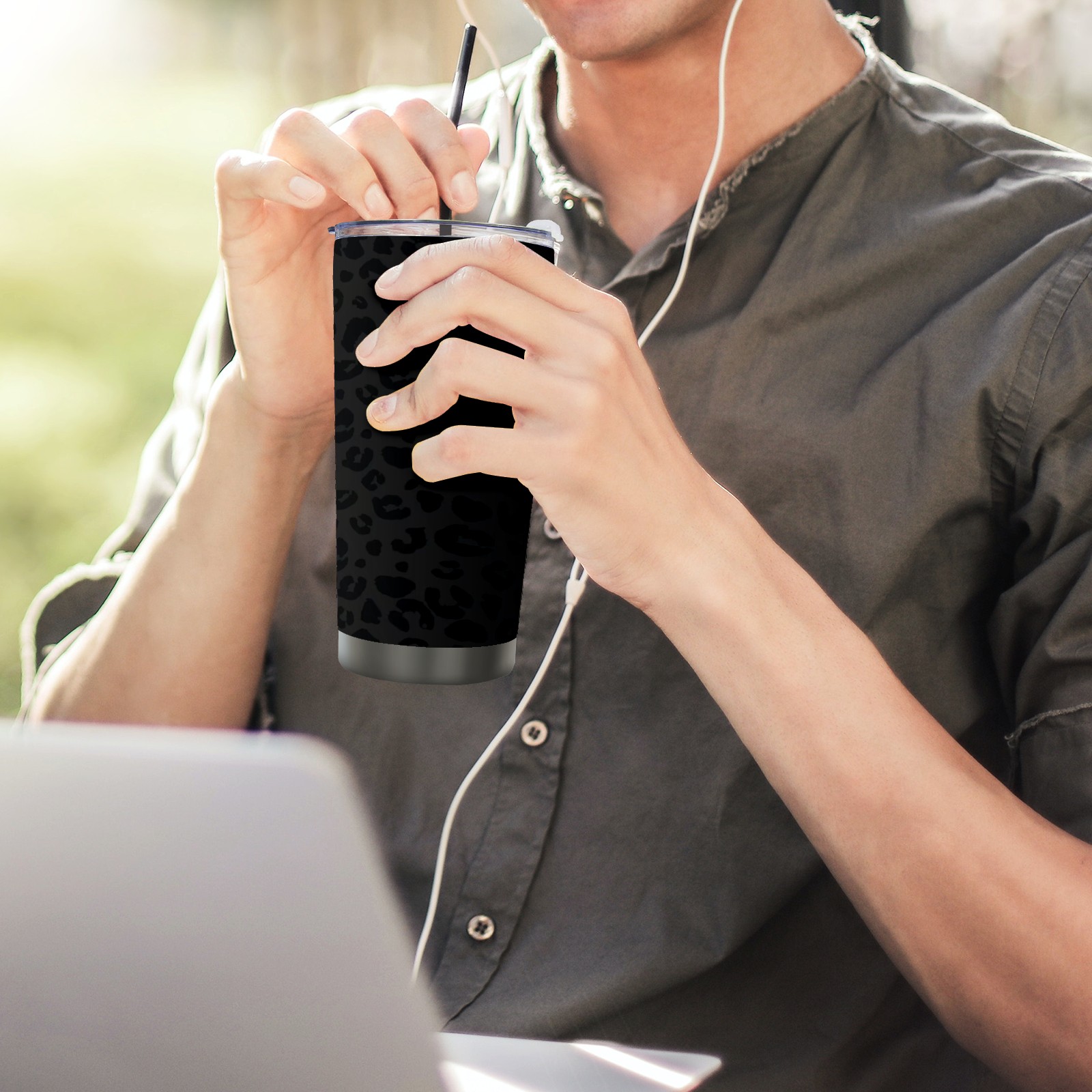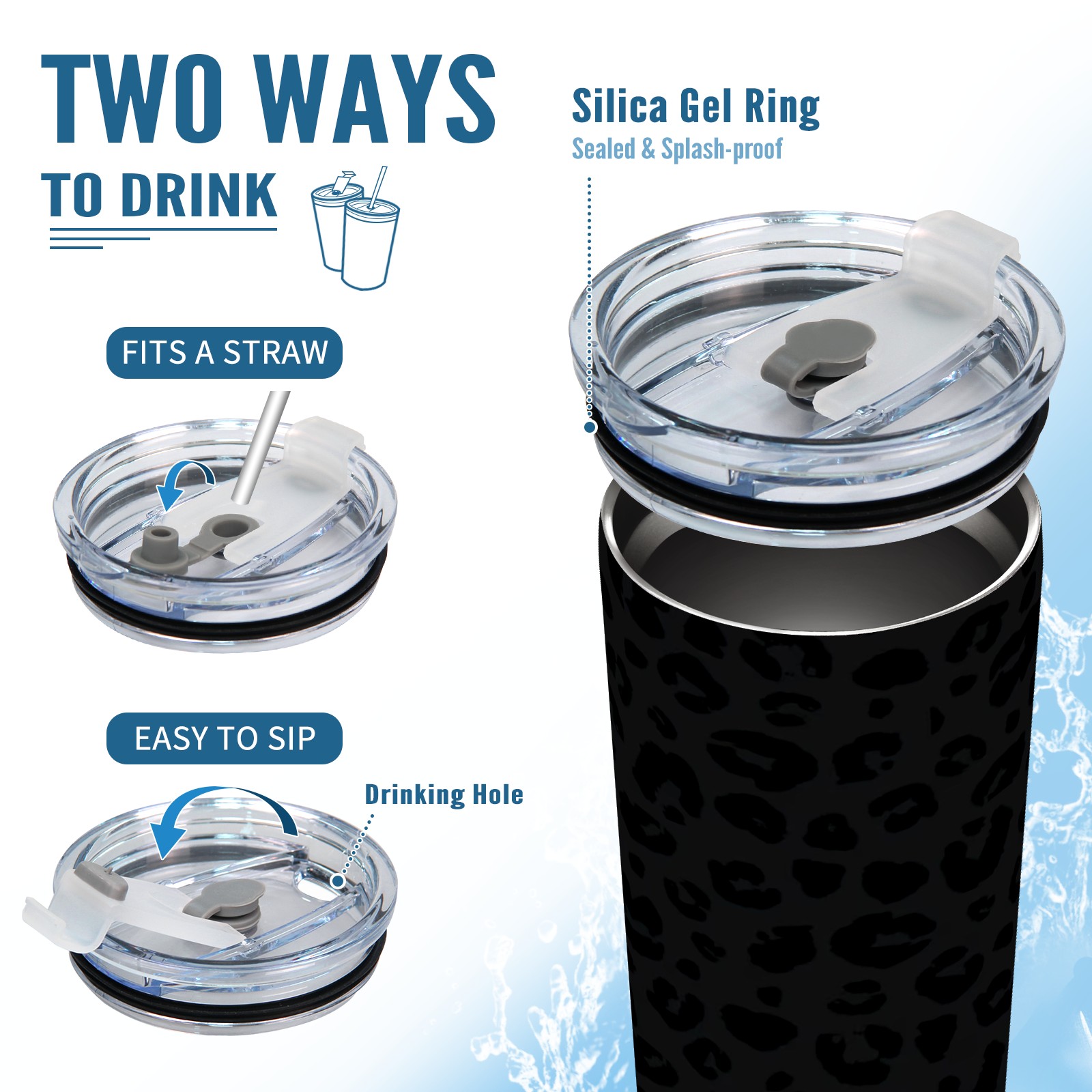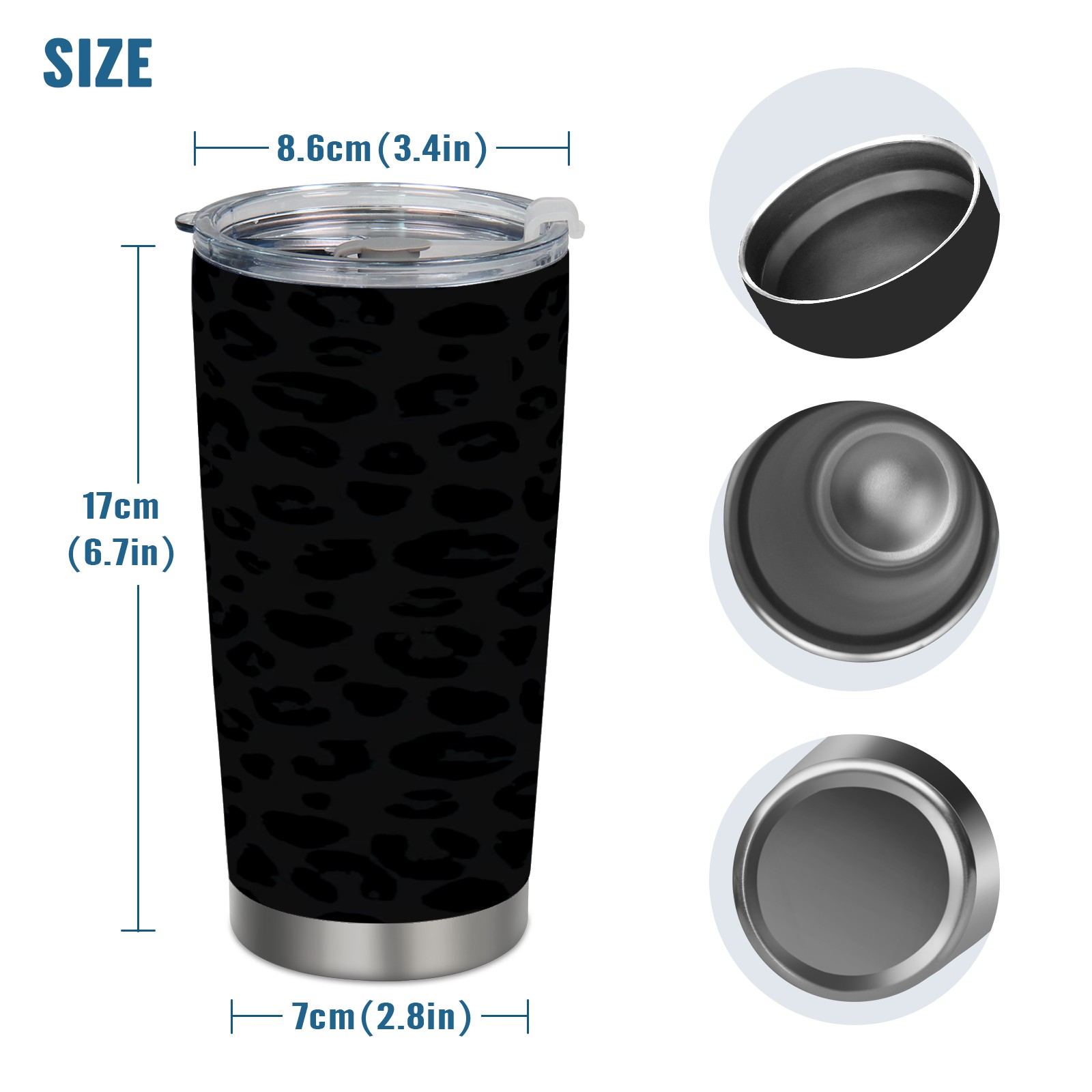 20 oz Tumbler Black Leopard Print Stainless Steel Insulated Tumbler with Lid Double Wall Vacuum Insulated Travel Mug Cup for Coffee Ice Hot Drinks
