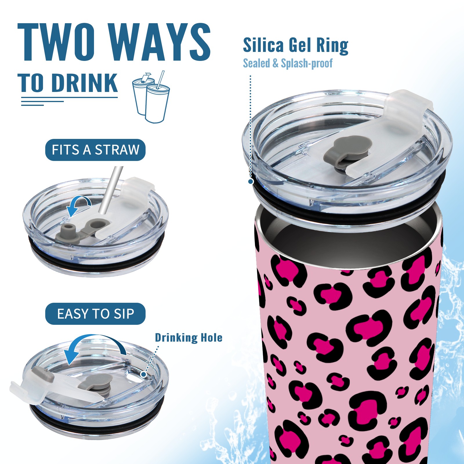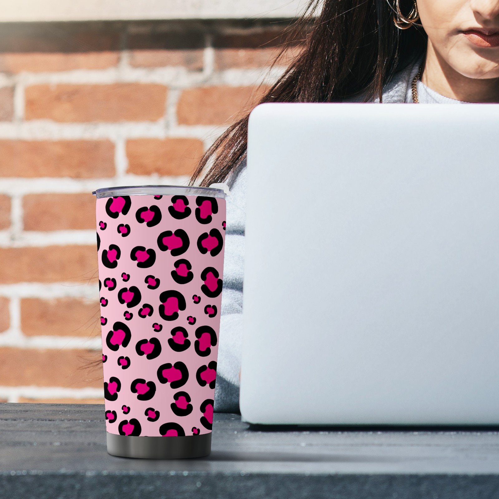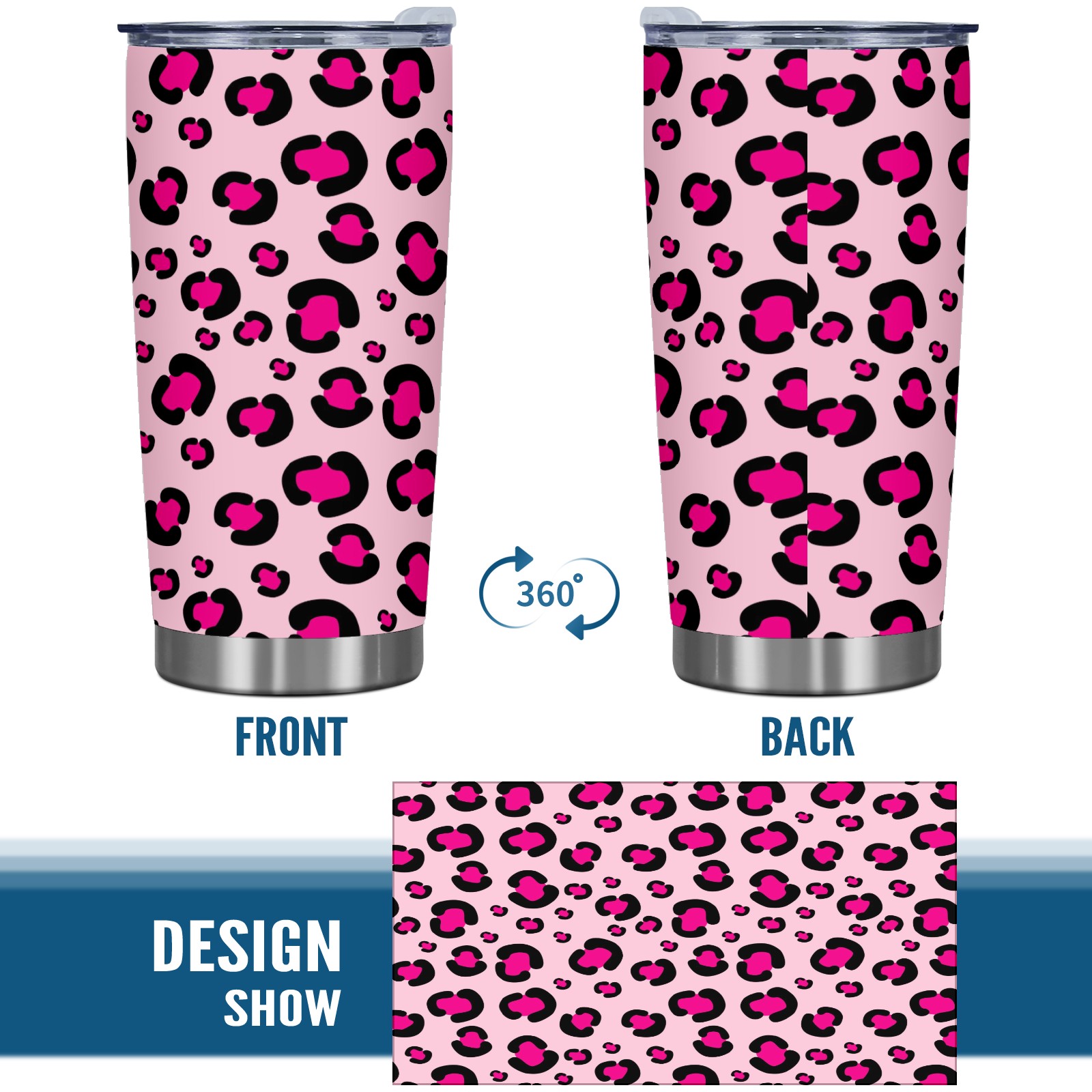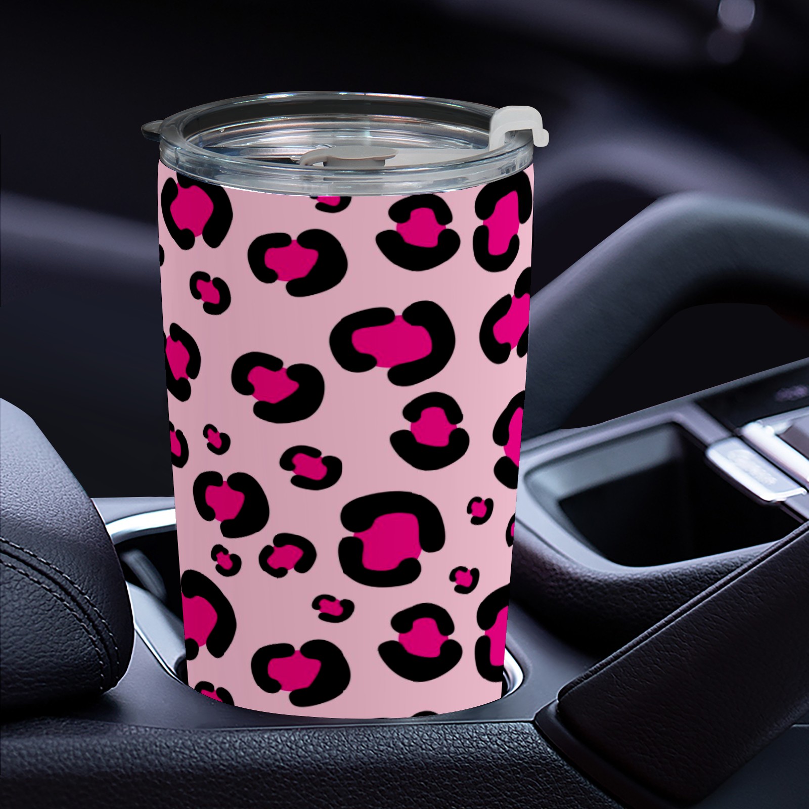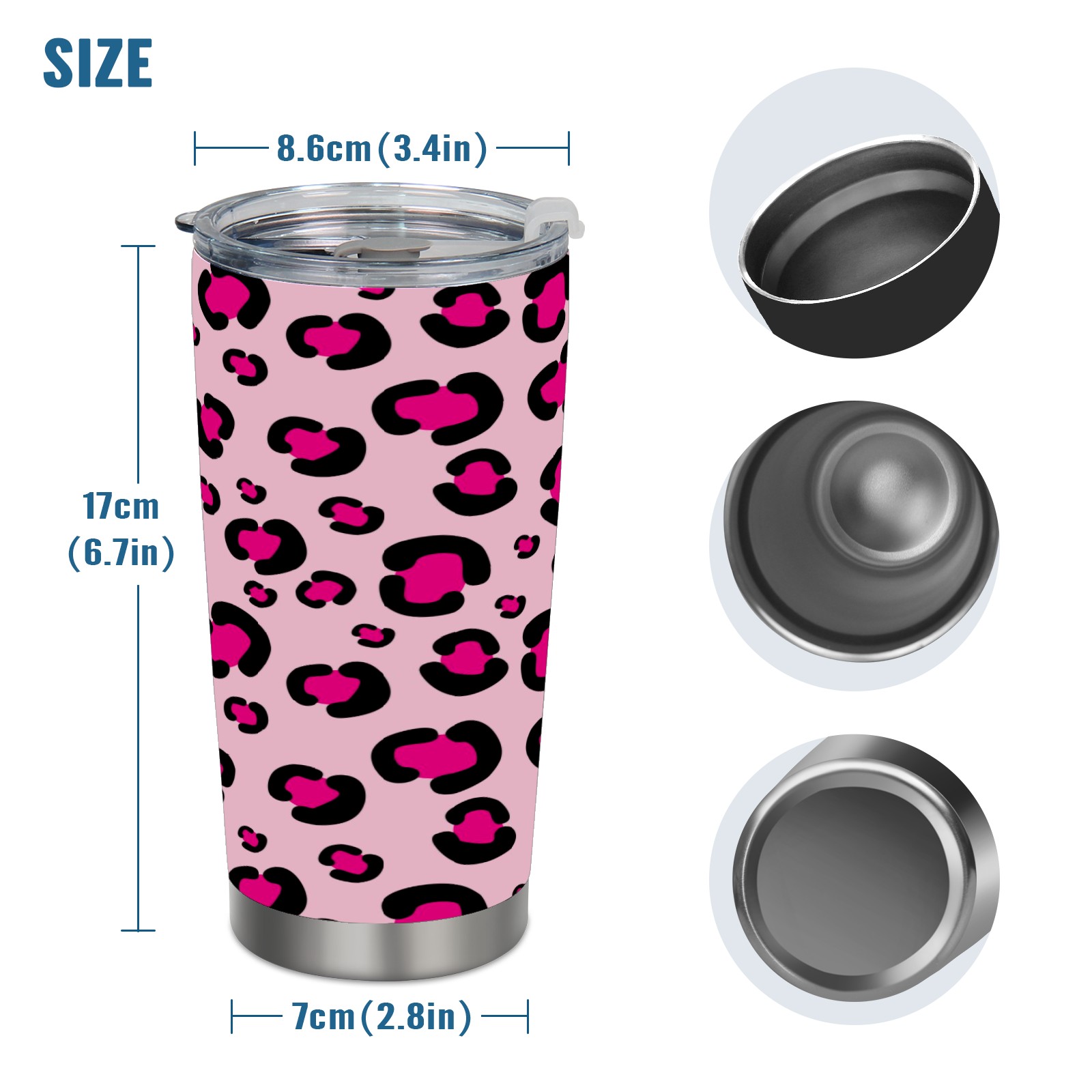 20 oz Tumbler Girly Pink Rosy Leopard Print Pattern Stainless Steel Insulated Tumbler with Lid Double Wall Vacuum Insulated Travel Mug Cup for Coffee Ice Hot Drinks