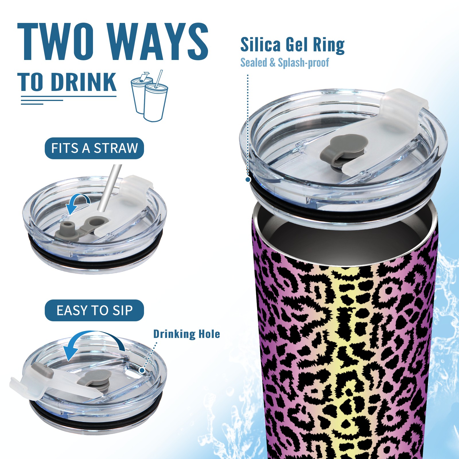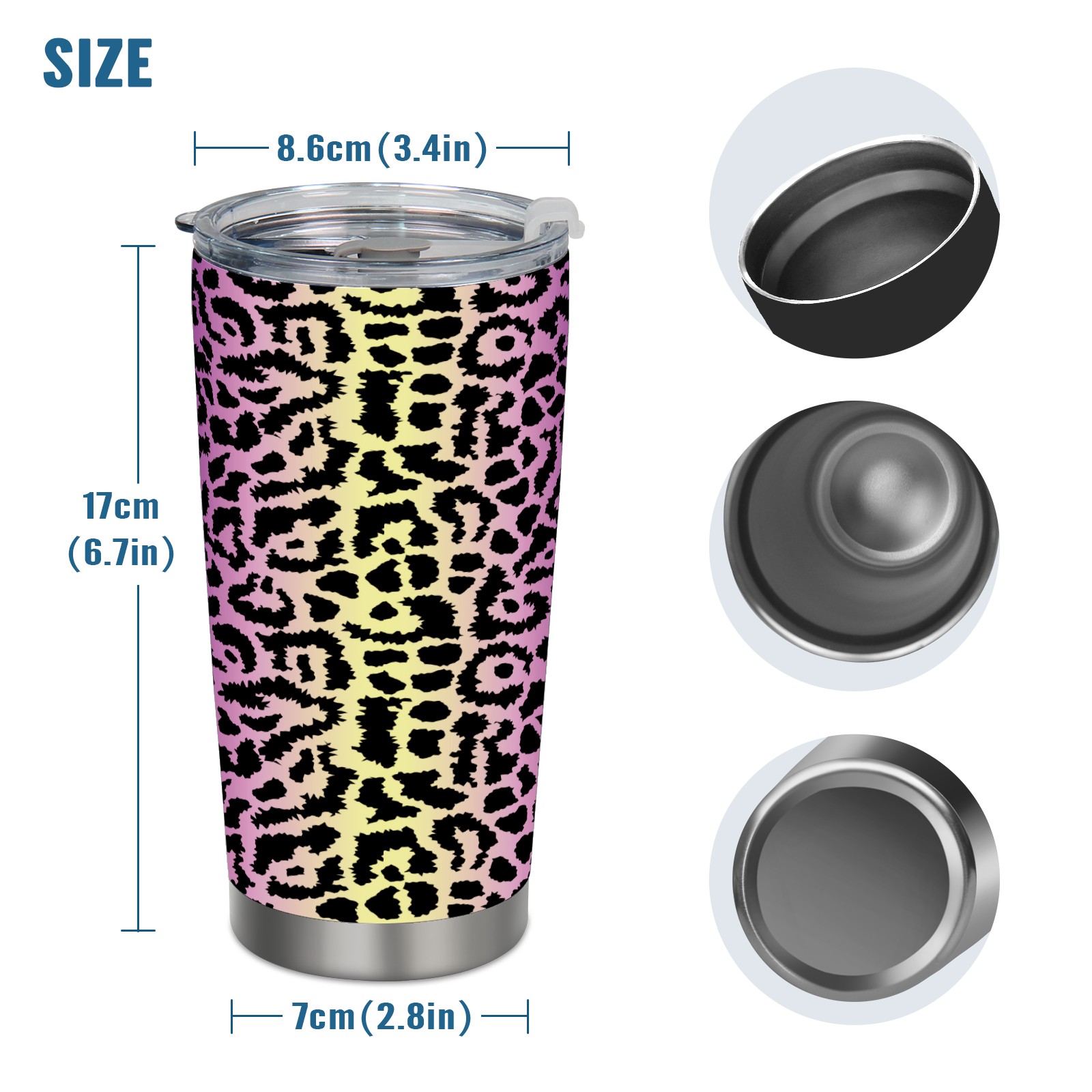 20 oz Tumbler Culorful Sexy Leopard Print Stainless Steel Insulated Tumbler with Lid Double Wall Vacuum Insulated Travel Mug Cup for Coffee Ice Hot Drinks