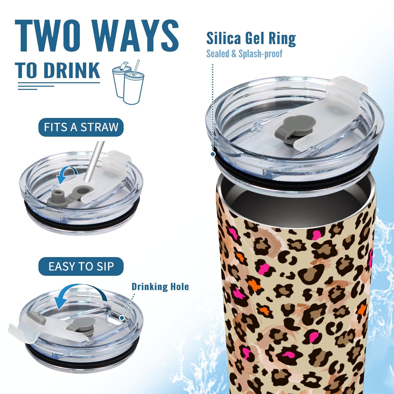 20 oz Tumbler Culorful Leopard Print Stainless Steel Insulated Tumbler with Lid Double Wall Vacuum Insulated Travel Mug Cup for Coffee Ice Hot Drinks