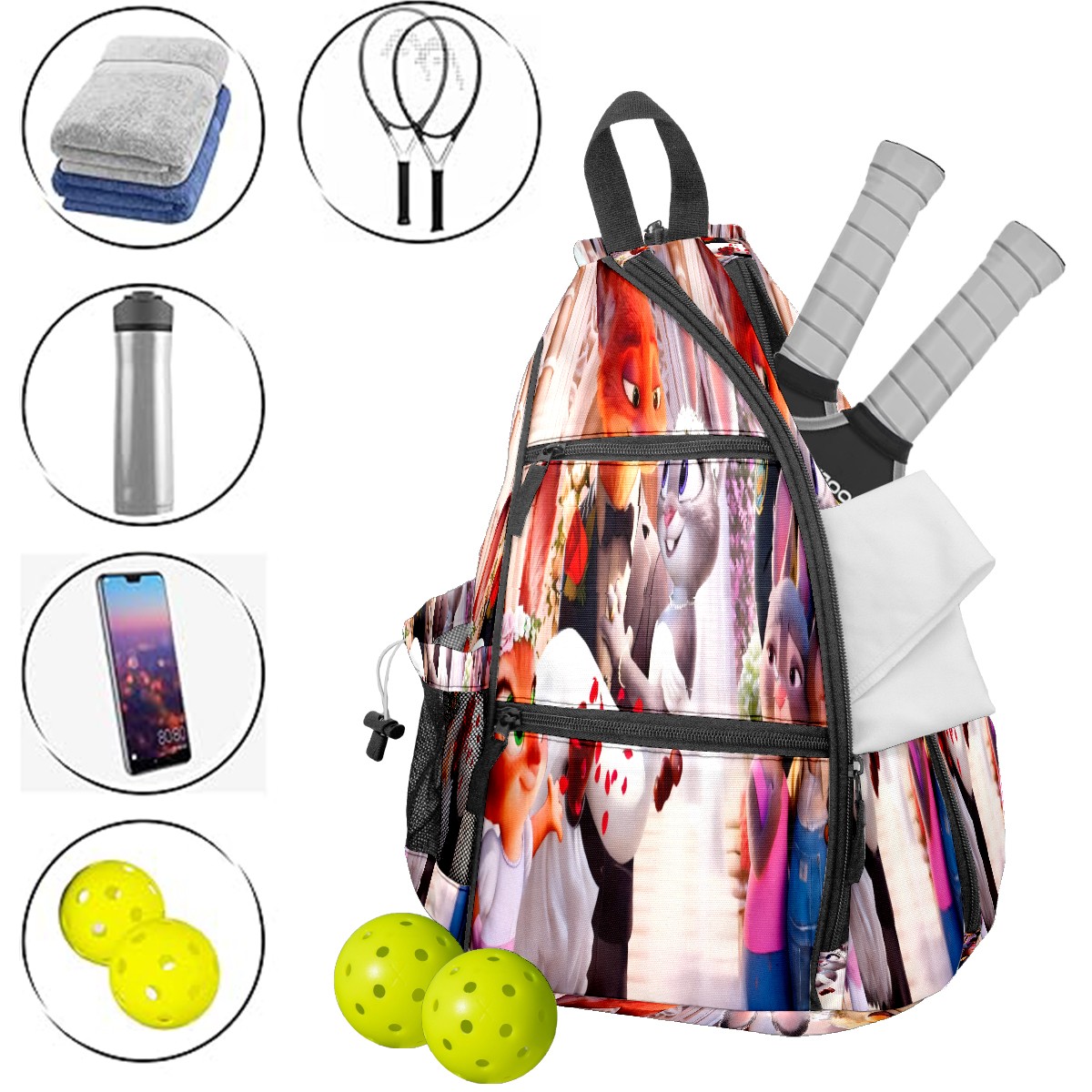 Multifunctional Pickleball Bag,Large Capacity Sports Pickleball Racket Bag, Water Bottle Holder and Fence Hook,Suitable for Both Men Women -朱迪尼克礼服 电脑版03