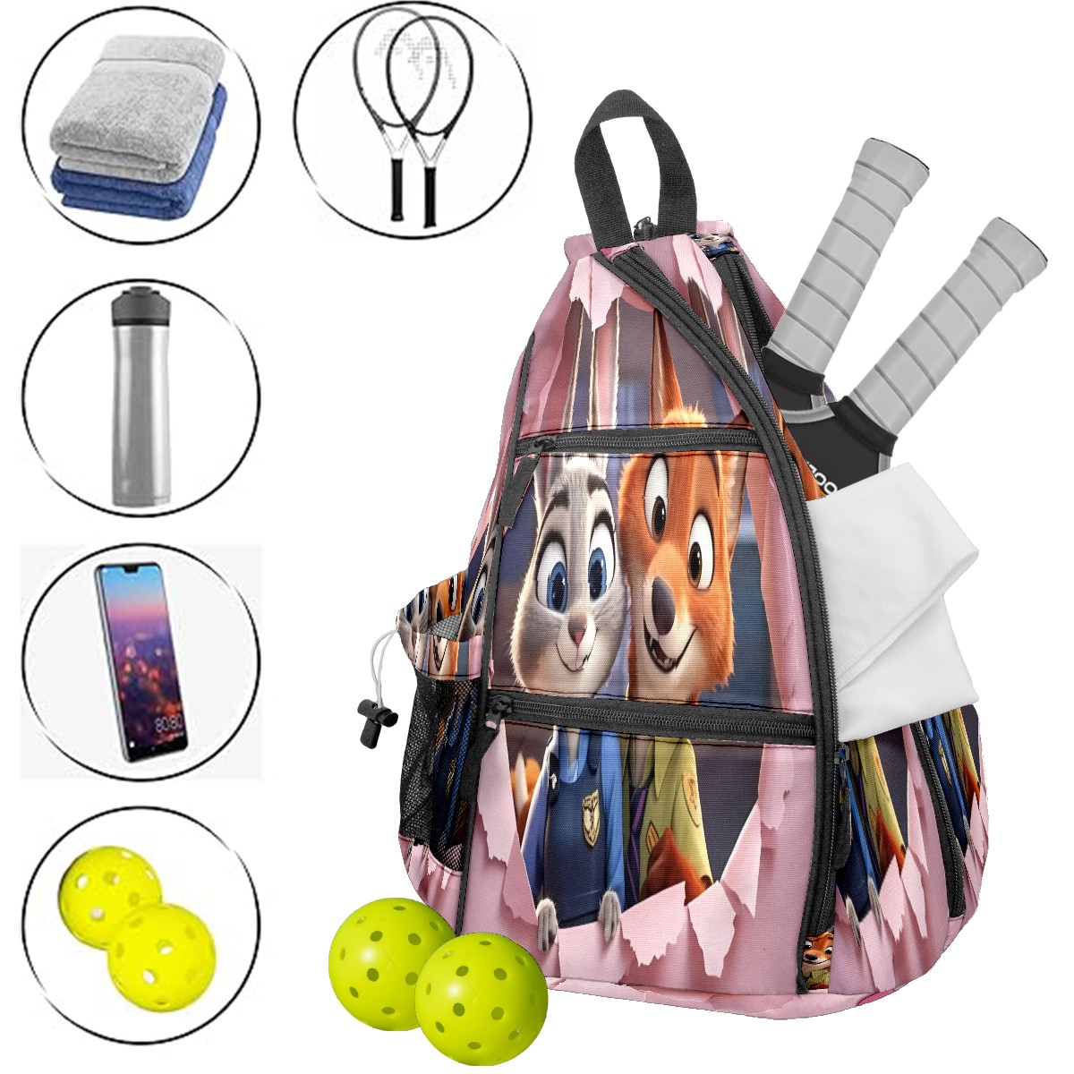 Multifunctional Pickleball Bag,Large Capacity Sports Pickleball Racket Bag, Water Bottle Holder and Fence Hook,Suitable for Both Men Women -疯狂动物城 新增 电脑版 02