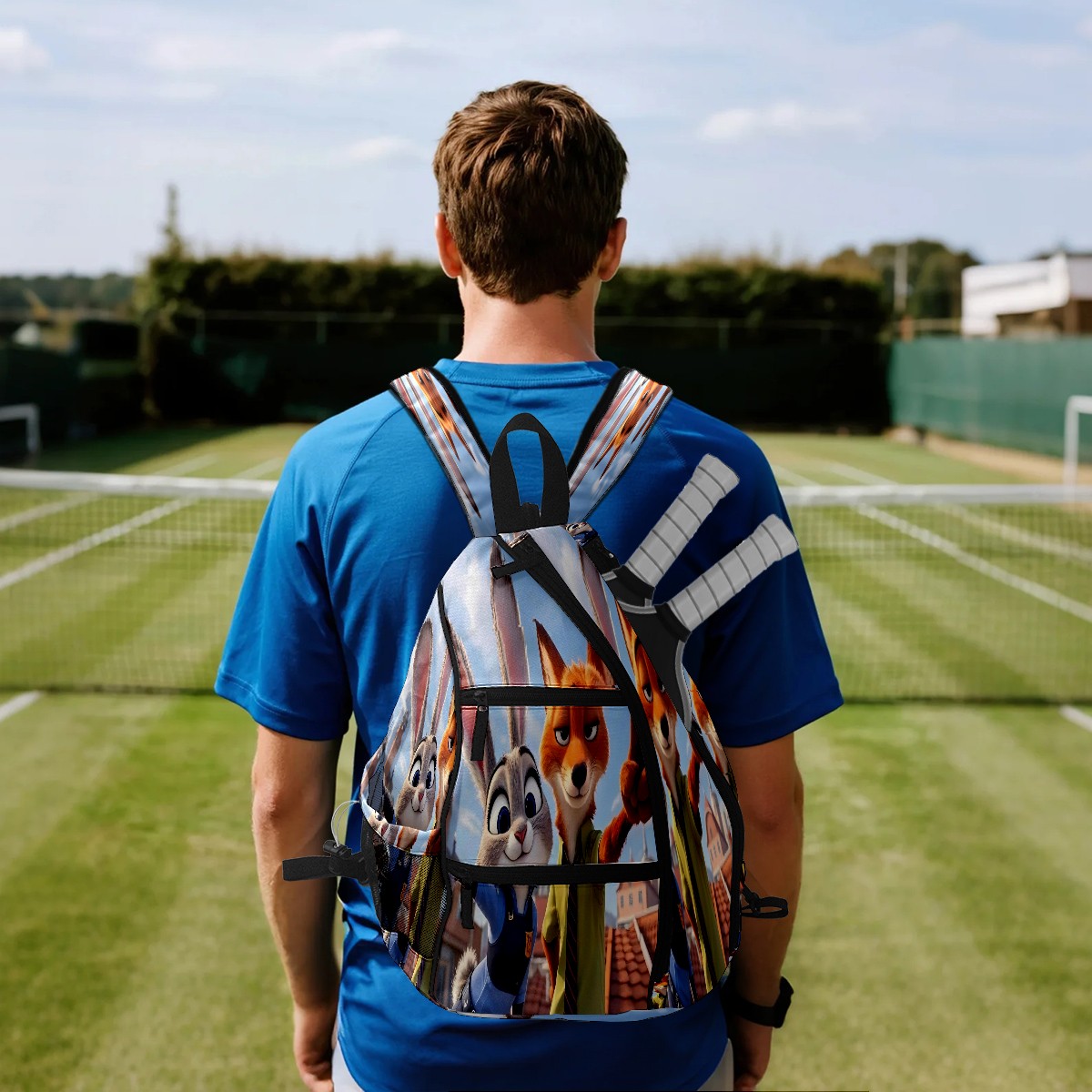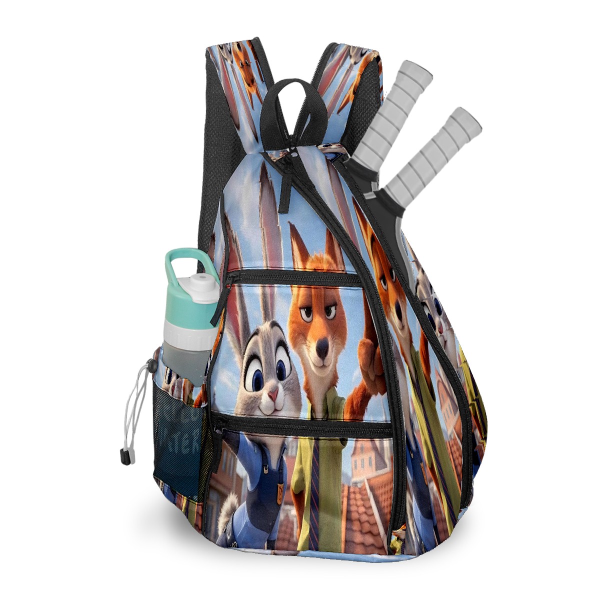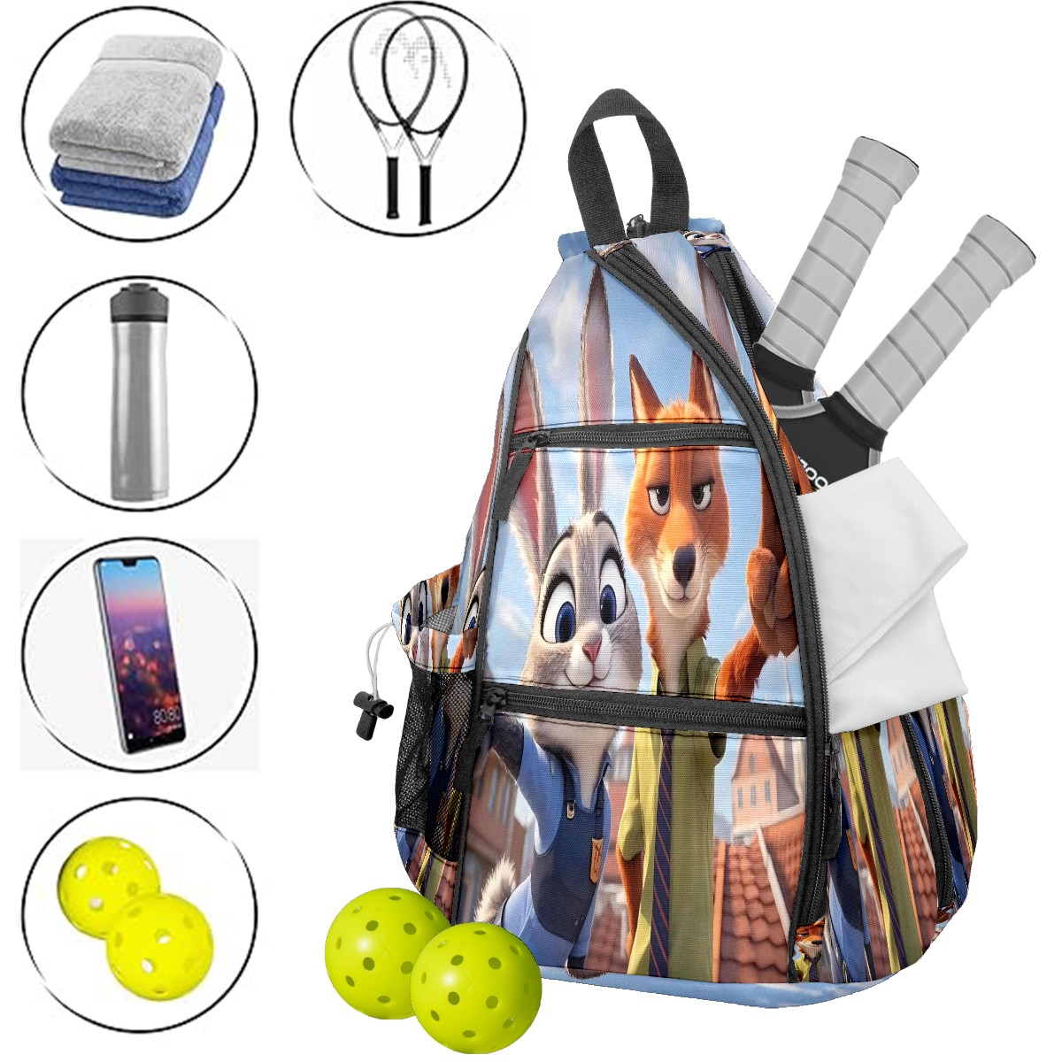 Multifunctional Pickleball Bag,Large Capacity Sports Pickleball Racket Bag, Water Bottle Holder and Fence Hook,Suitable for Both Men Women -疯狂动物城 IPad版 02