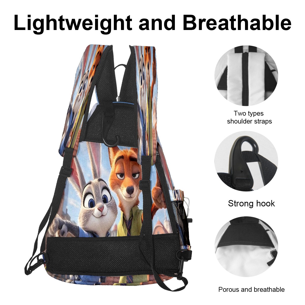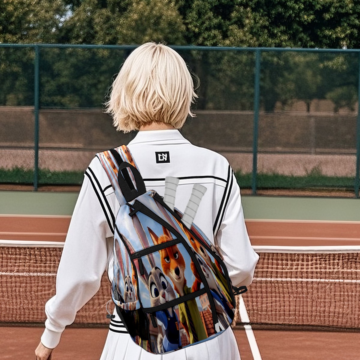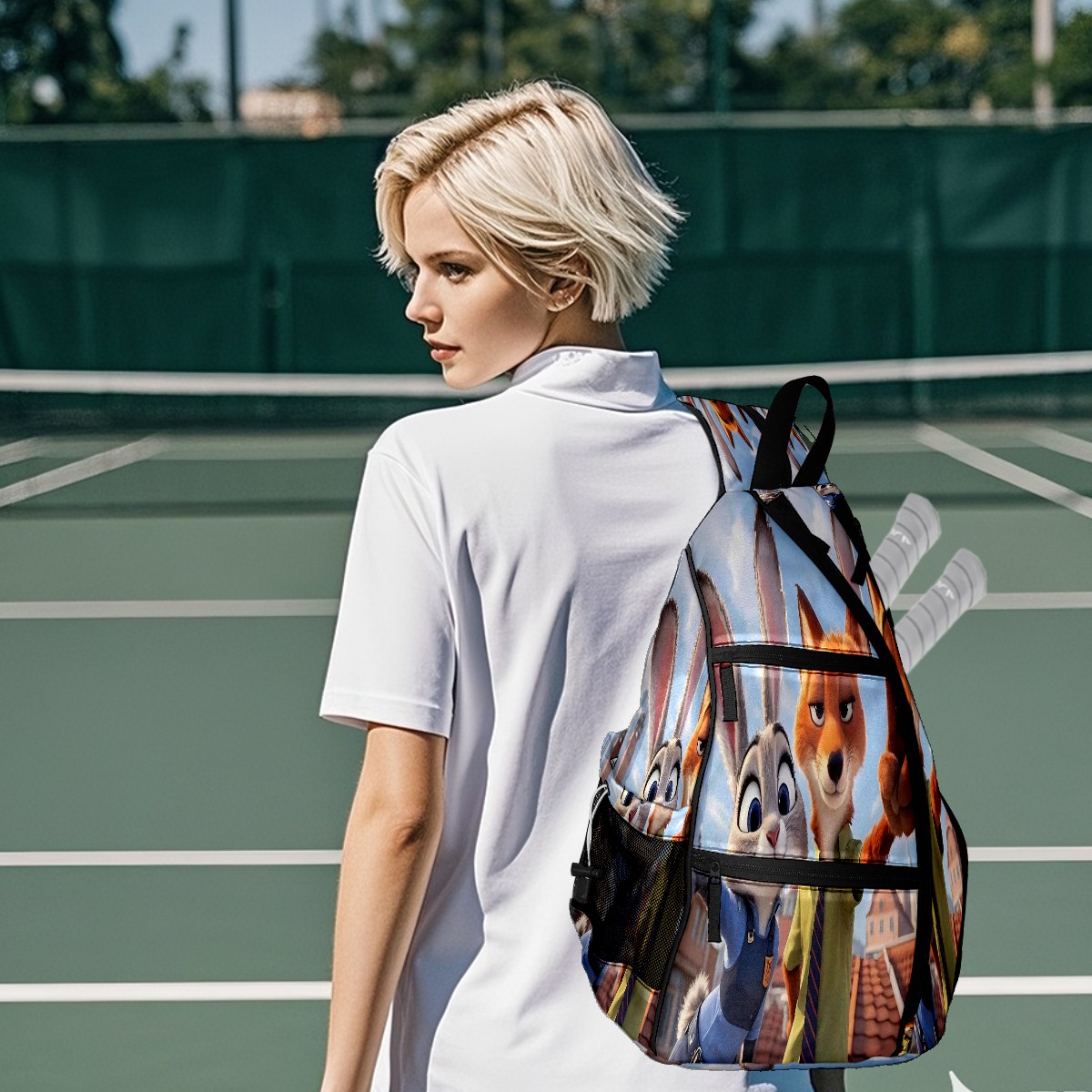 Multifunctional Pickleball Bag,Large Capacity Sports Pickleball Racket Bag, Water Bottle Holder and Fence Hook,Suitable for Both Men Women -疯狂动物城 IPad版 02