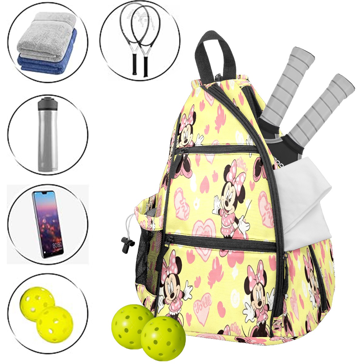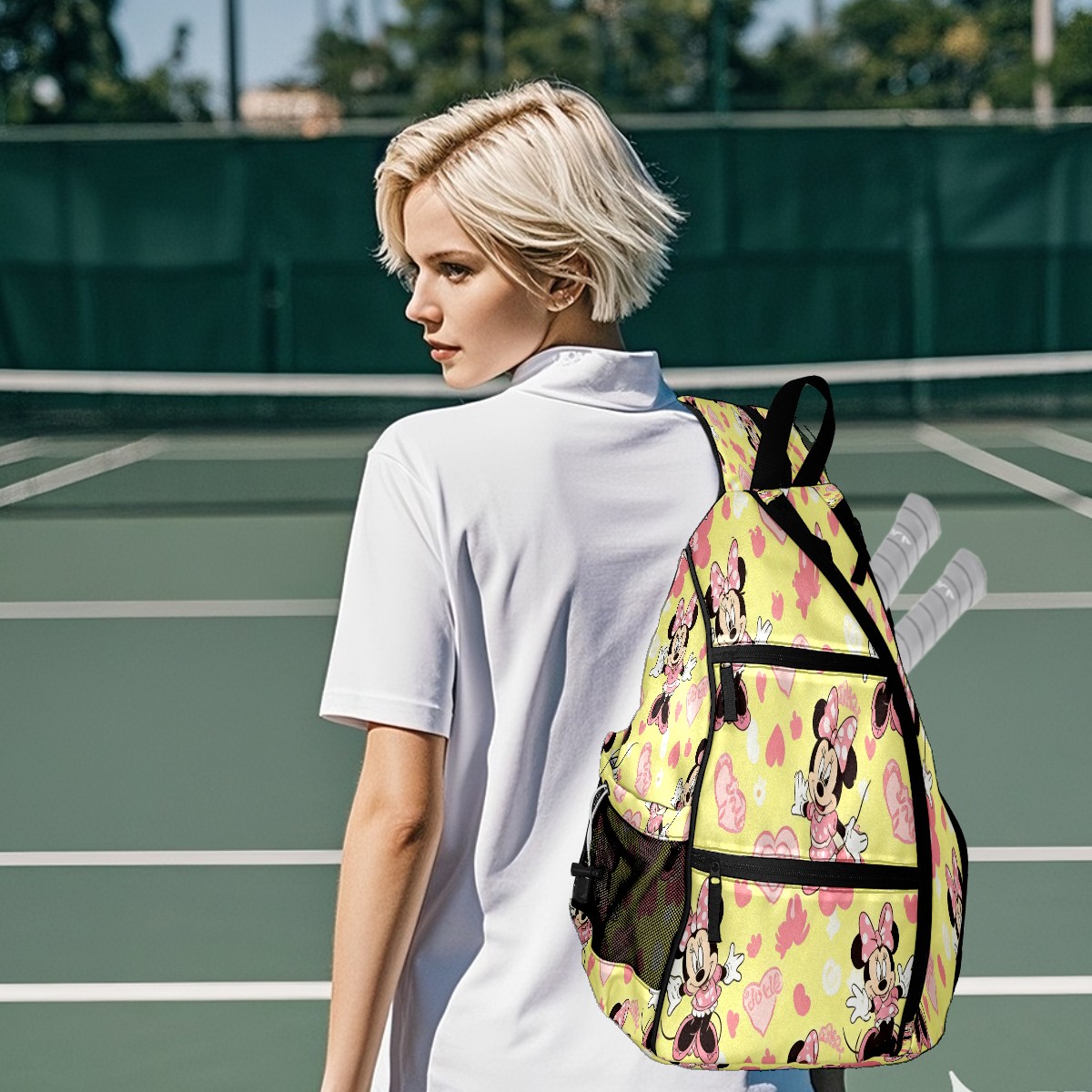 Multifunctional Pickleball Bag,Large Capacity Sports Pickleball Racket Bag, Water Bottle Holder and Fence Hook,Suitable for Both Men Women -Romantic Ballerina Pink