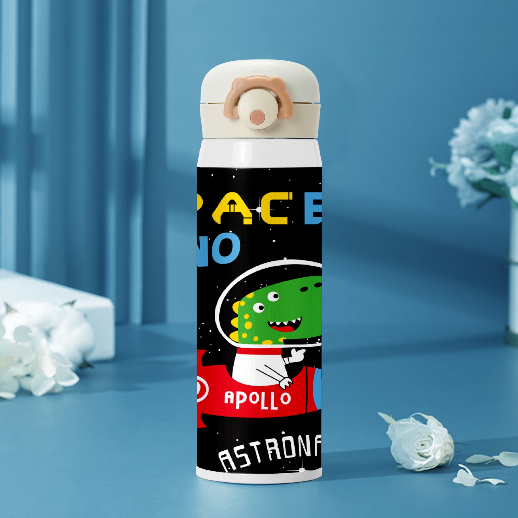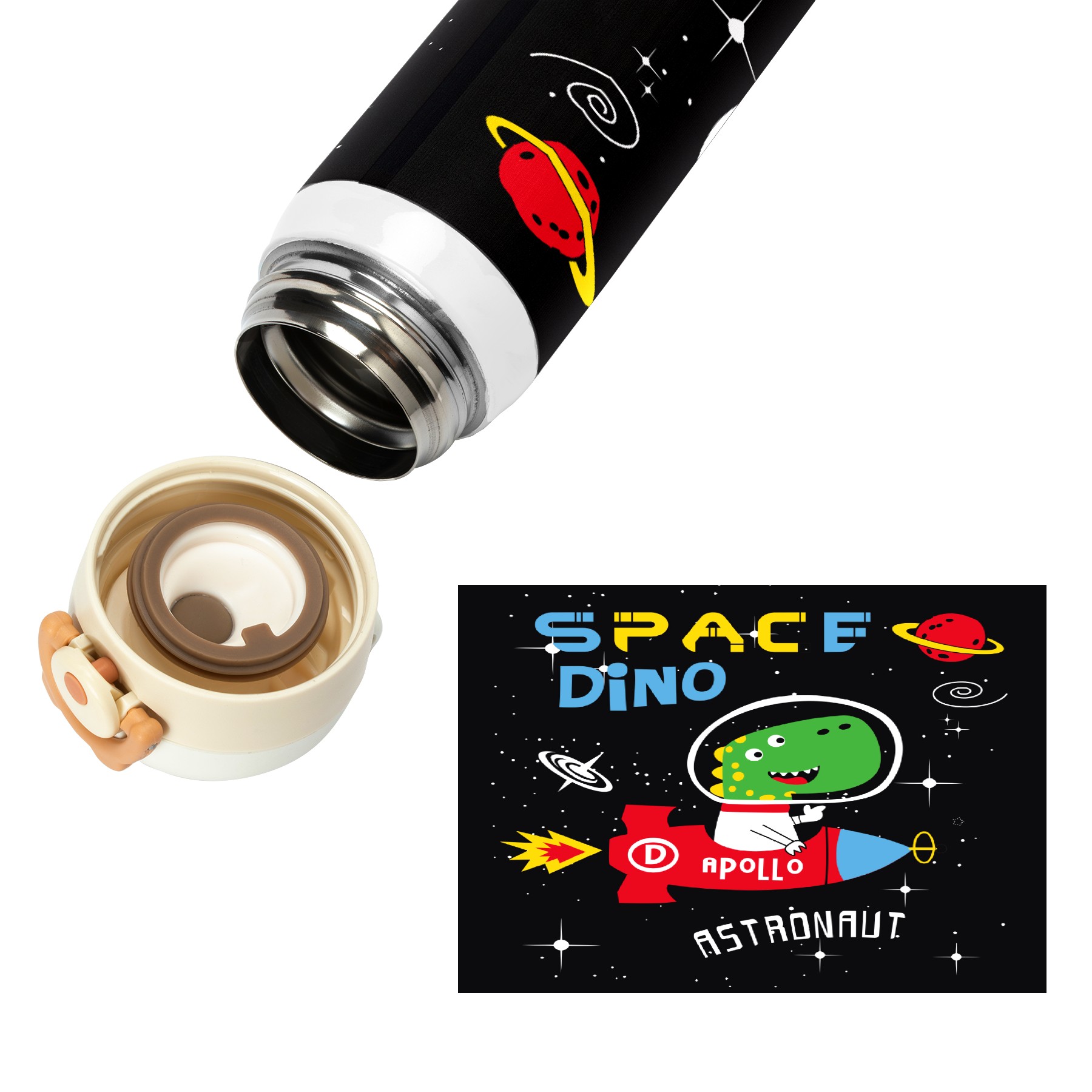 Cartoon Dinosaur Astronaut Rocket Space