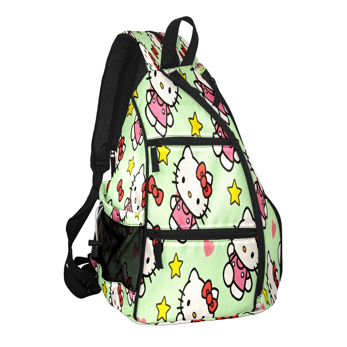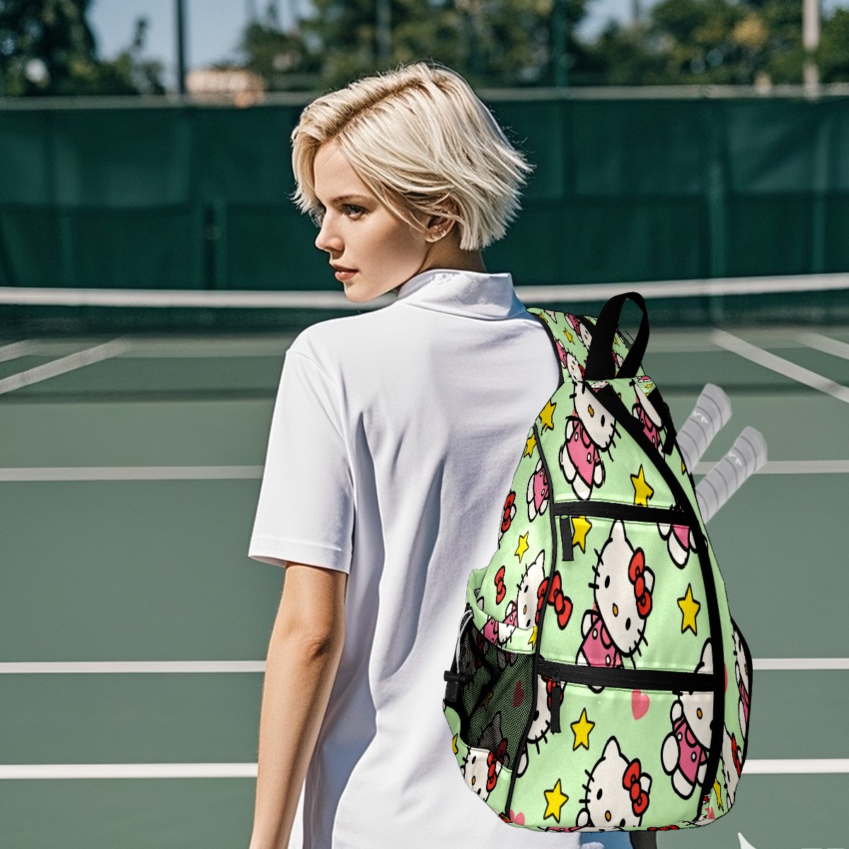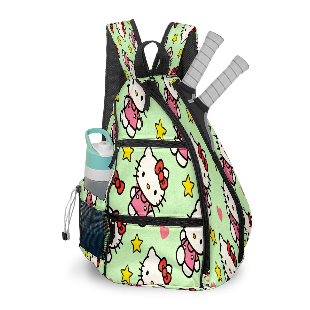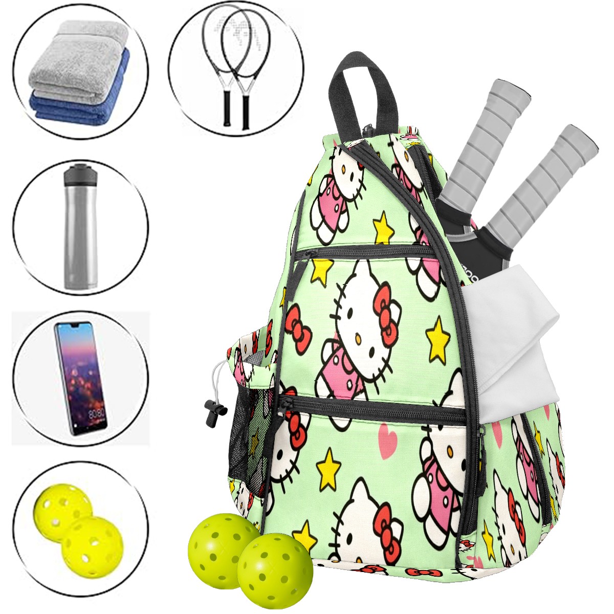 Multifunctional Pickleball Bag,Large Capacity Sports Pickleball Racket Bag, Water Bottle Holder and Fence Hook,Suitable for Both Men Women -Sweet Cat Green