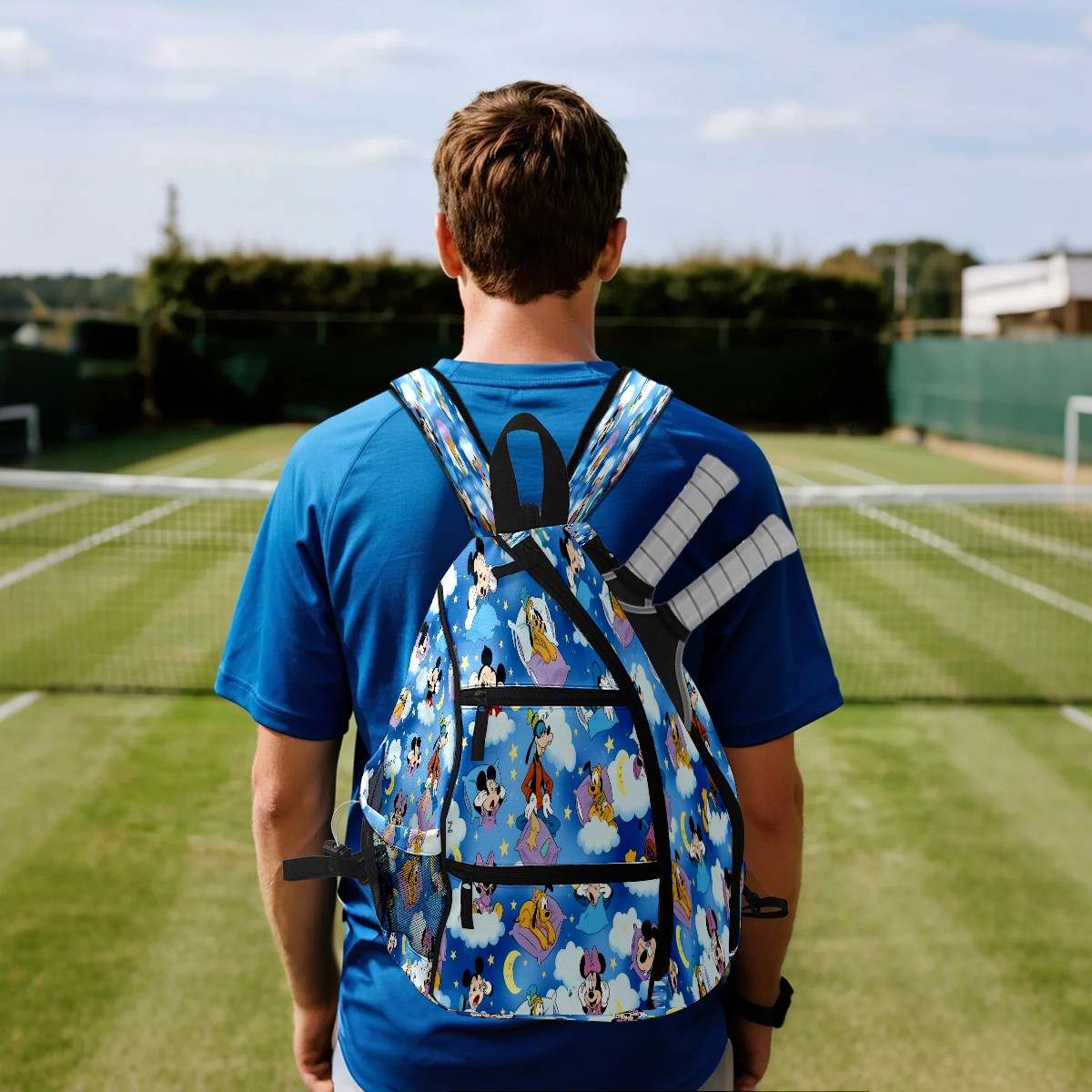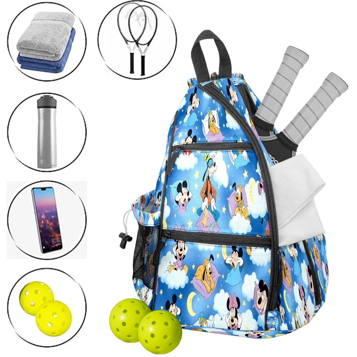 Multifunctional Pickleball Bag,Large Capacity Sports Pickleball Racket Bag, Water Bottle Holder and Fence Hook,Suitable for Both Men Women -Vibrant Character Blue