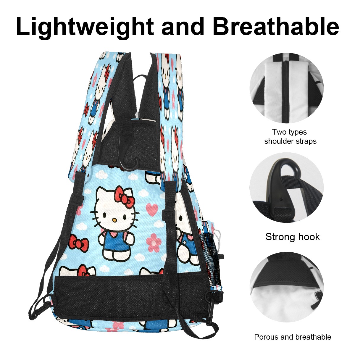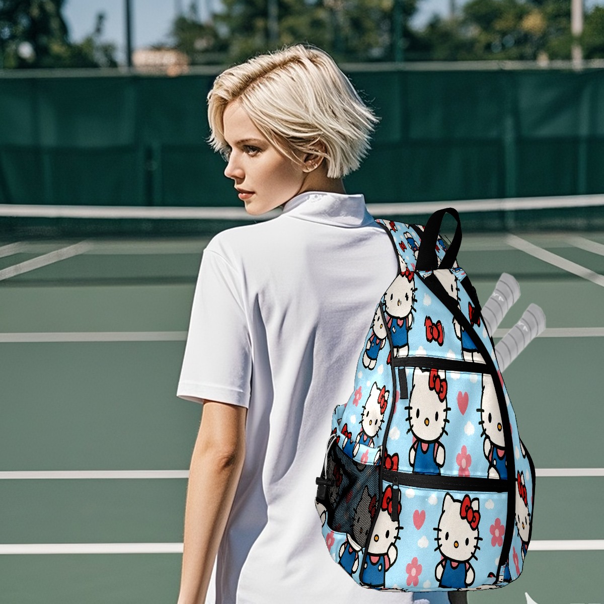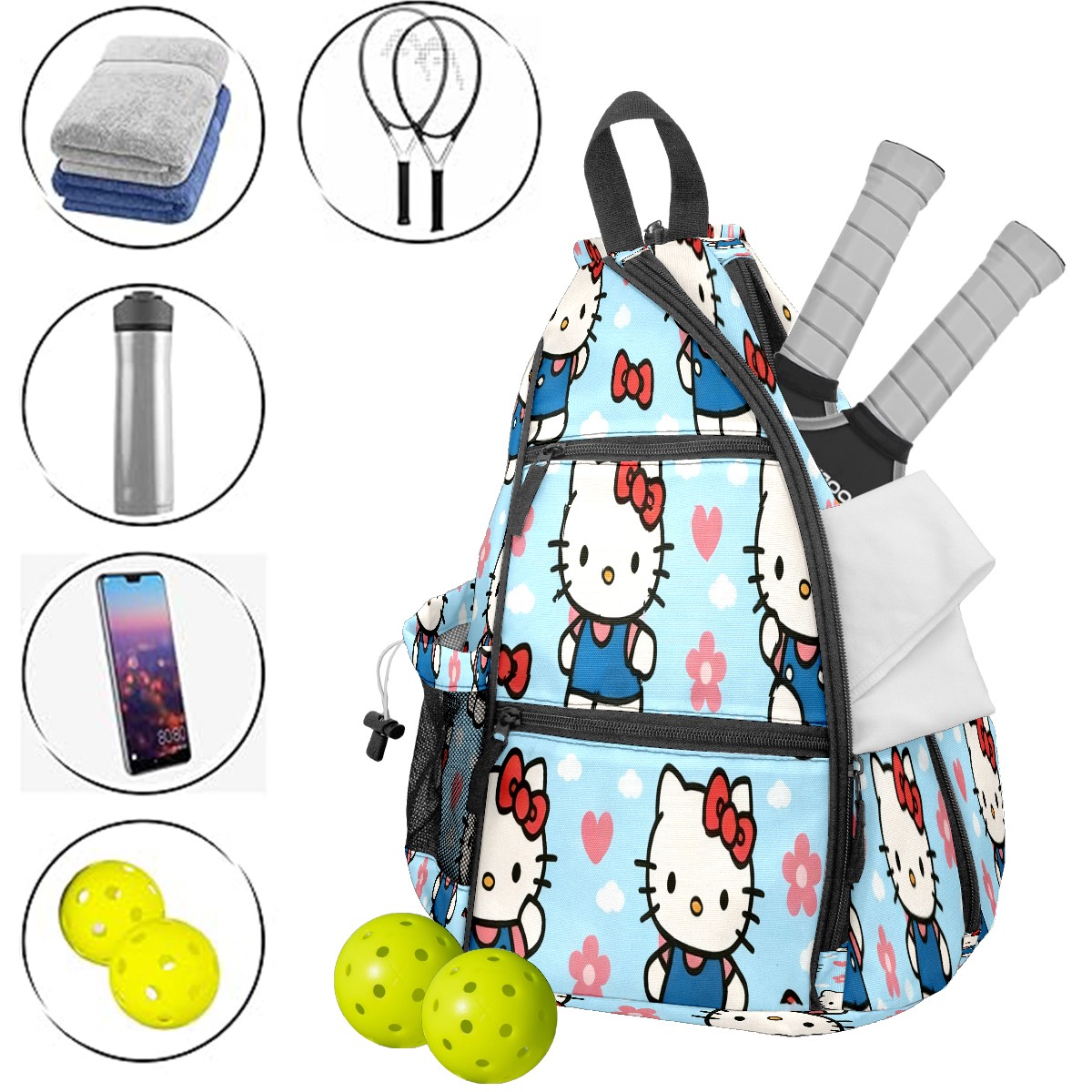 Multifunctional Pickleball Bag,Large Capacity Sports Pickleball Racket Bag, Water Bottle Holder and Fence Hook,Suitable for Both Men Women -Warm Hello Kitty Pink