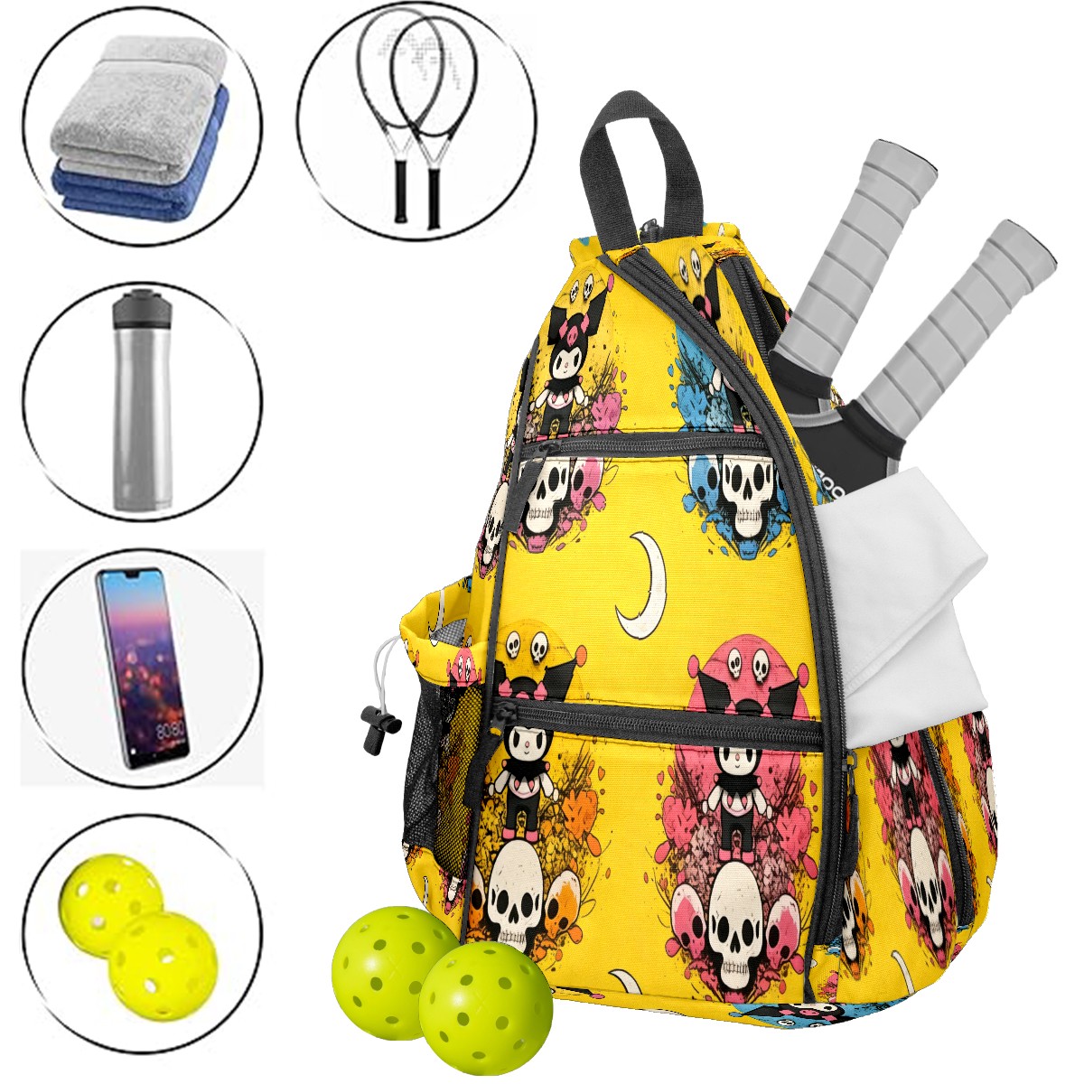 Multifunctional Pickleball Bag,Large Capacity Sports Pickleball Racket Bag, Water Bottle Holder and Fence Hook,Suitable for Both Men Women -Kuromi Yellow