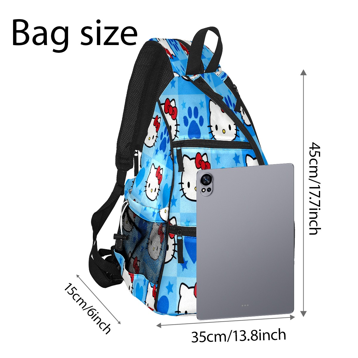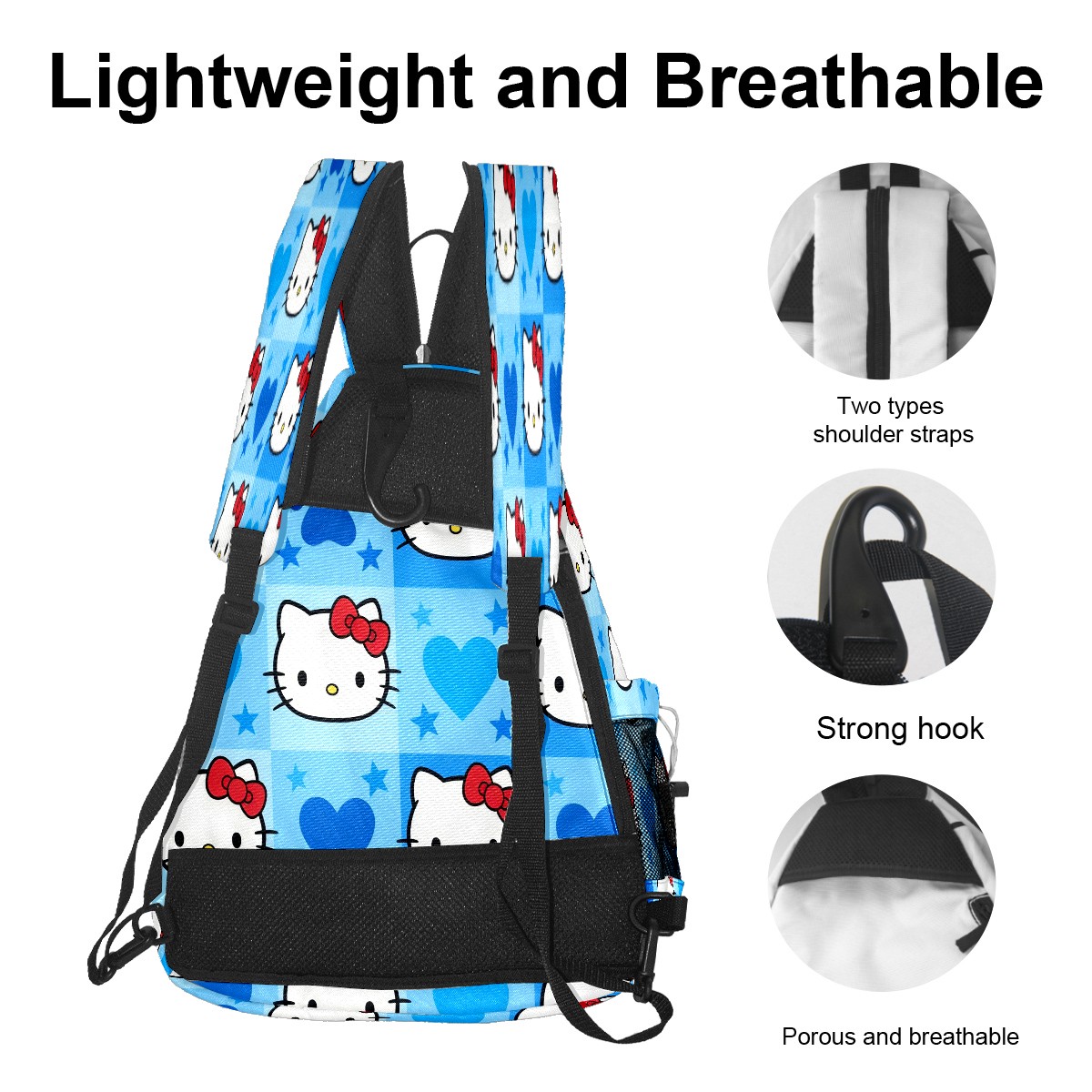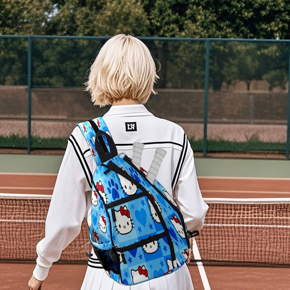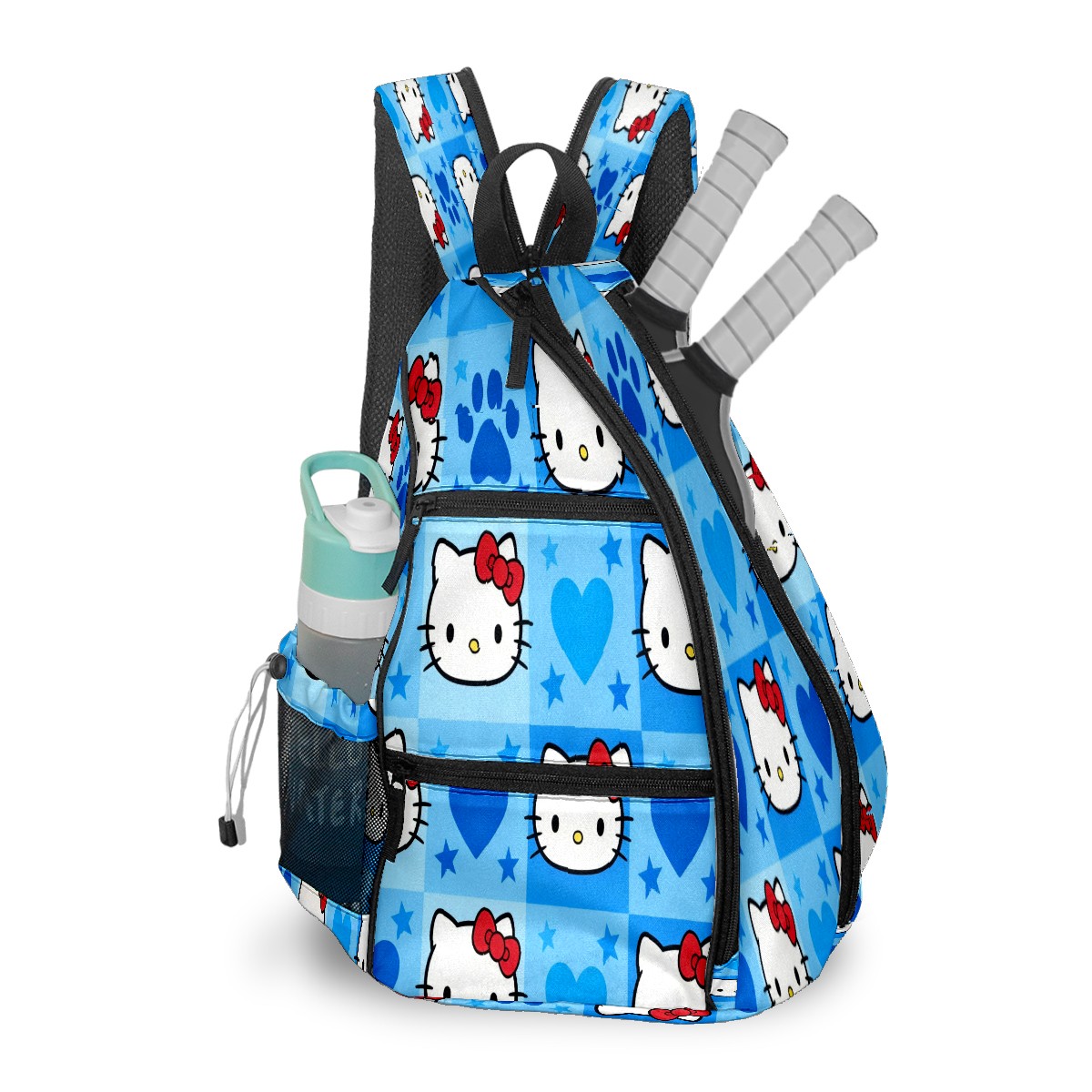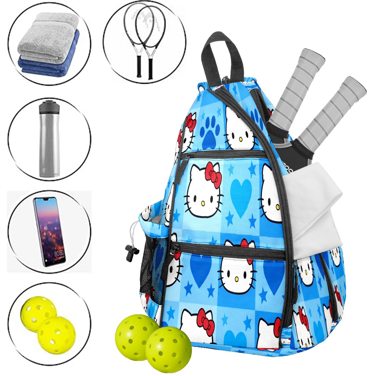 Multifunctional Pickleball Bag,Large Capacity Sports Pickleball Racket Bag, Water Bottle Holder and Fence Hook,Suitable for Both Men Women -Dynamic Hello Kitty Blue