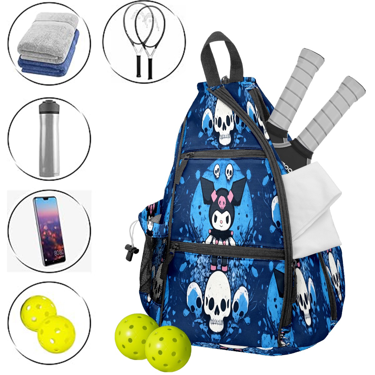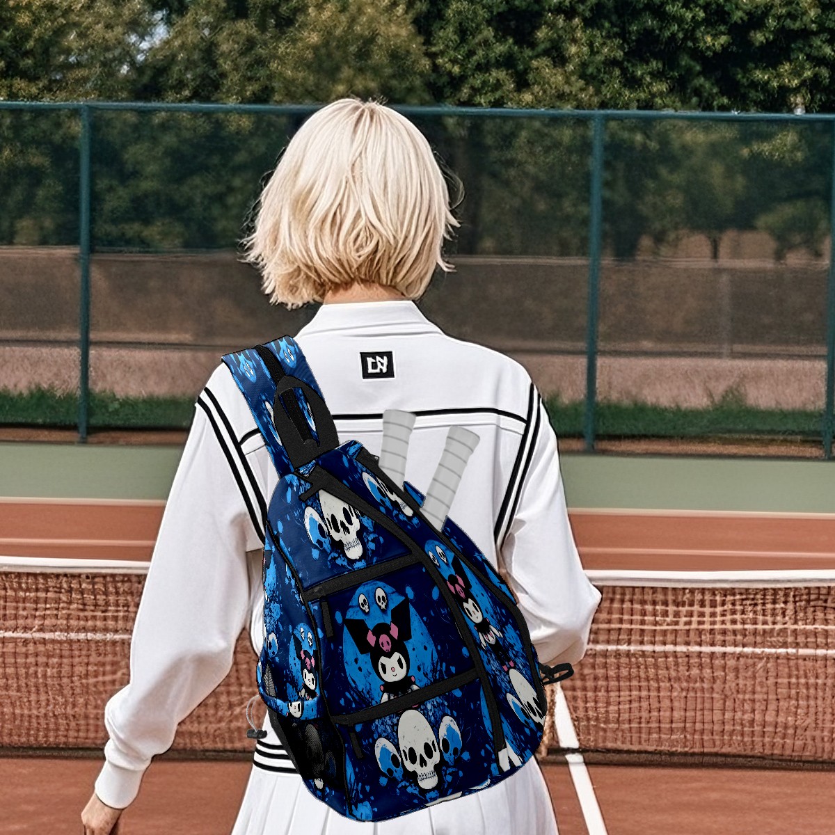Multifunctional Pickleball Bag,Large Capacity Sports Pickleball Racket Bag, Water Bottle Holder and Fence Hook,Suitable for Both Men Women -Cool Kuromi Blue