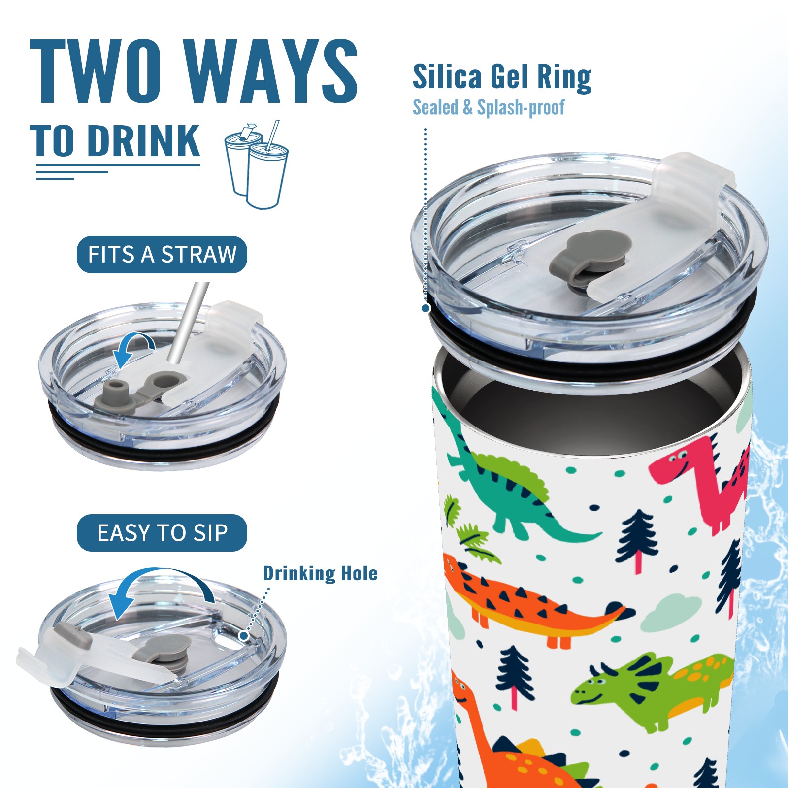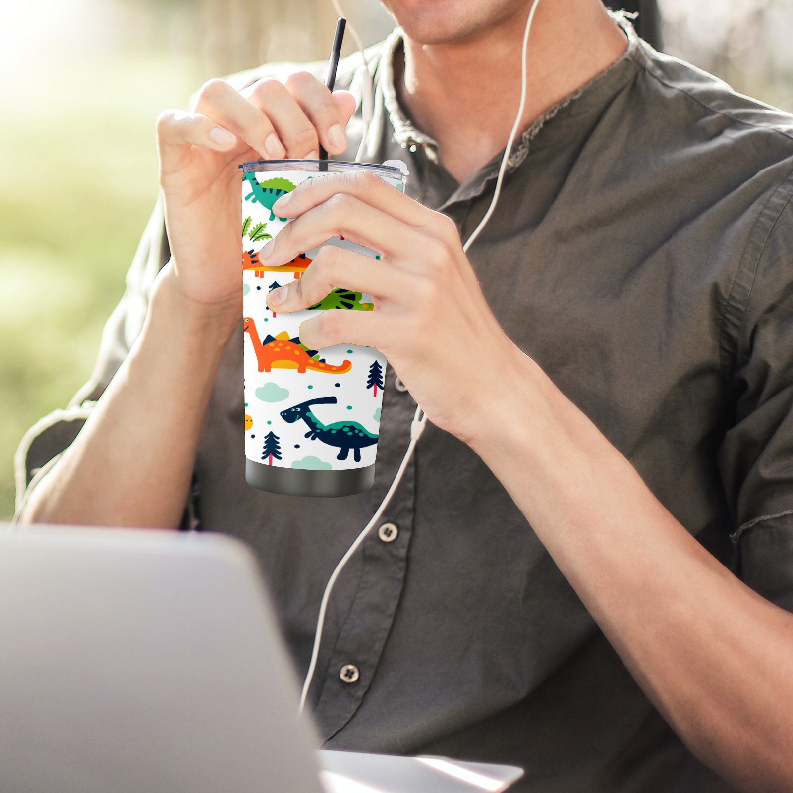 20 oz Tumbler Cartoon Dinosaurs Stegosaurus Stainless Steel Insulated Tumbler with Lid Double Wall Vacuum Insulated Travel Mug Cup for Coffee Ice Hot Drinks