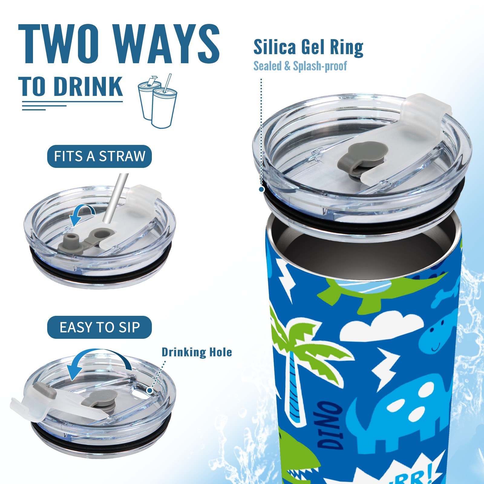 20 oz Tumbler Cartoon Animal Dinosaur Palm Stainless Steel Insulated Tumbler with Lid Double Wall Vacuum Insulated Travel Mug Cup for Coffee Ice Hot Drinks
