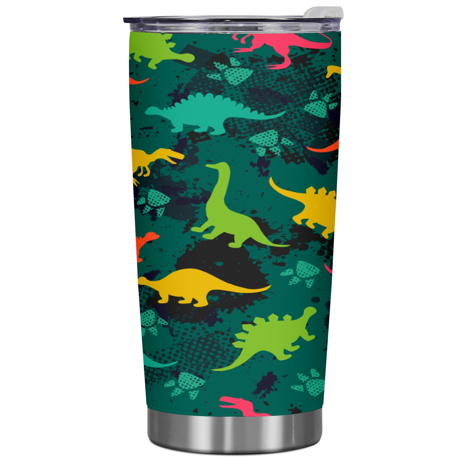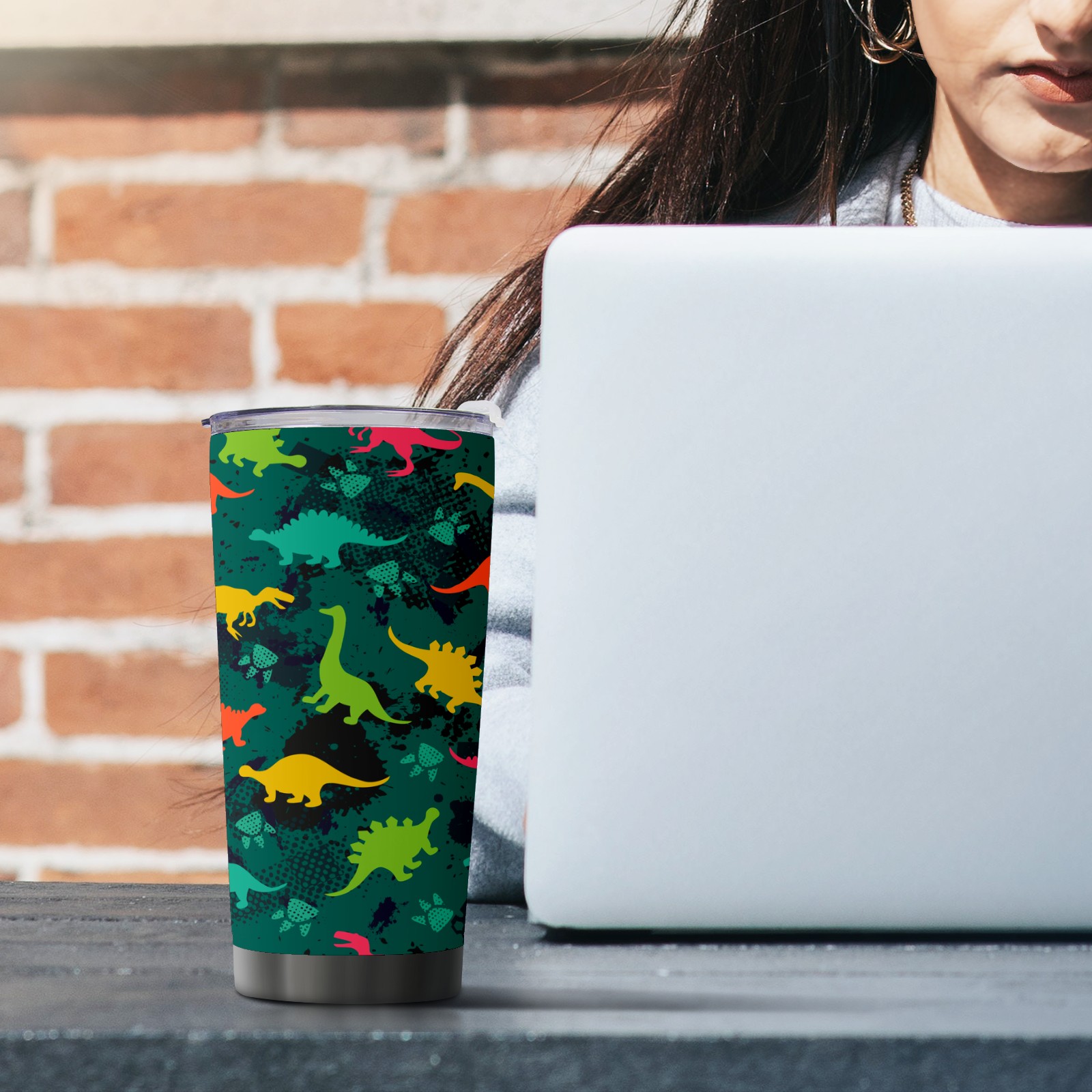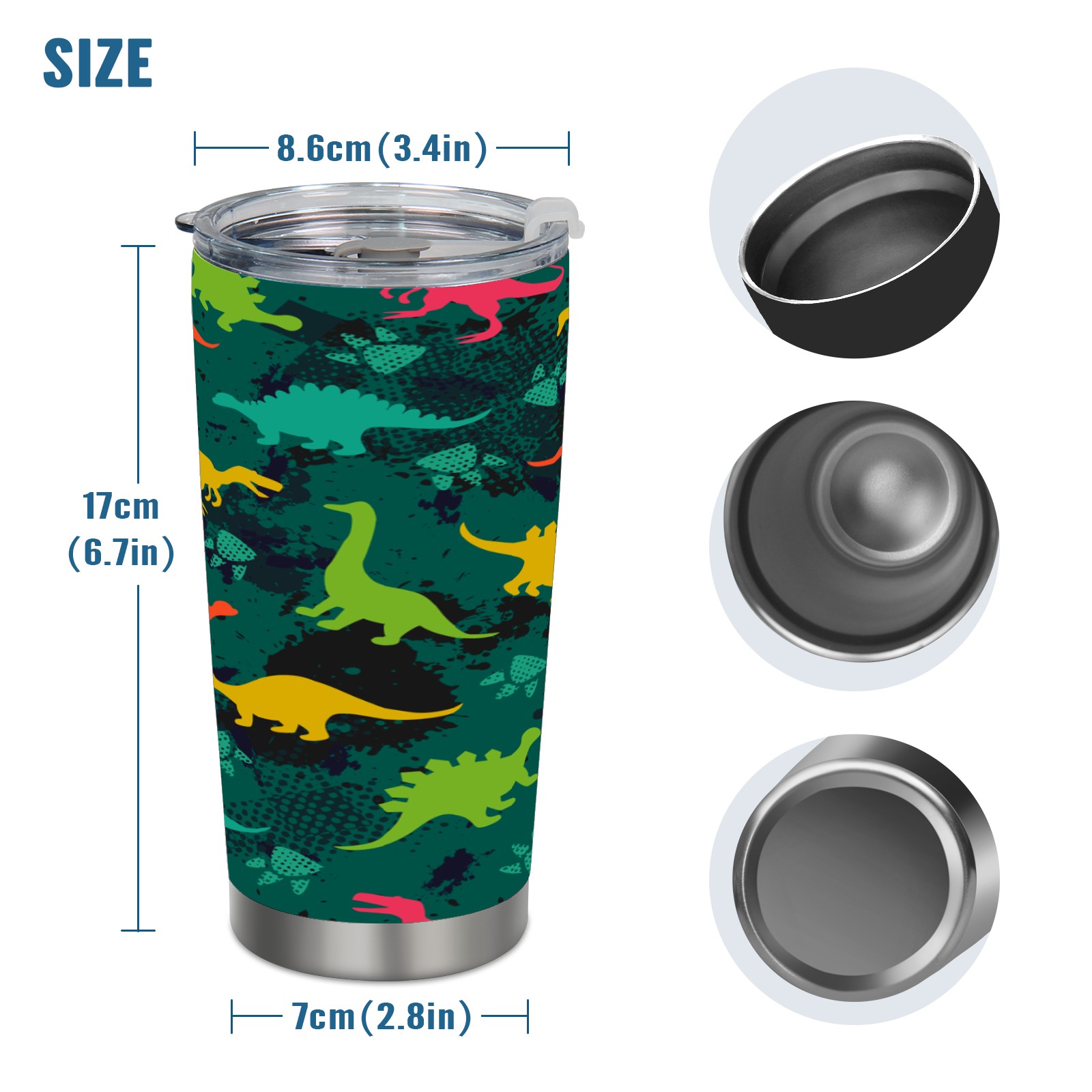 20 oz Tumbler Cute Dinosaur Stainless Steel Insulated Tumbler with Lid Double Wall Vacuum Insulated Travel Mug Cup for Coffee Ice Hot Drinks