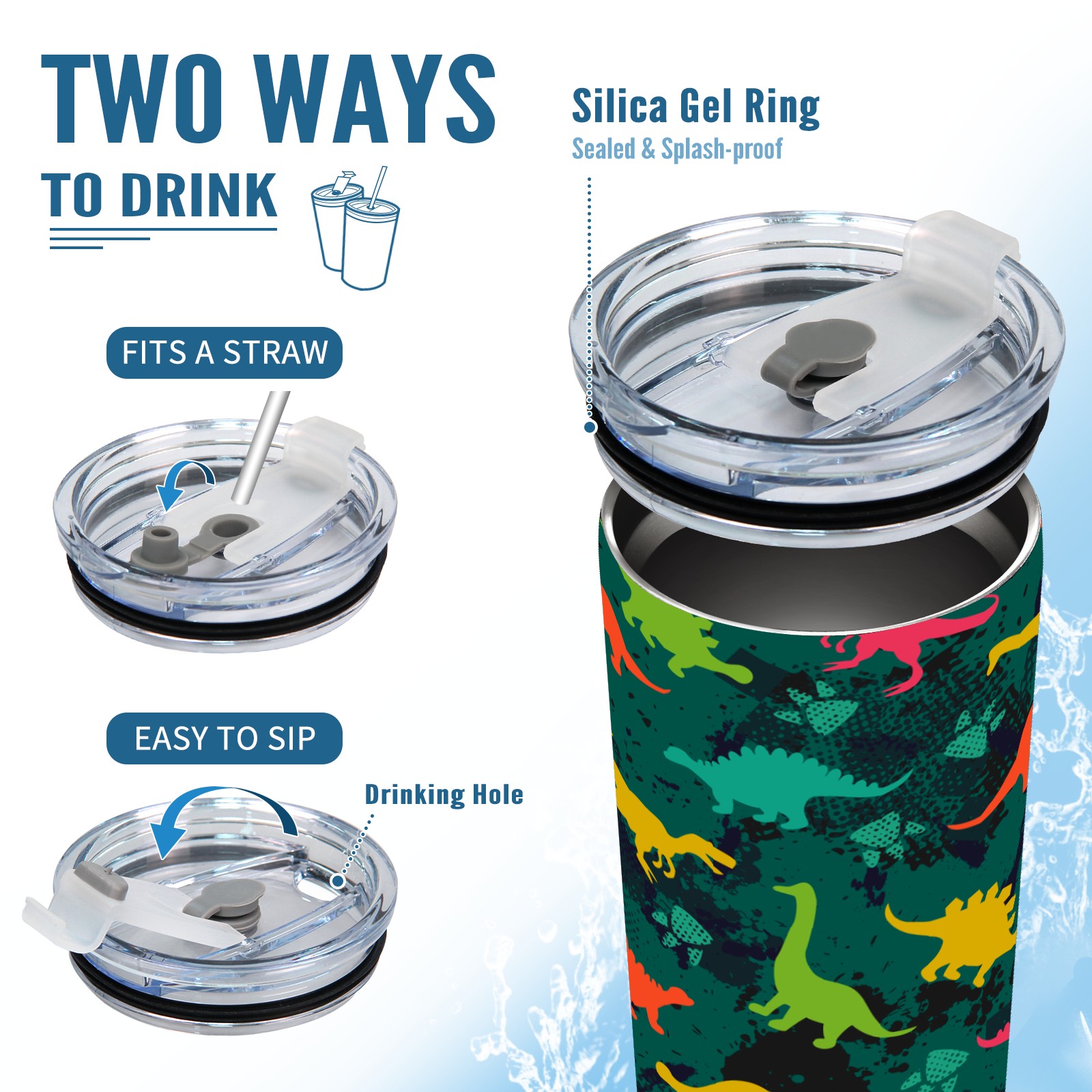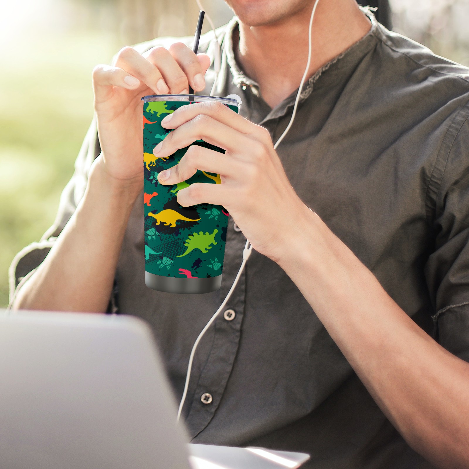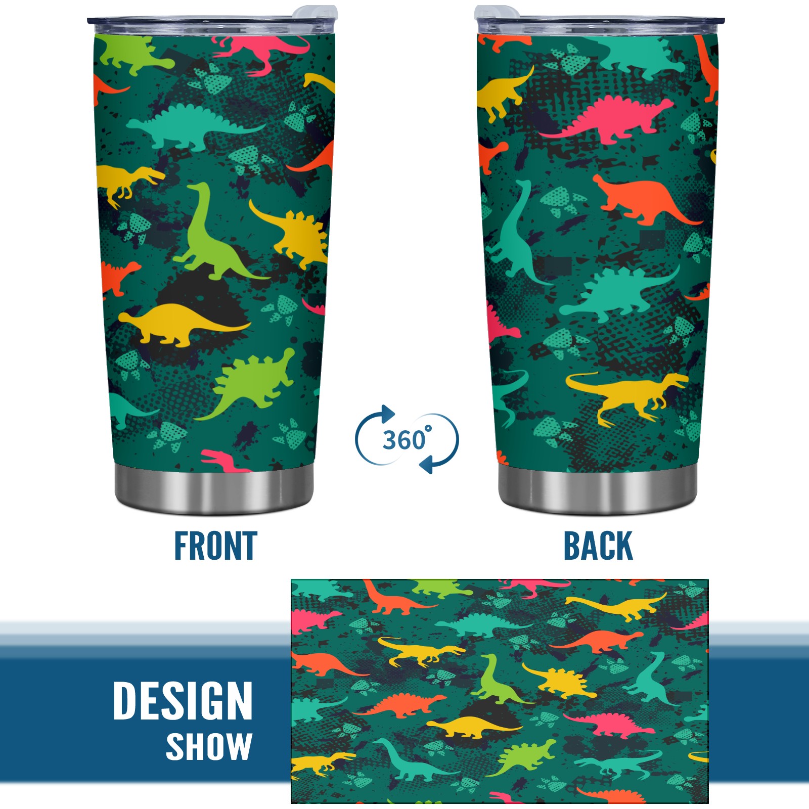20 oz Tumbler Cute Dinosaur Stainless Steel Insulated Tumbler with Lid Double Wall Vacuum Insulated Travel Mug Cup for Coffee Ice Hot Drinks