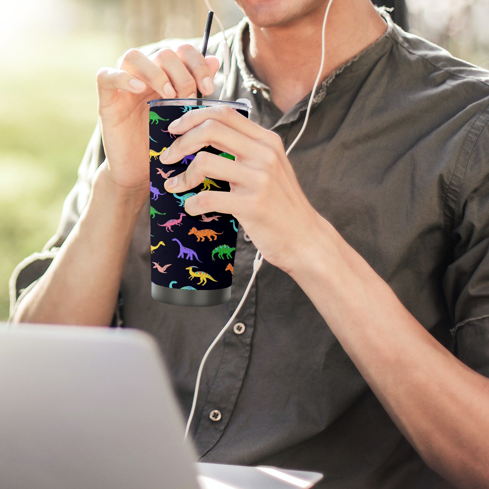 20 oz Tumbler Dinosaur Stainless Steel Insulated Tumbler with Lid Double Wall Vacuum Insulated Travel Mug Cup for Coffee Ice Hot Drinks