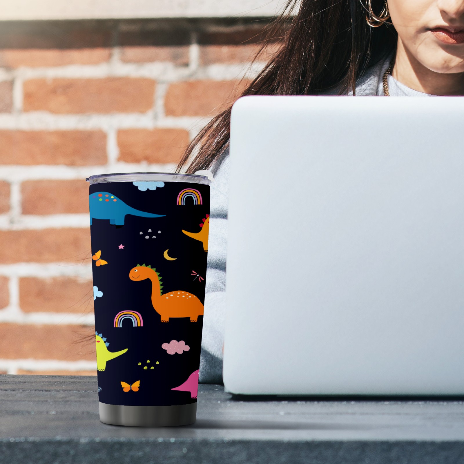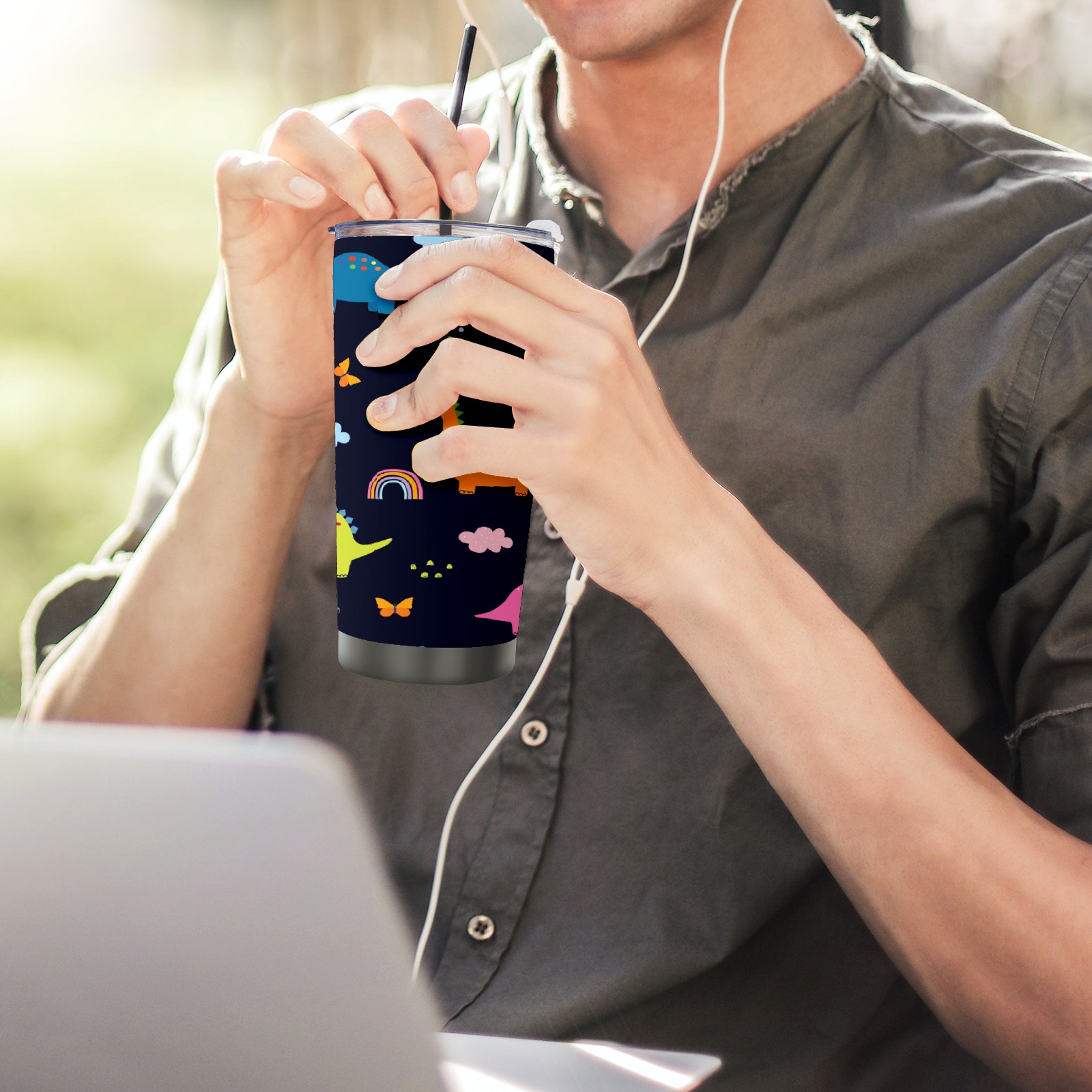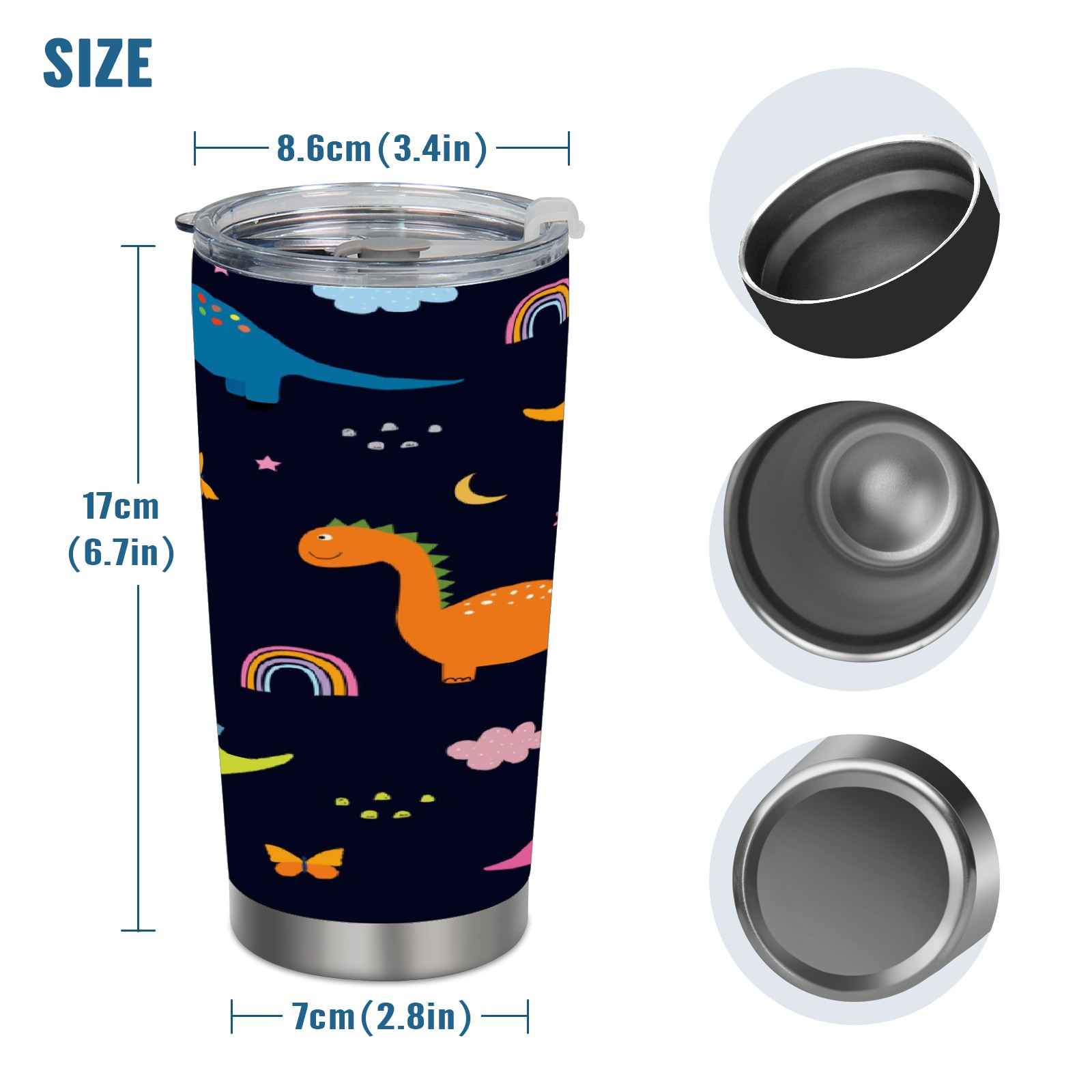 20 oz Tumbler Dinosaurs Clouds Stainless Steel Insulated Tumbler with Lid Double Wall Vacuum Insulated Travel Mug Cup for Coffee Ice Hot Drinks