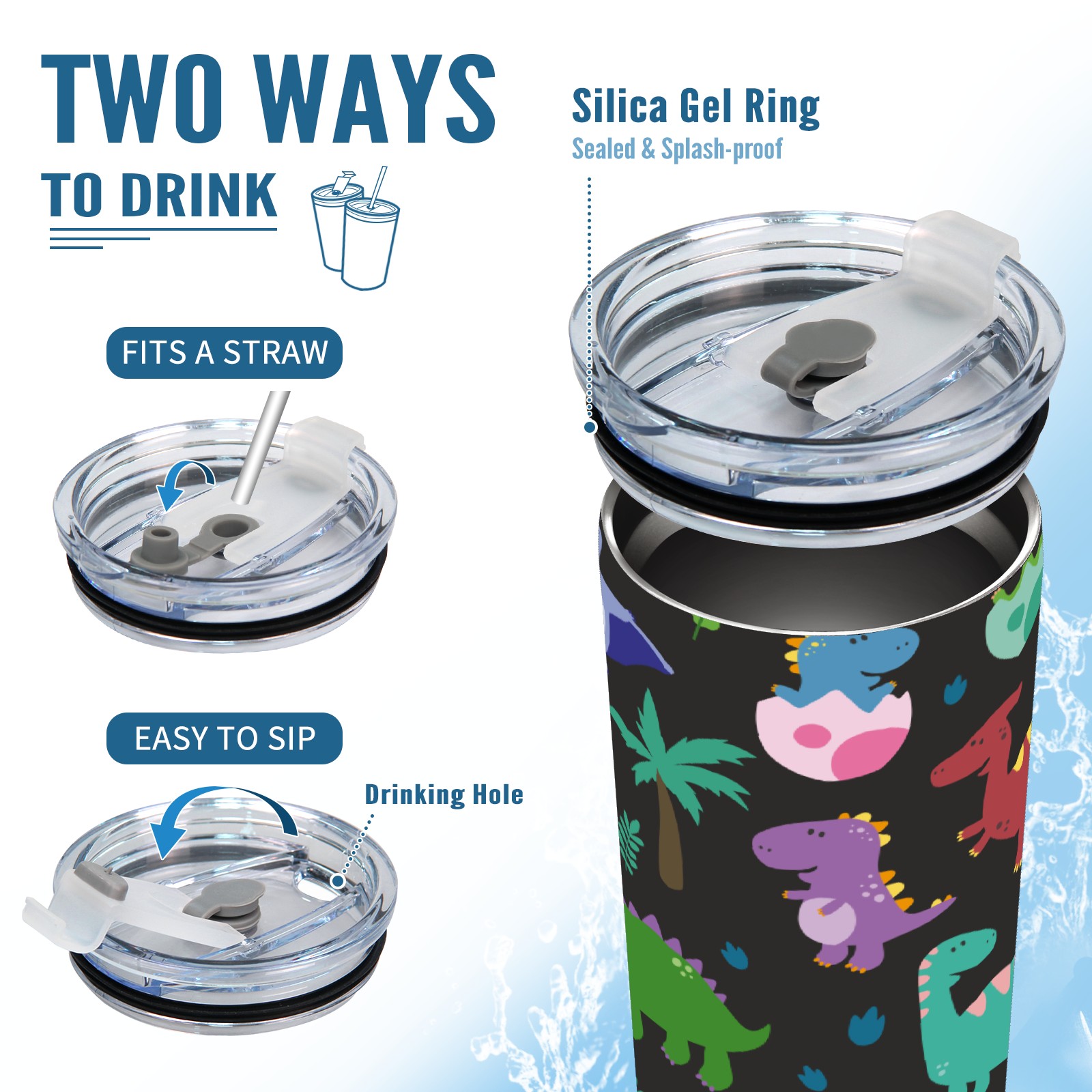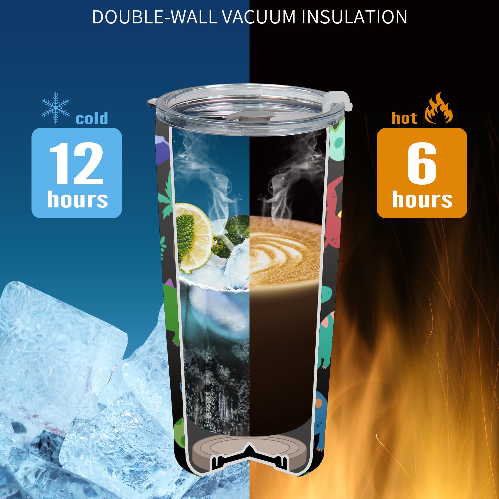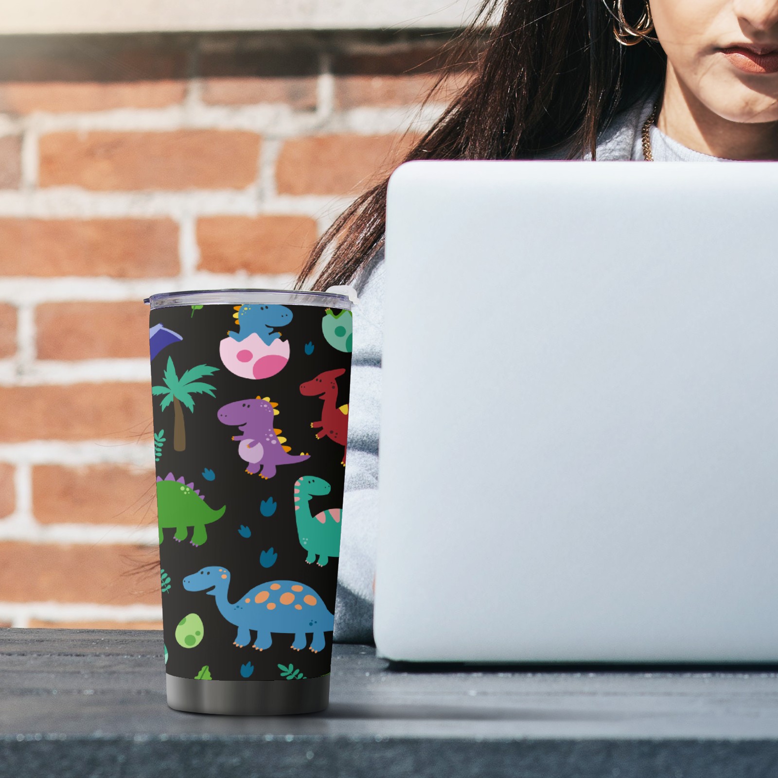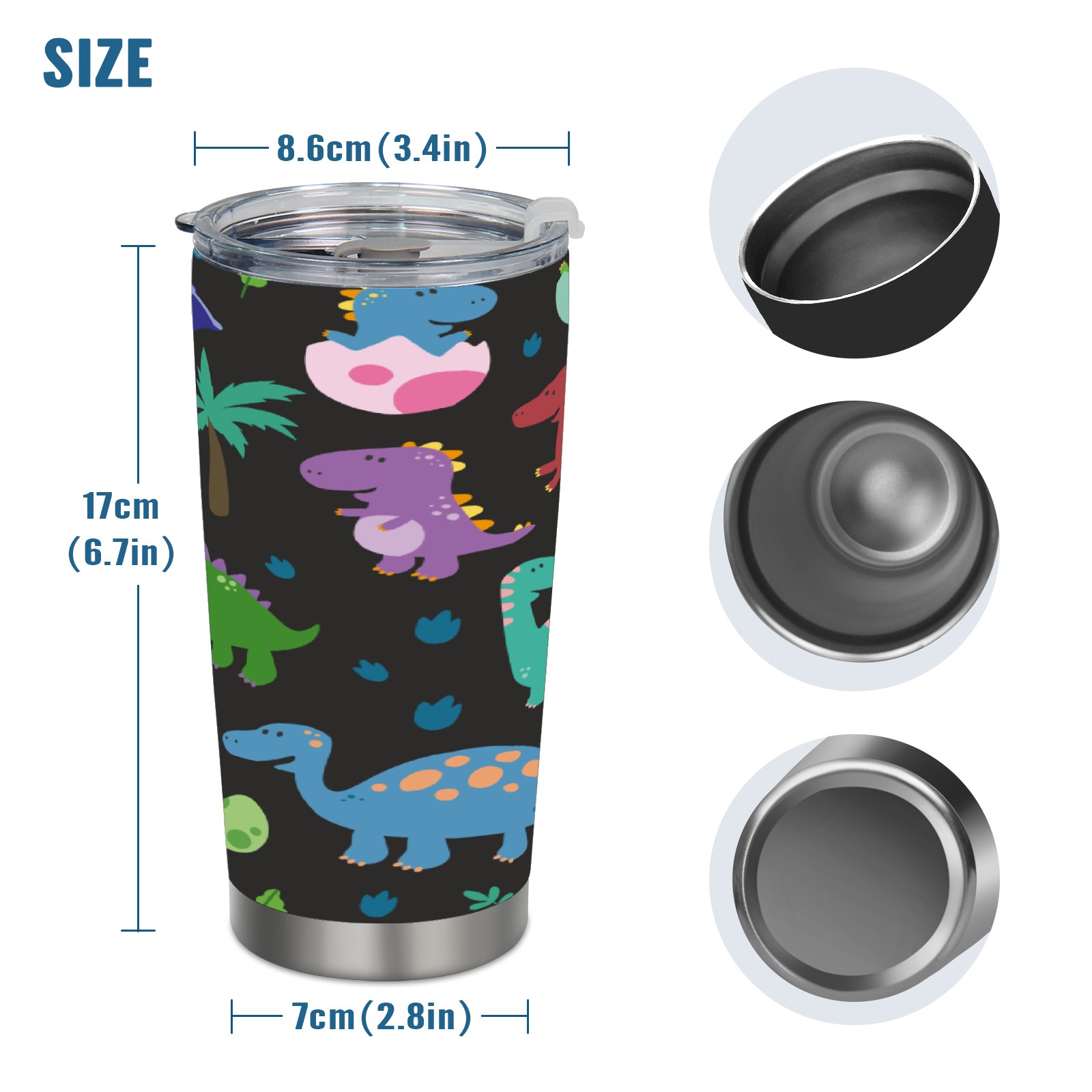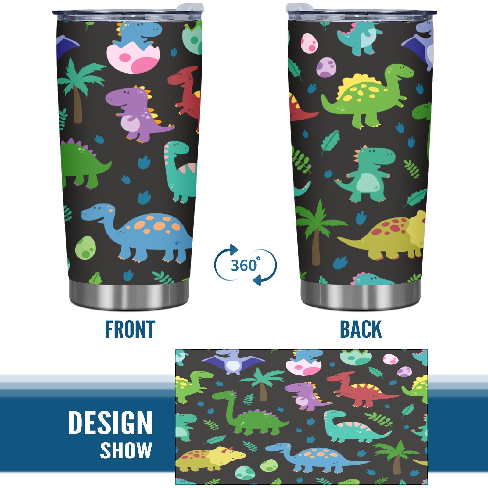 20 oz Tumbler Cartoon Dinosaurs Pattern Stainless Steel Insulated Tumbler with Lid Double Wall Vacuum Insulated Travel Mug Cup for Coffee Ice Hot Drinks