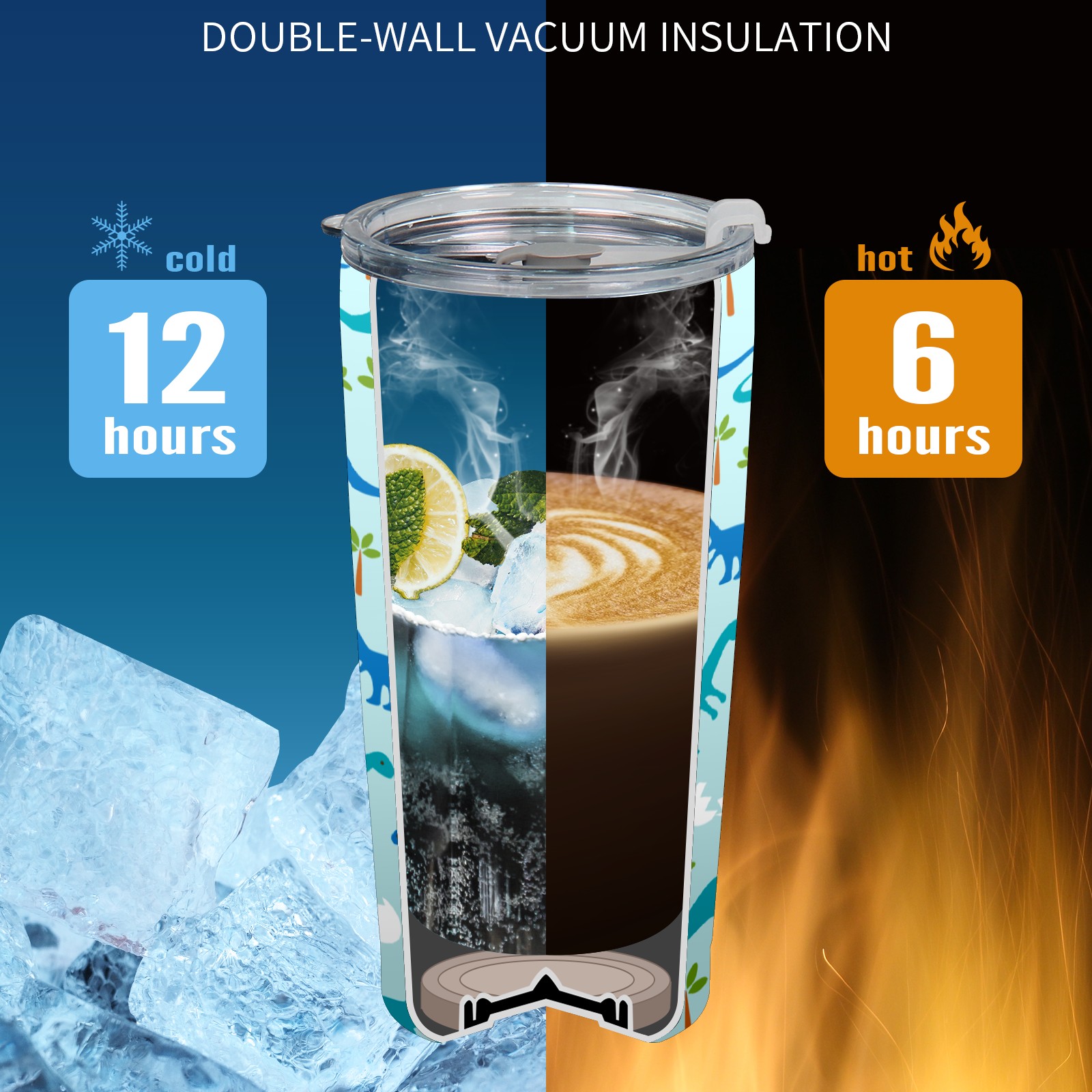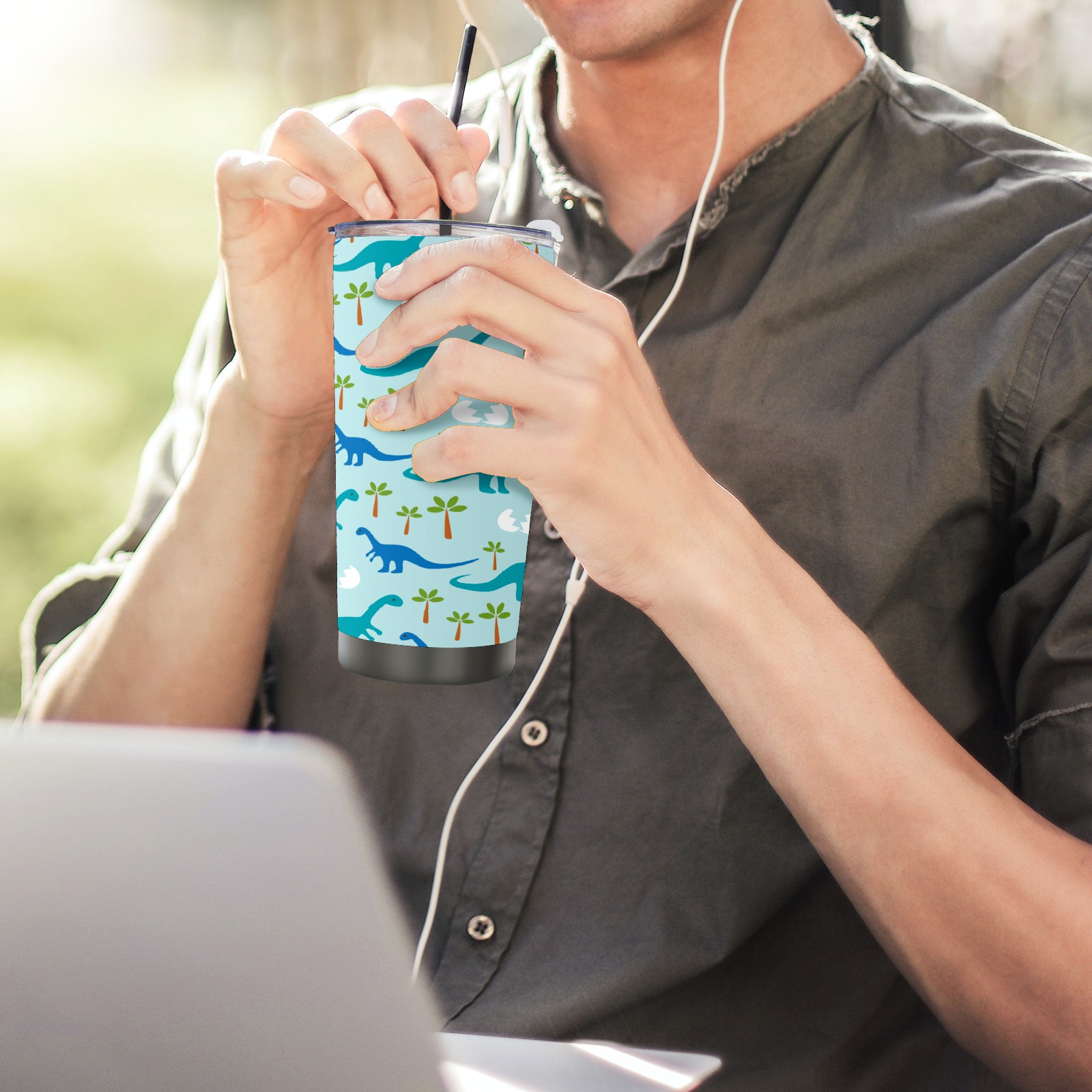20 oz Tumbler Baby Dinosaur Stainless Steel Insulated Tumbler with Lid Double Wall Vacuum Insulated Travel Mug Cup for Coffee Ice Hot Drinks