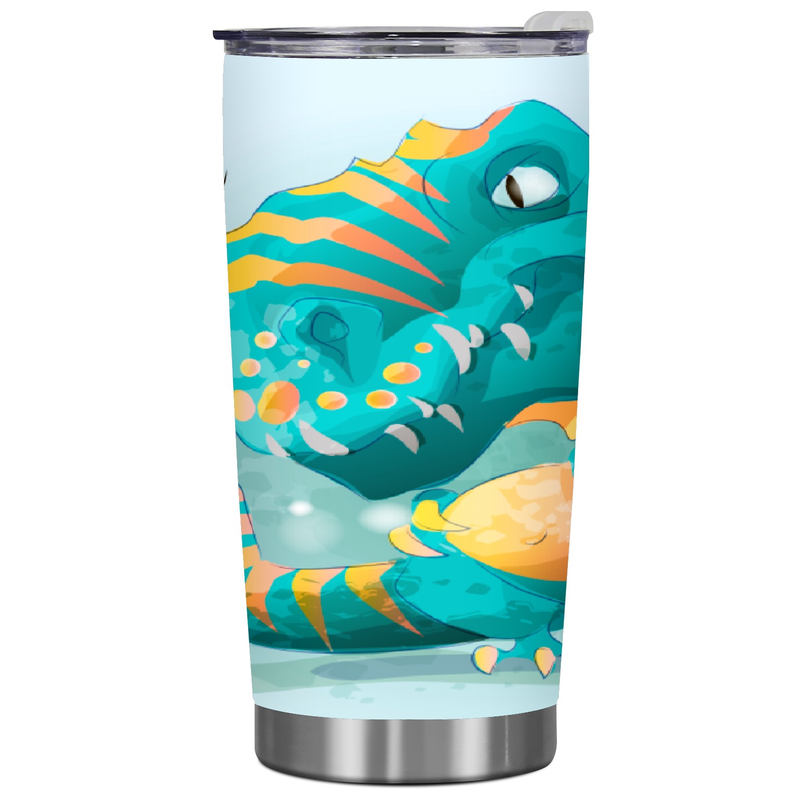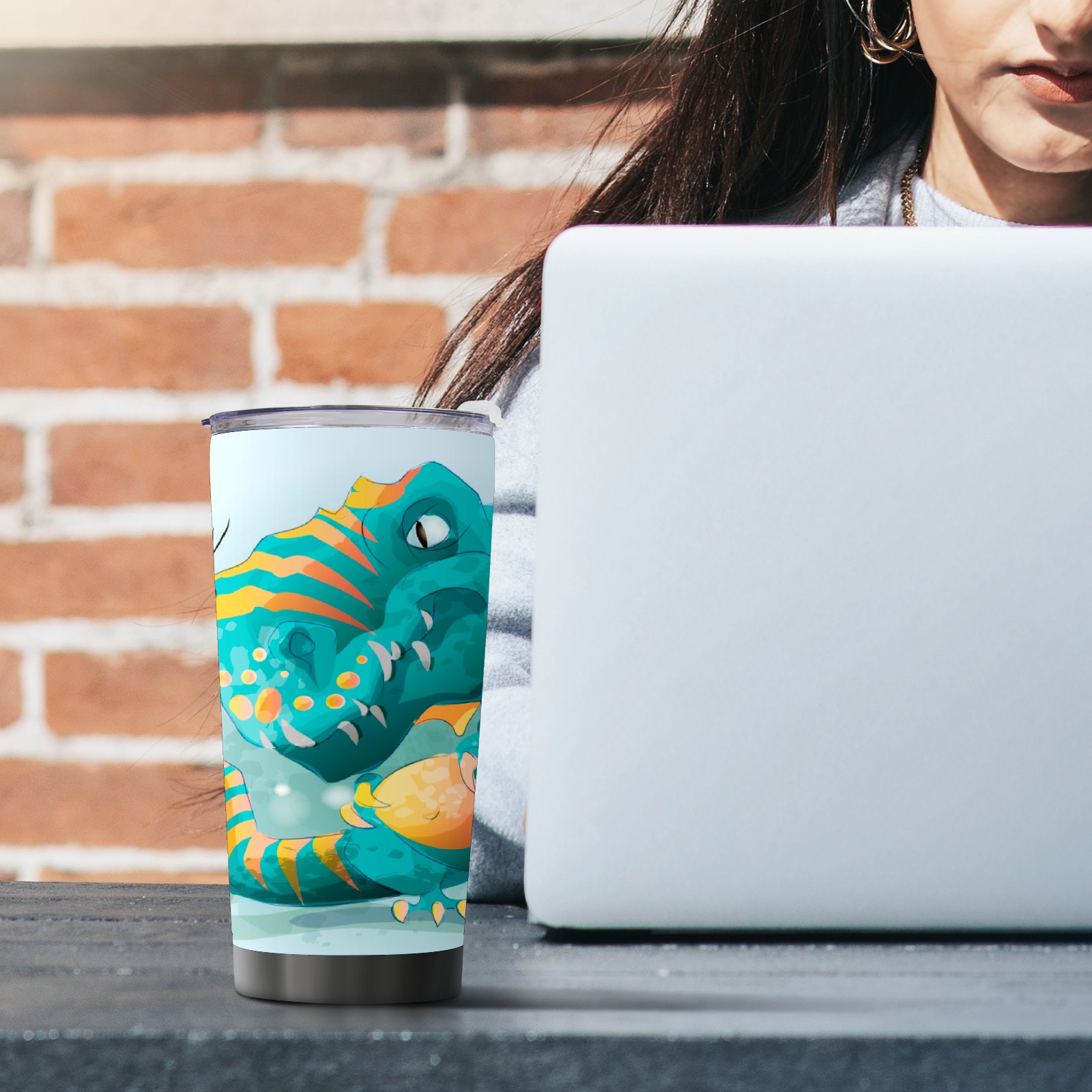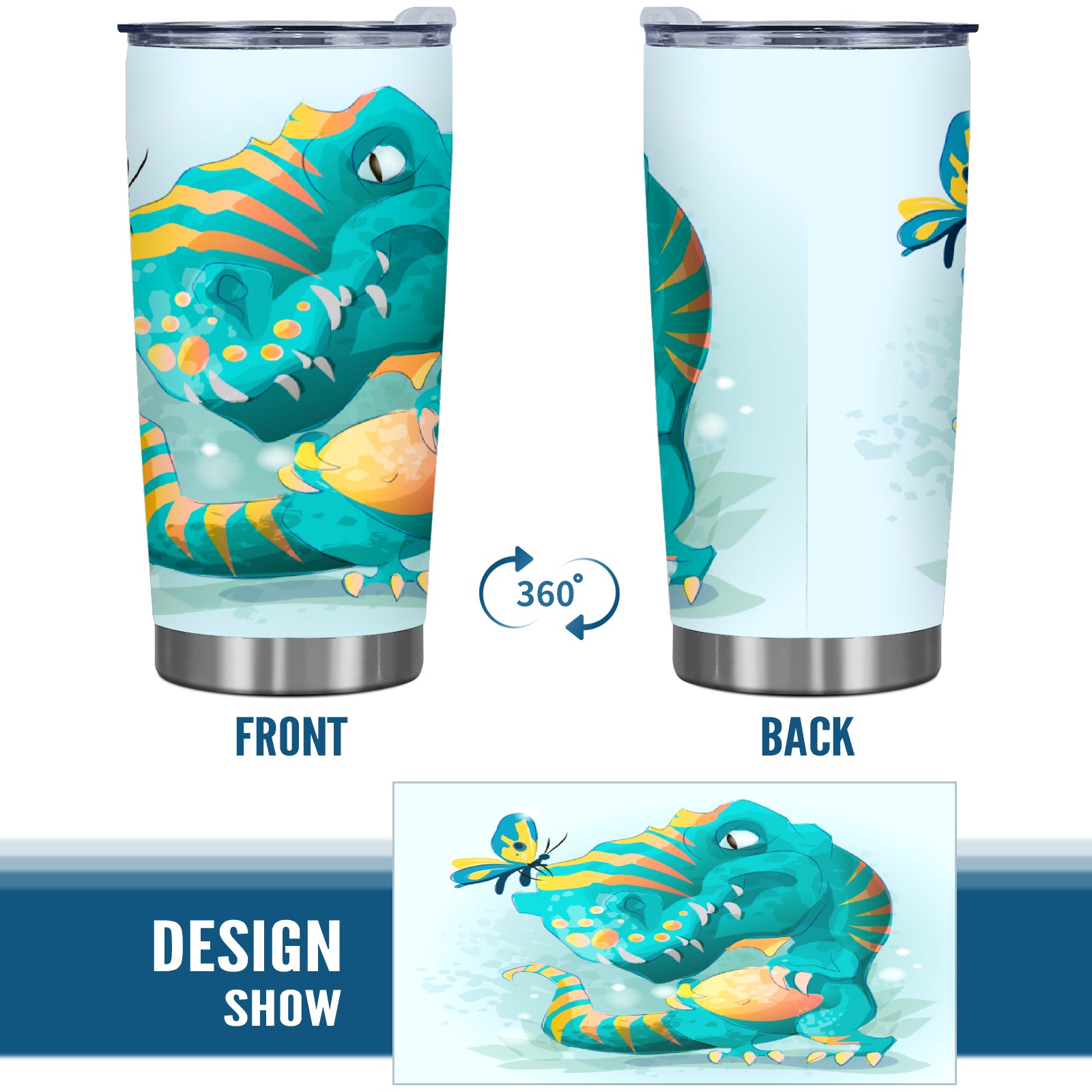 20 oz Tumbler Cute Baby Trex Dinosaur Playing With Butterfly Stainless Steel Insulated Tumbler with Lid Double Wall Vacuum Insulated Travel Mug Cup for Coffee Ice Hot Drinks