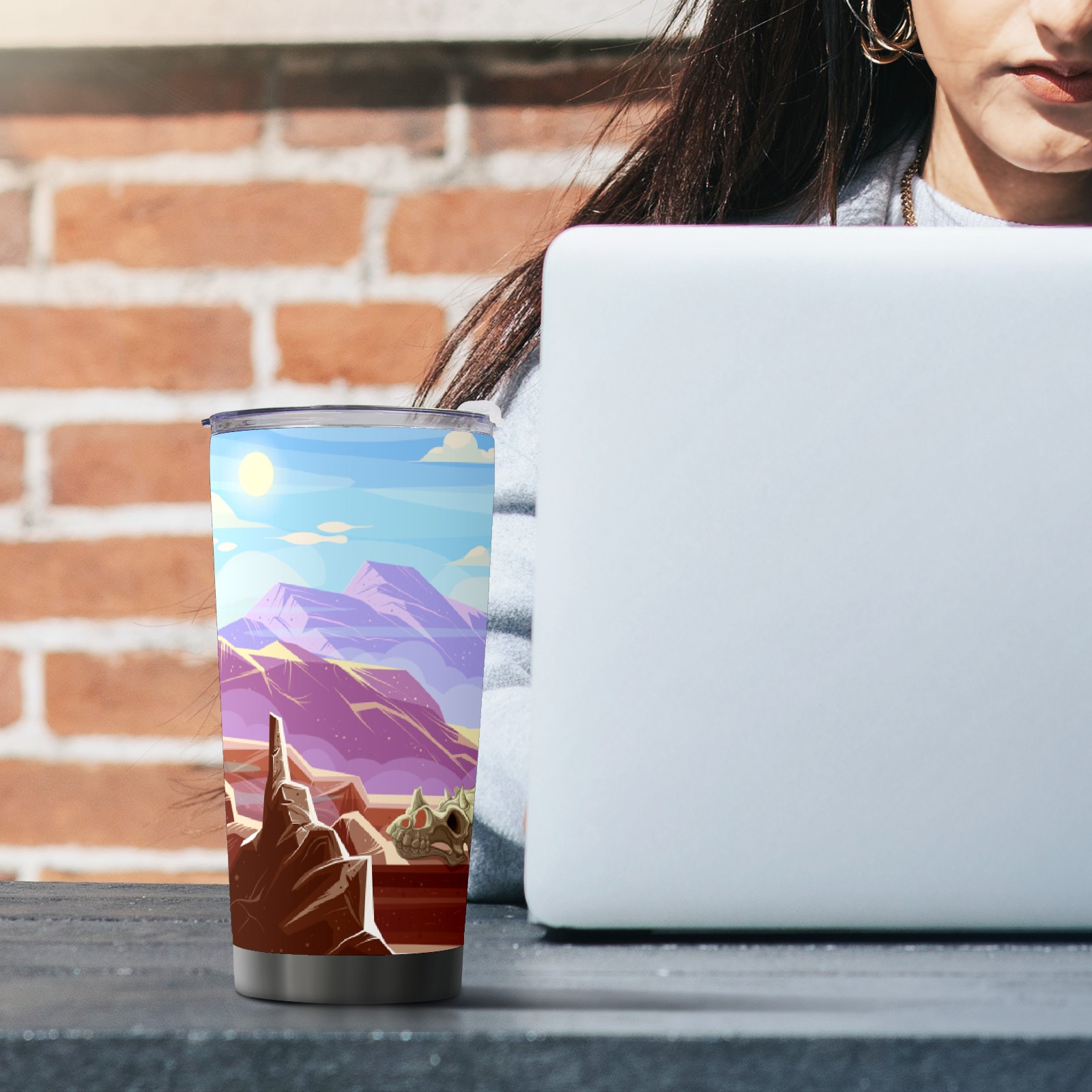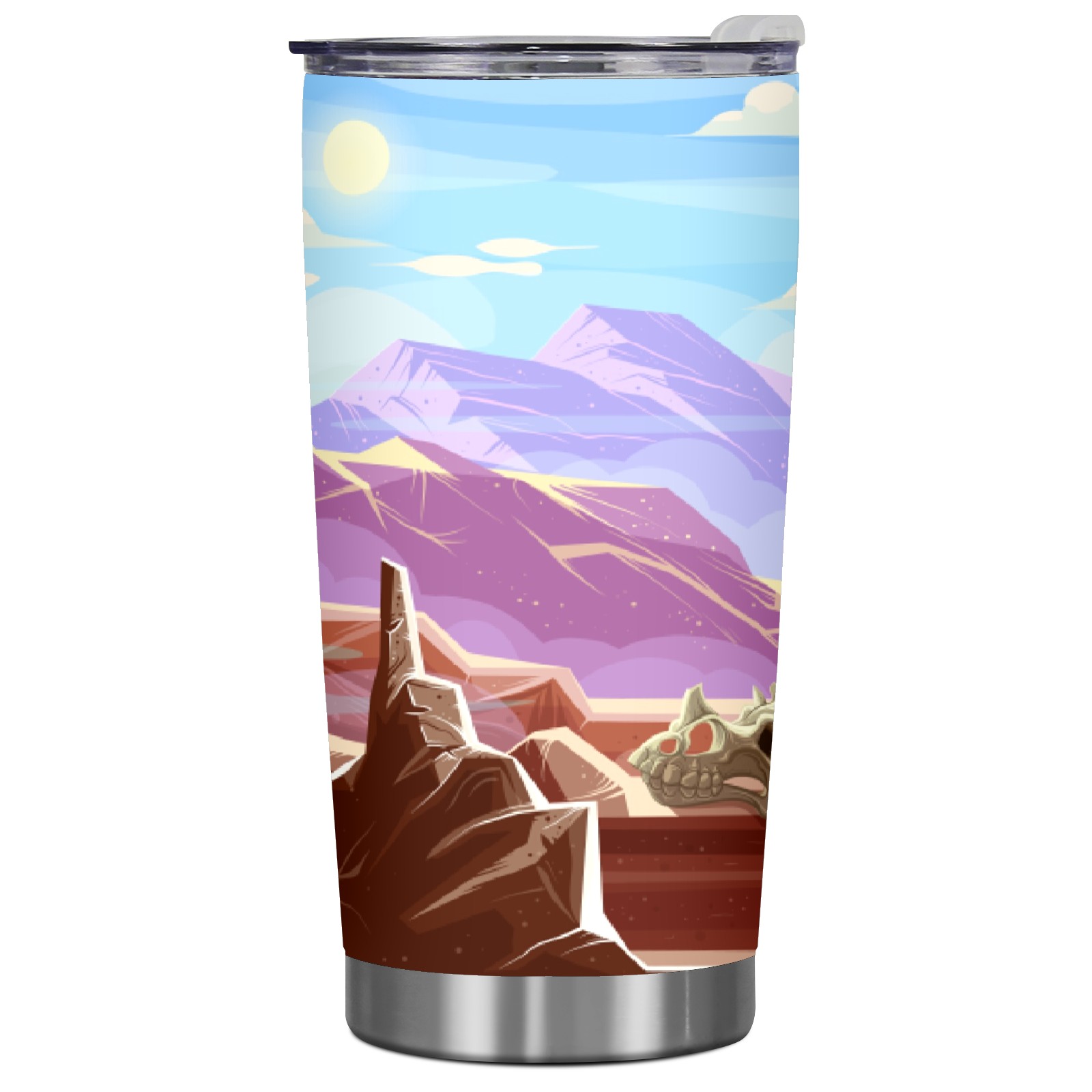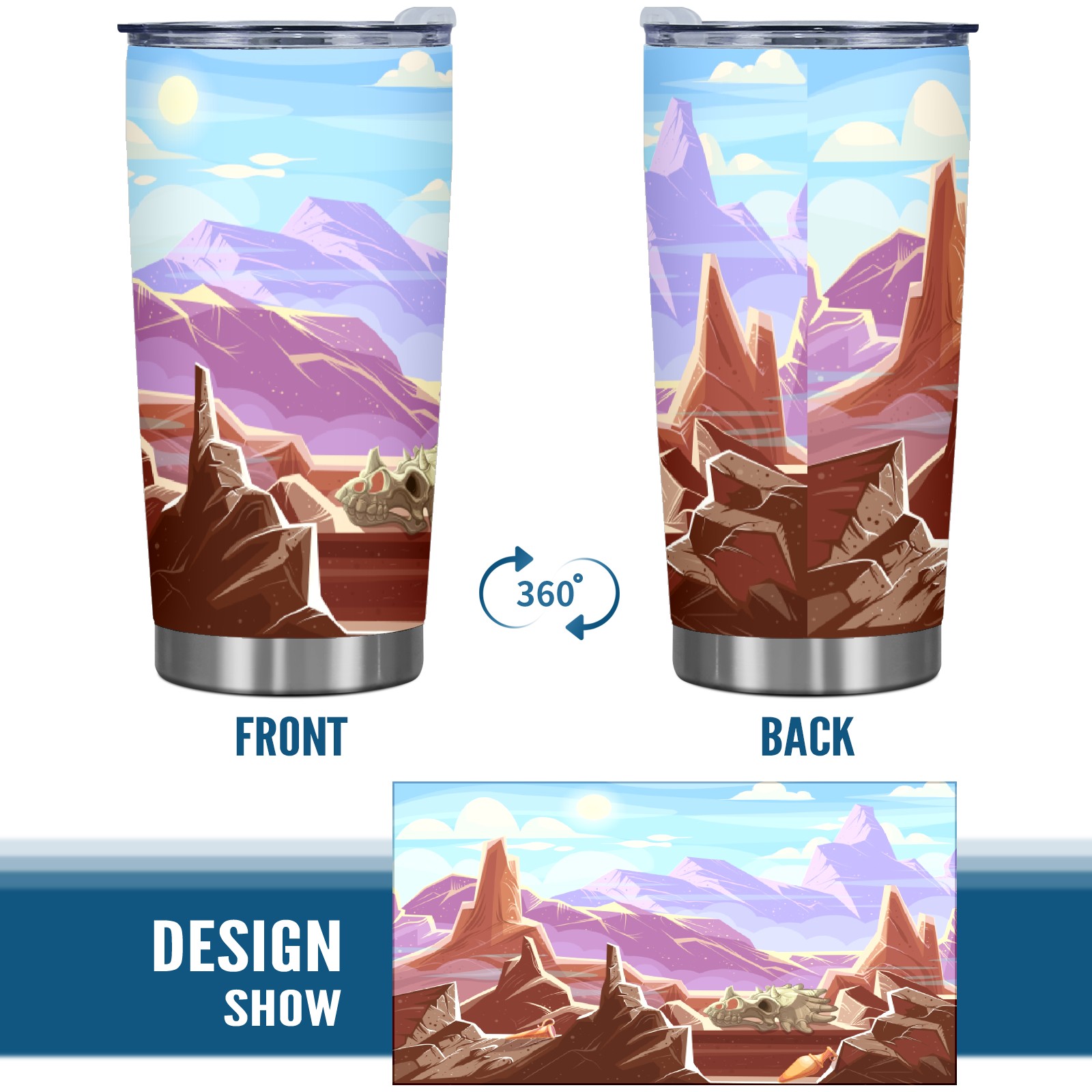 20 oz Tumbler Mountain Landscape With Dinosaur Archaeological Fossils Stainless Steel Insulated Tumbler with Lid Double Wall Vacuum Insulated Travel Mug Cup for Coffee Ice Hot Drinks