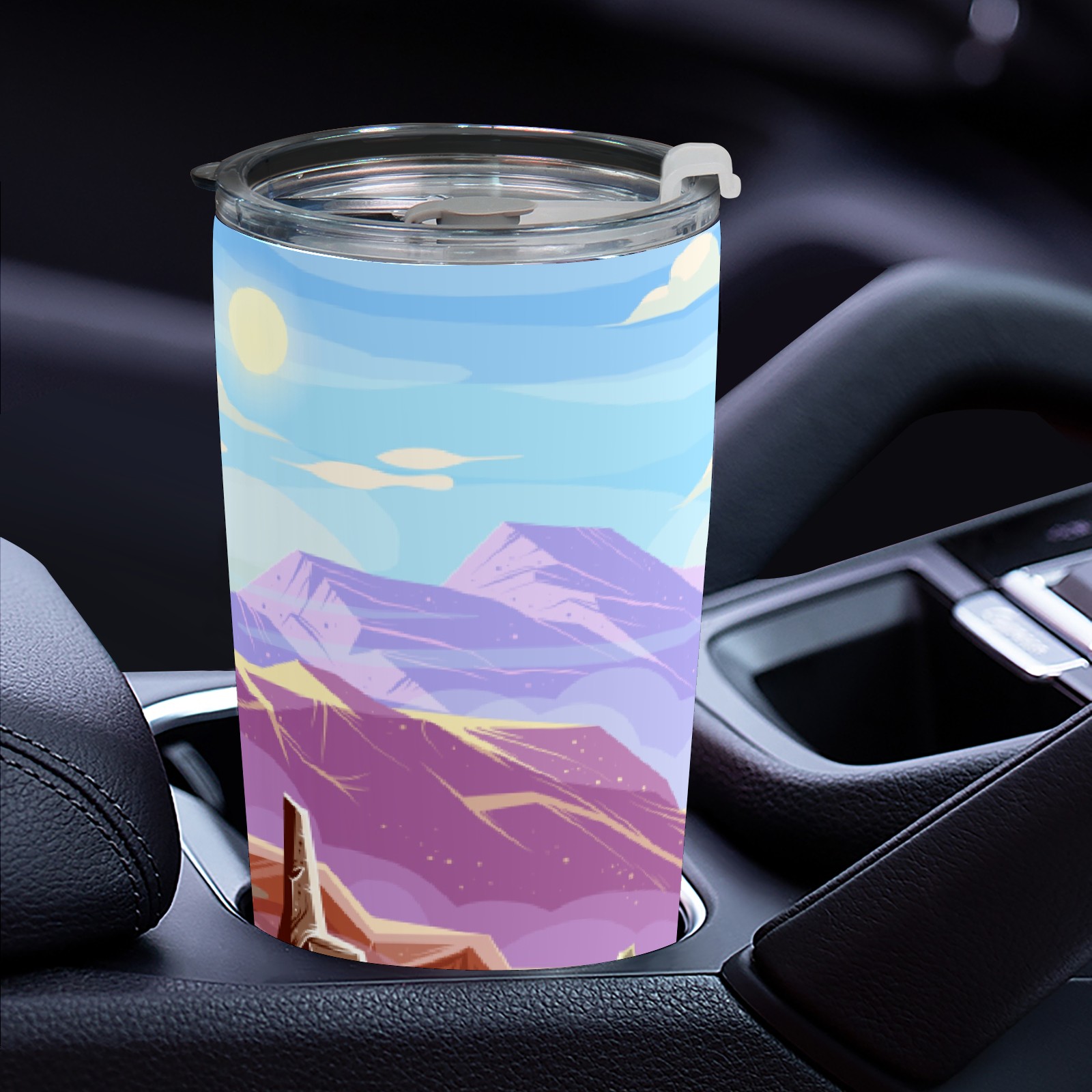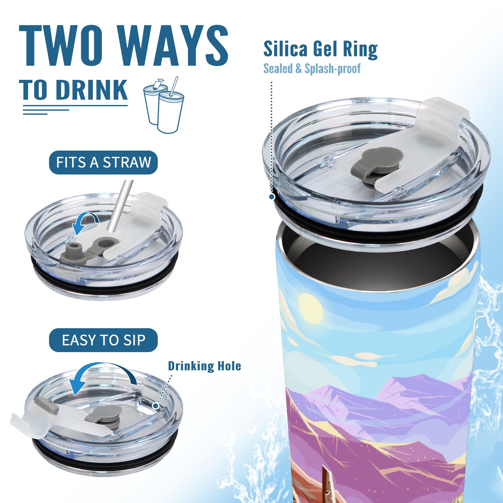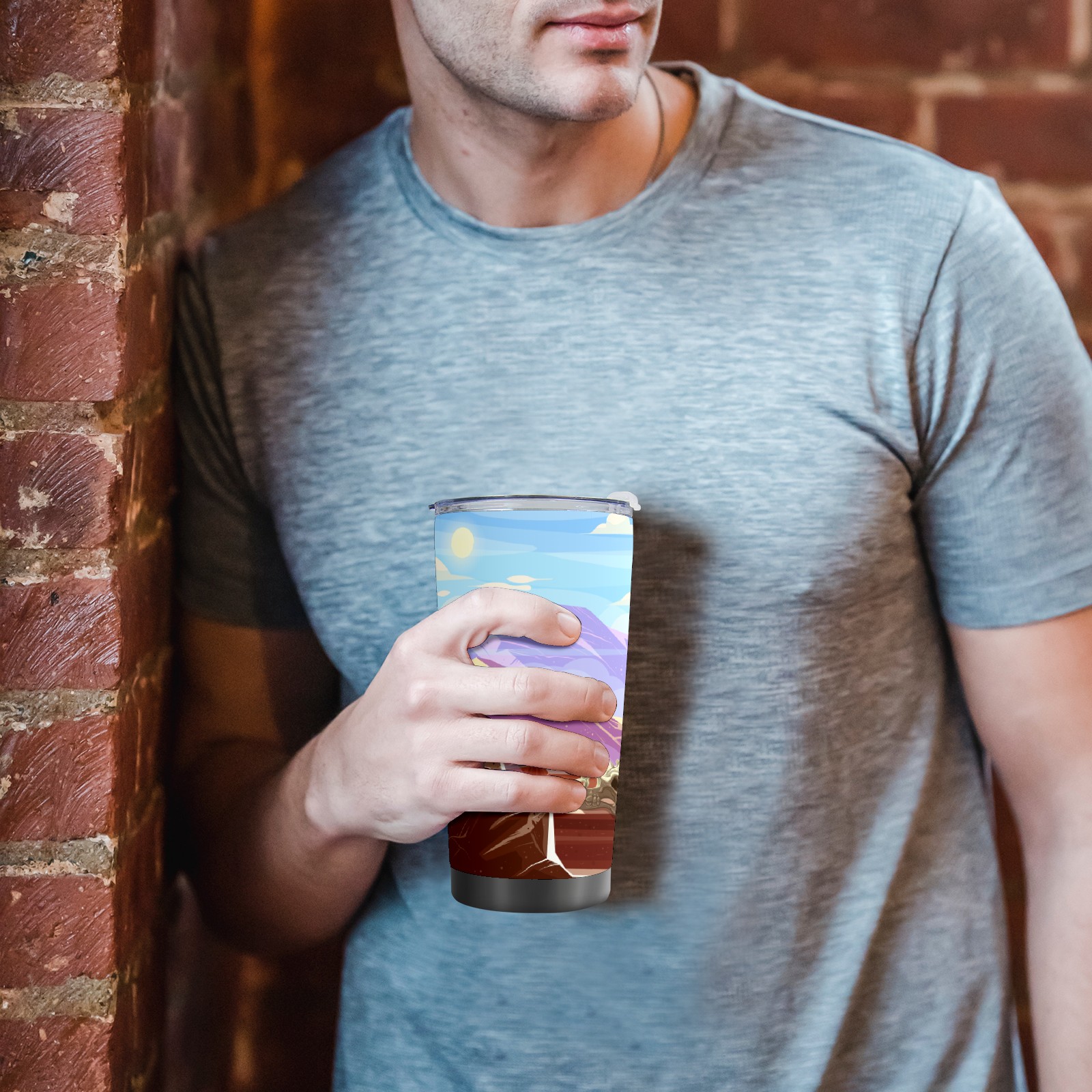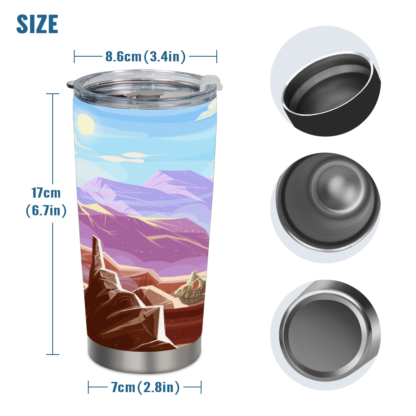20 oz Tumbler Mountain Landscape With Dinosaur Archaeological Fossils Stainless Steel Insulated Tumbler with Lid Double Wall Vacuum Insulated Travel Mug Cup for Coffee Ice Hot Drinks