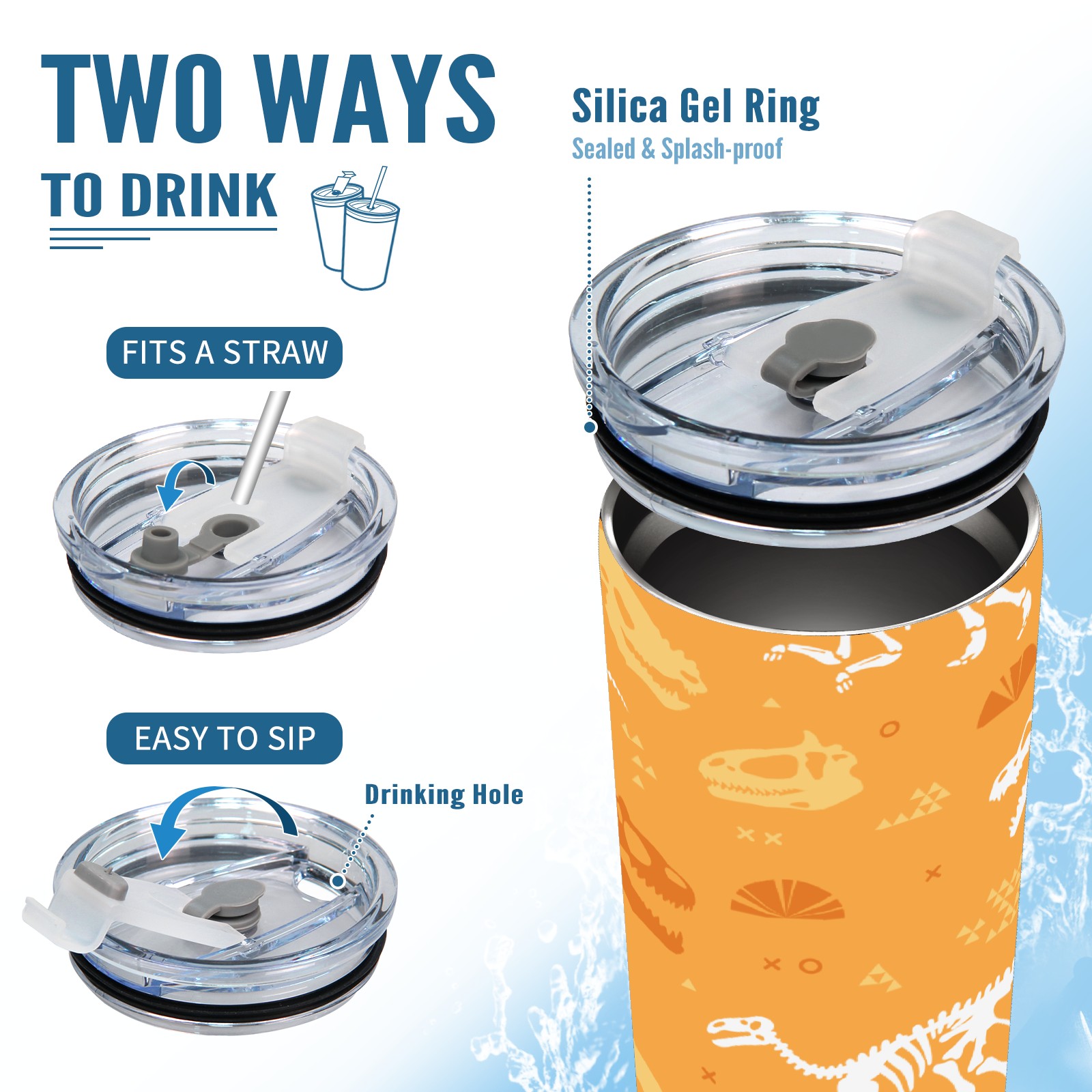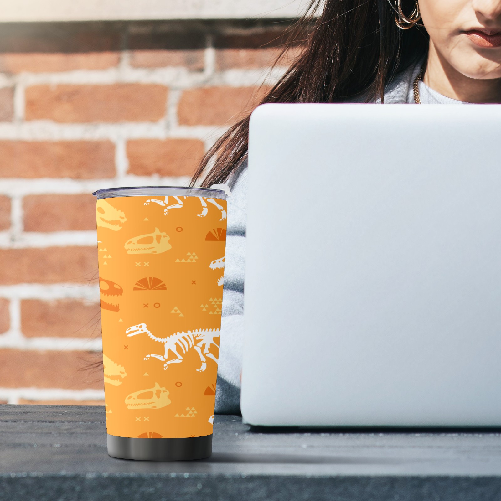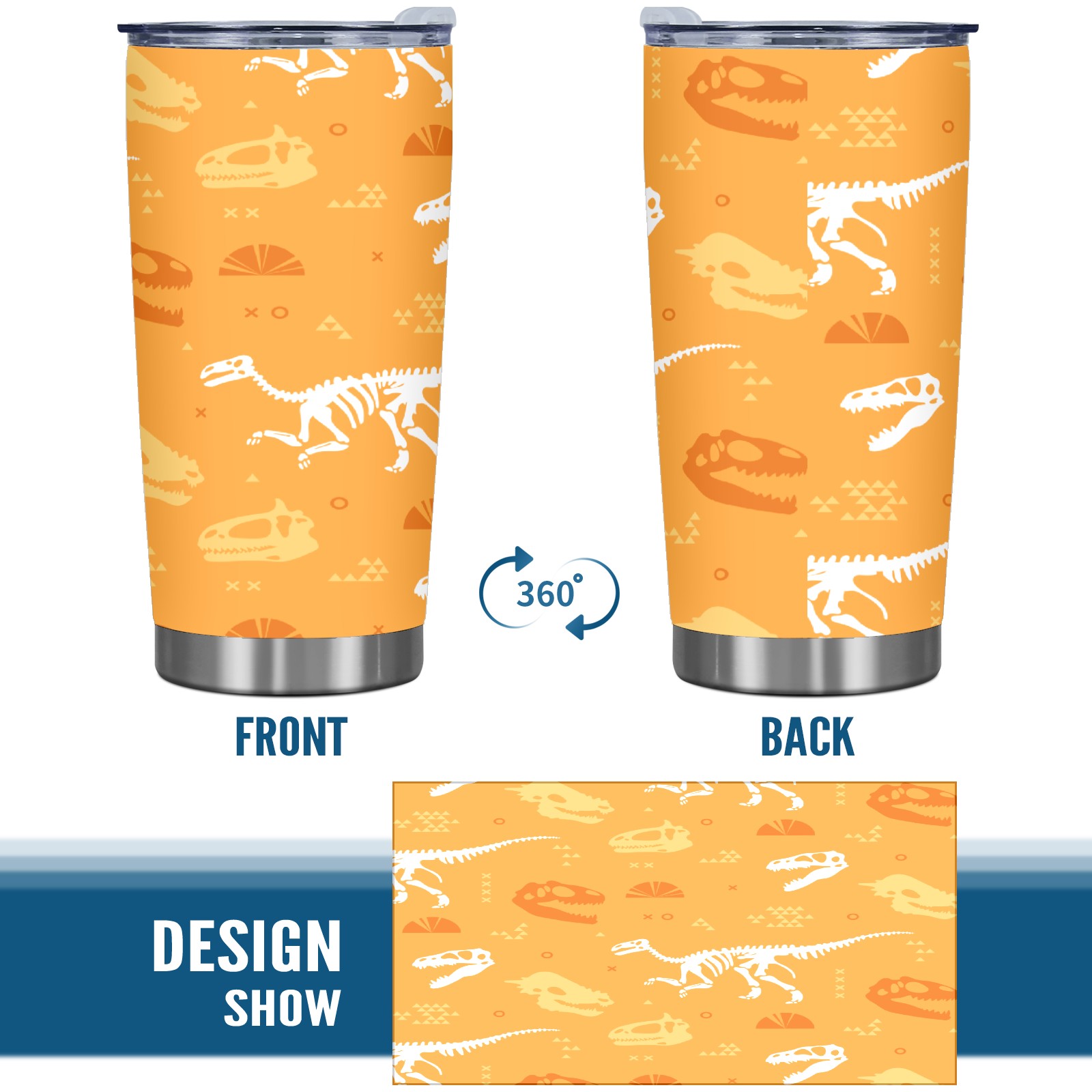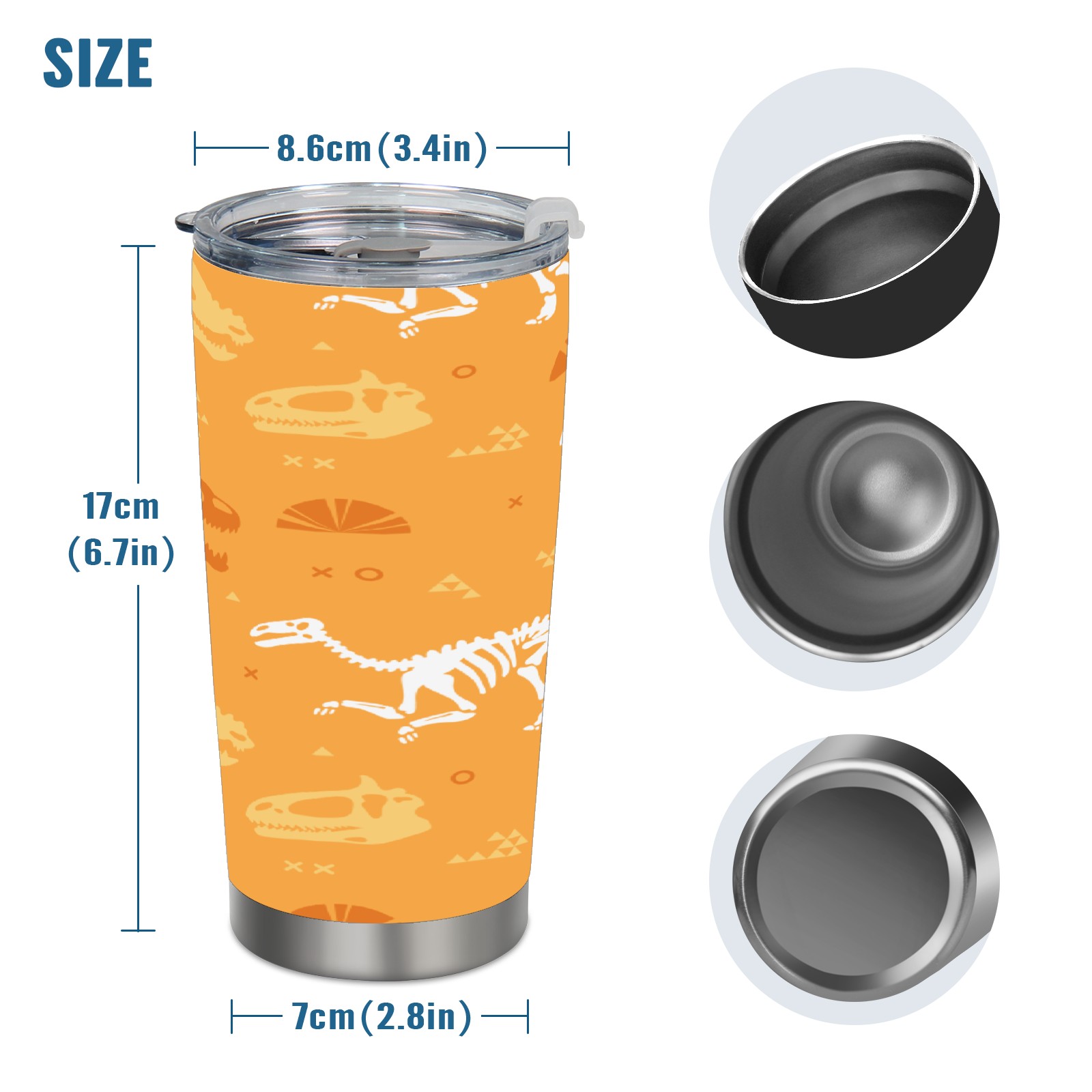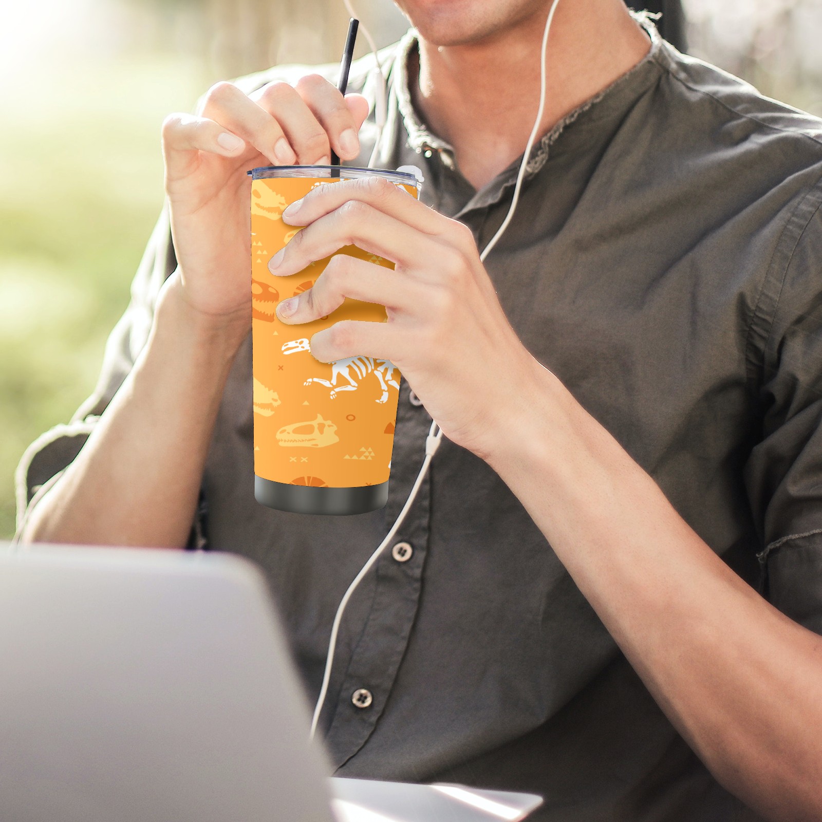 20 oz Tumbler Dinosaurs Fossil Yellow Stainless Steel Insulated Tumbler with Lid Double Wall Vacuum Insulated Travel Mug Cup for Coffee Ice Hot Drinks