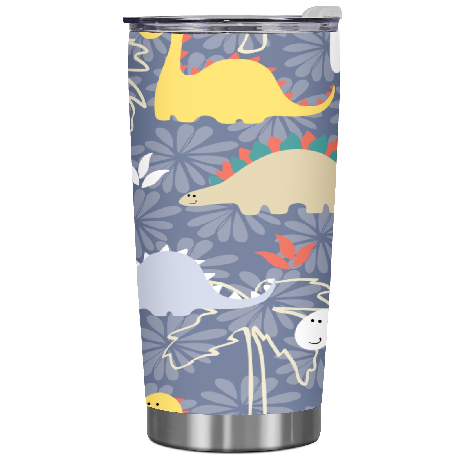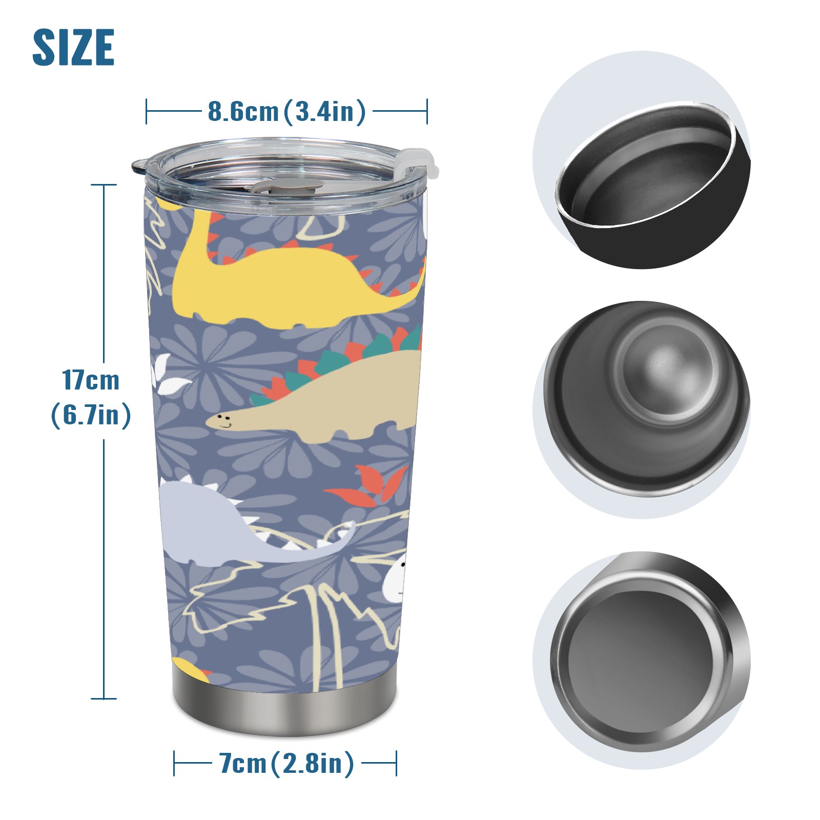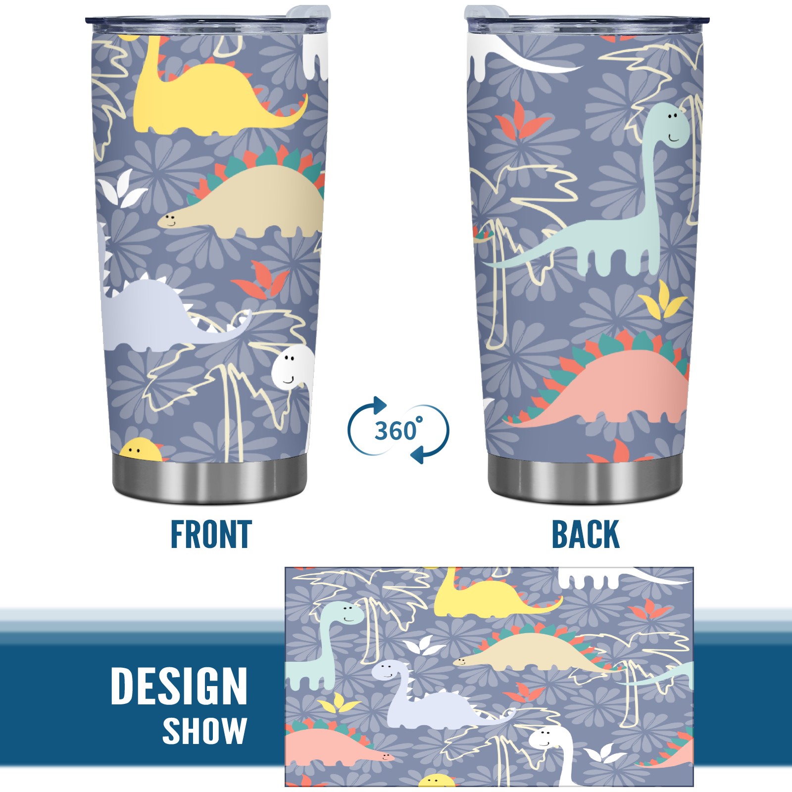 20 oz Tumbler Cartoon Dinosaur Cute Animal Coconut Tree Pattern Stainless Steel Insulated Tumbler with Lid Double Wall Vacuum Insulated Travel Mug Cup for Coffee Ice Hot Drinks