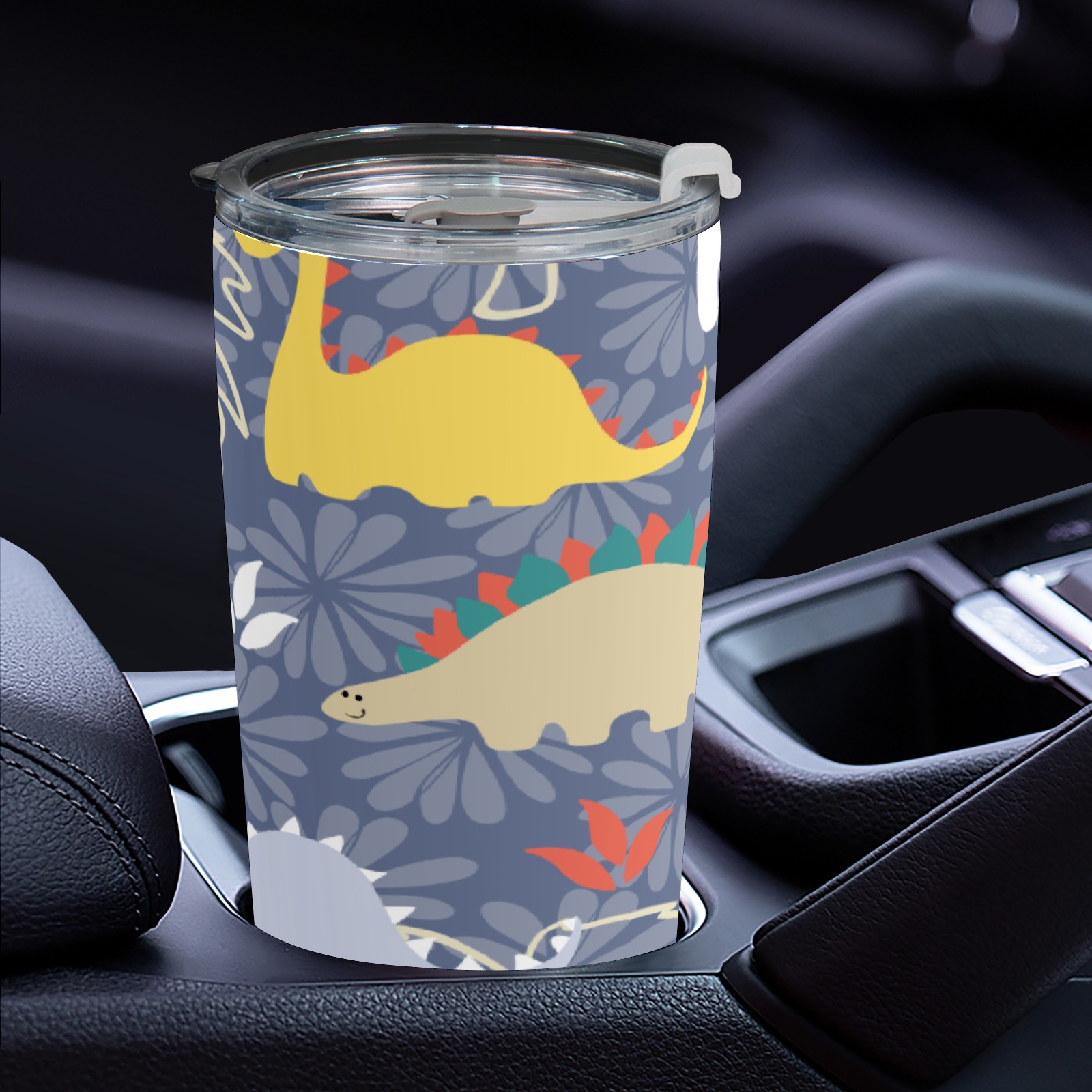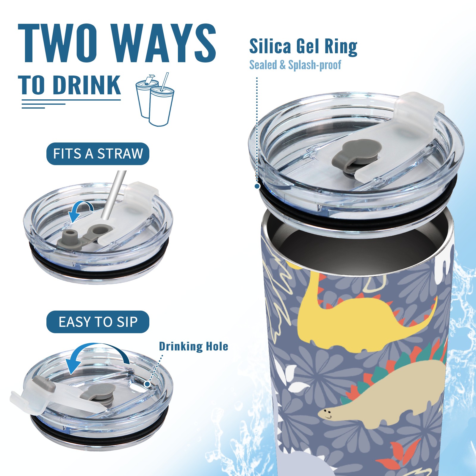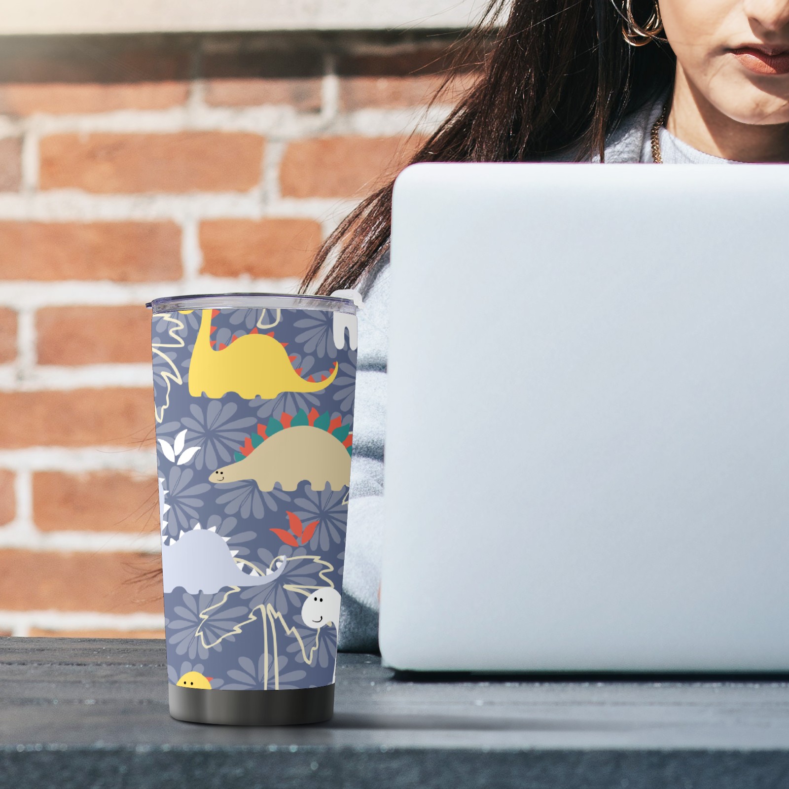 20 oz Tumbler Cartoon Dinosaur Cute Animal Coconut Tree Pattern Stainless Steel Insulated Tumbler with Lid Double Wall Vacuum Insulated Travel Mug Cup for Coffee Ice Hot Drinks