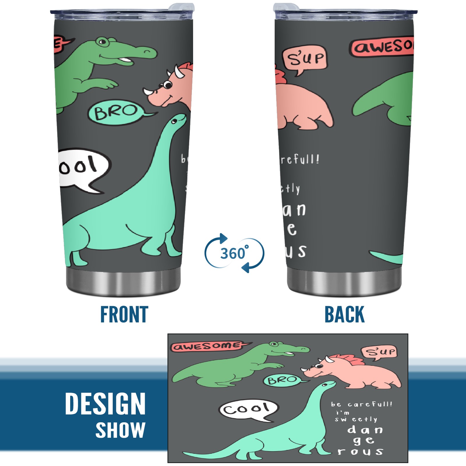 20 oz Tumbler Cool Dangerous Dinosaur Stainless Steel Insulated Tumbler with Lid Double Wall Vacuum Insulated Travel Mug Cup for Coffee Ice Hot Drinks