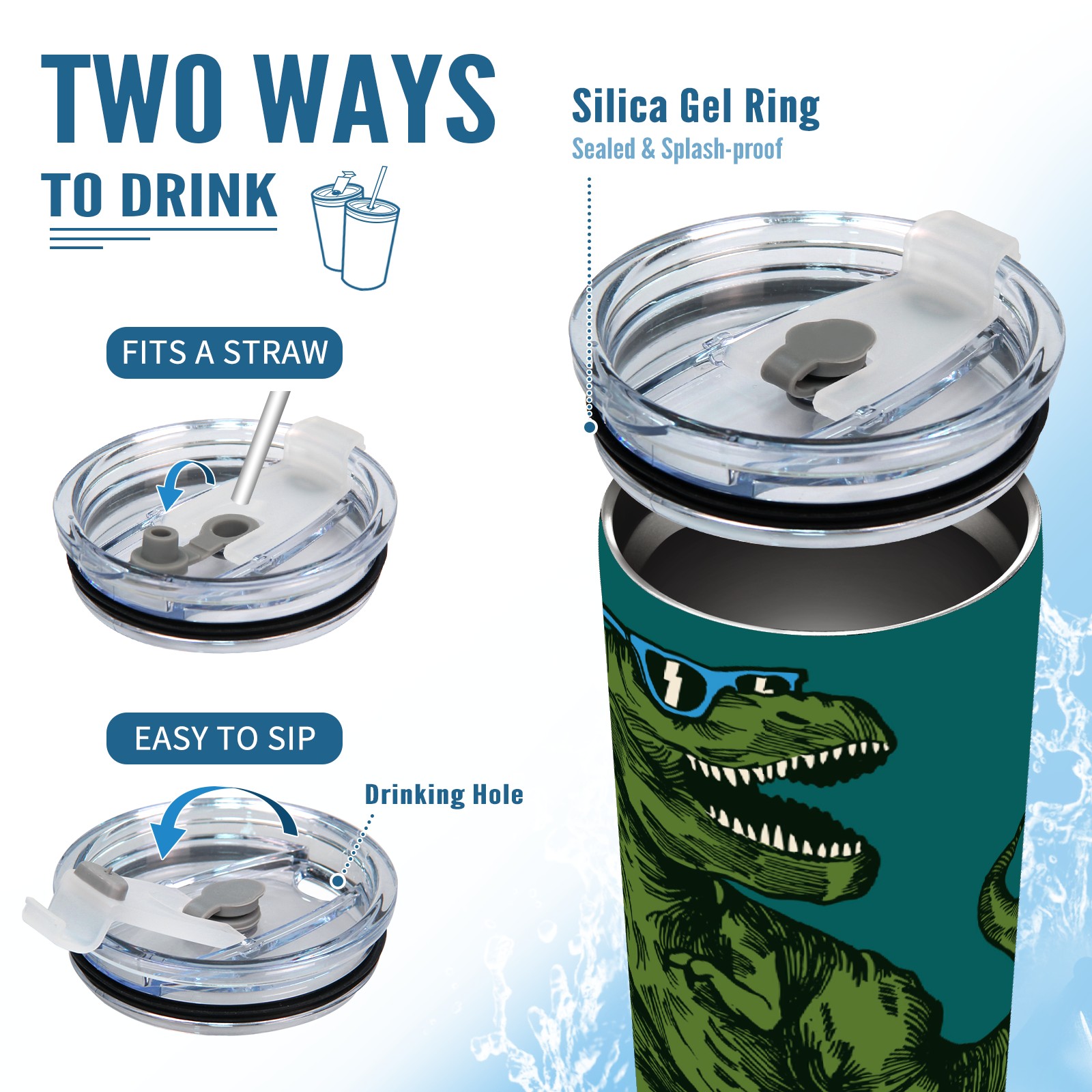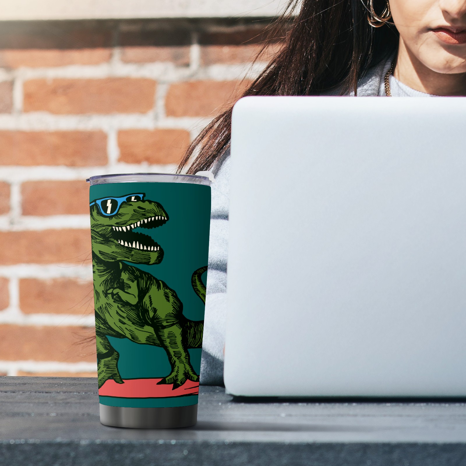20 oz Tumbler Green Dinosaur Stainless Steel Insulated Tumbler with Lid Double Wall Vacuum Insulated Travel Mug Cup for Coffee Ice Hot Drinks