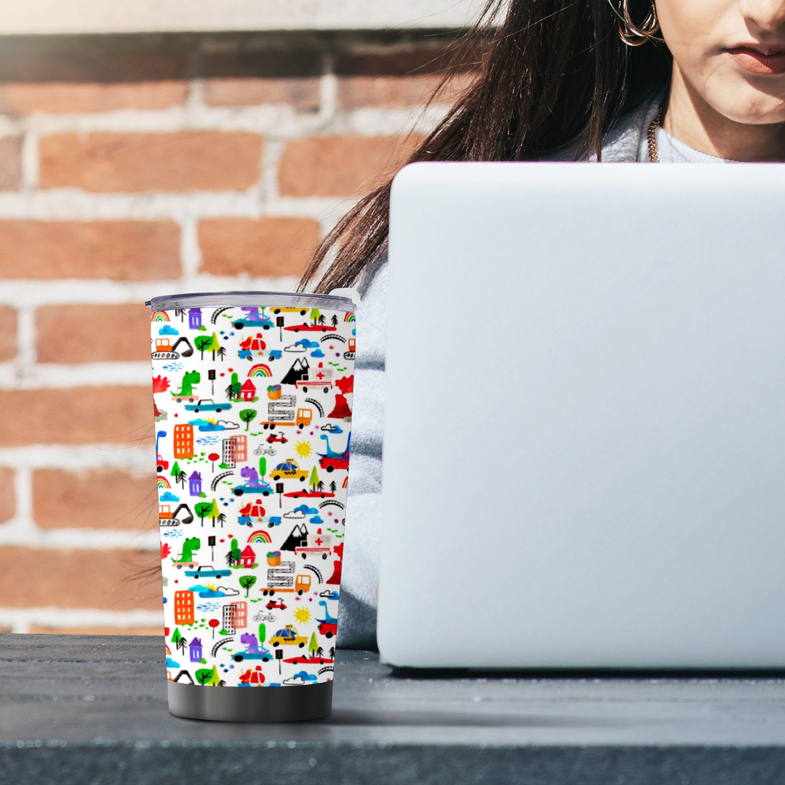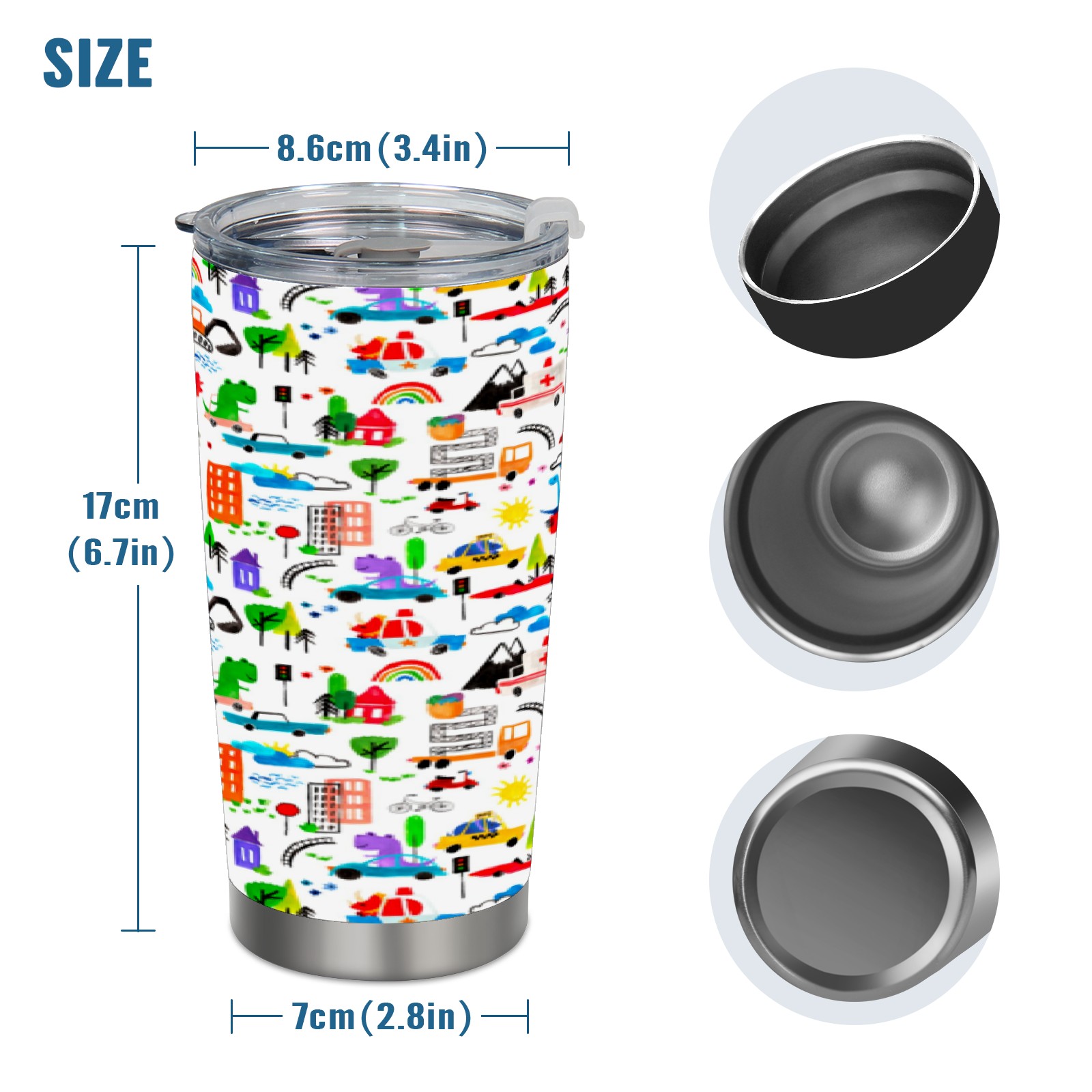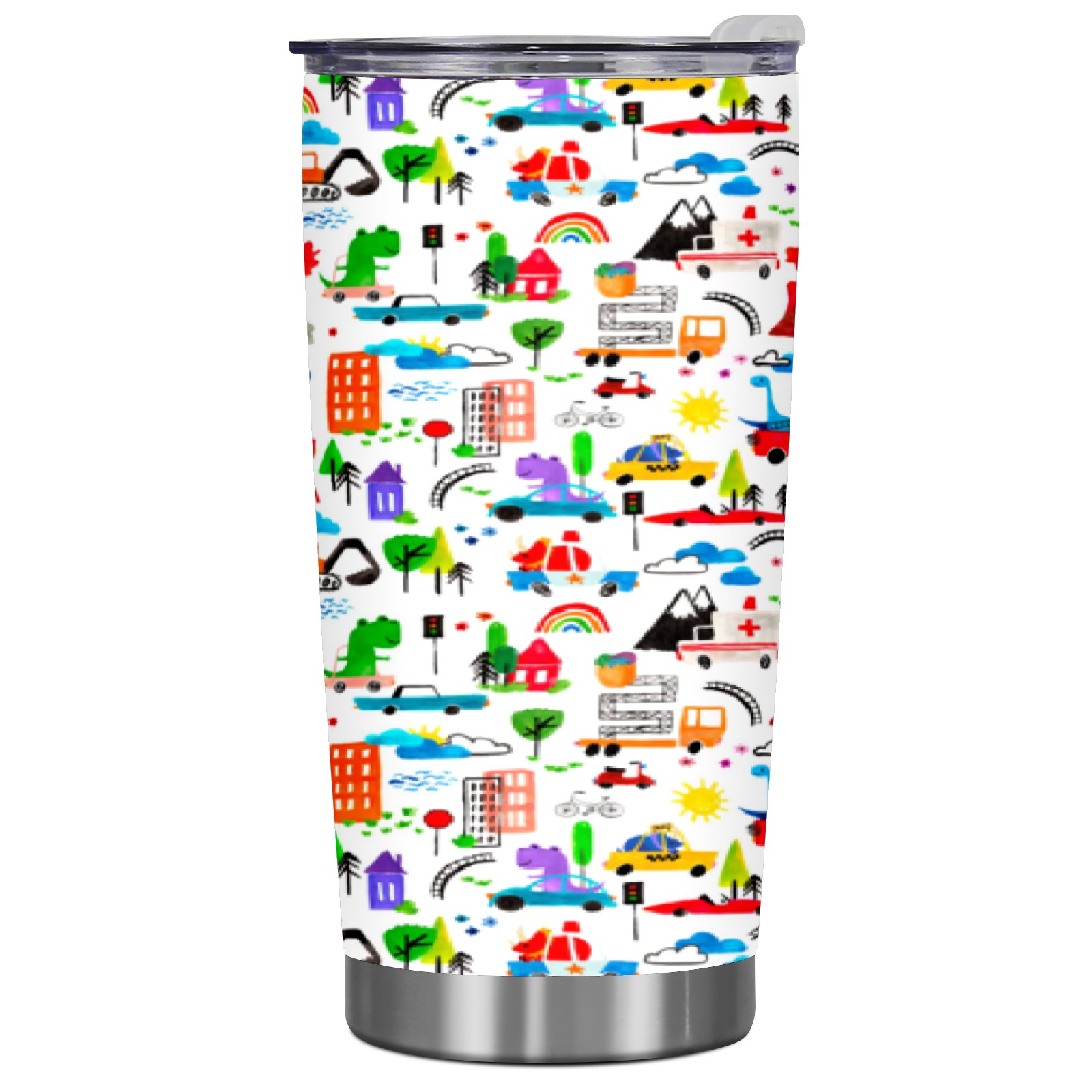 20 oz Tumbler Dinosaur Watercolor Busy City Kids Dino Pattern Stainless Steel Insulated Tumbler with Lid Double Wall Vacuum Insulated Travel Mug Cup for Coffee Ice Hot Drinks