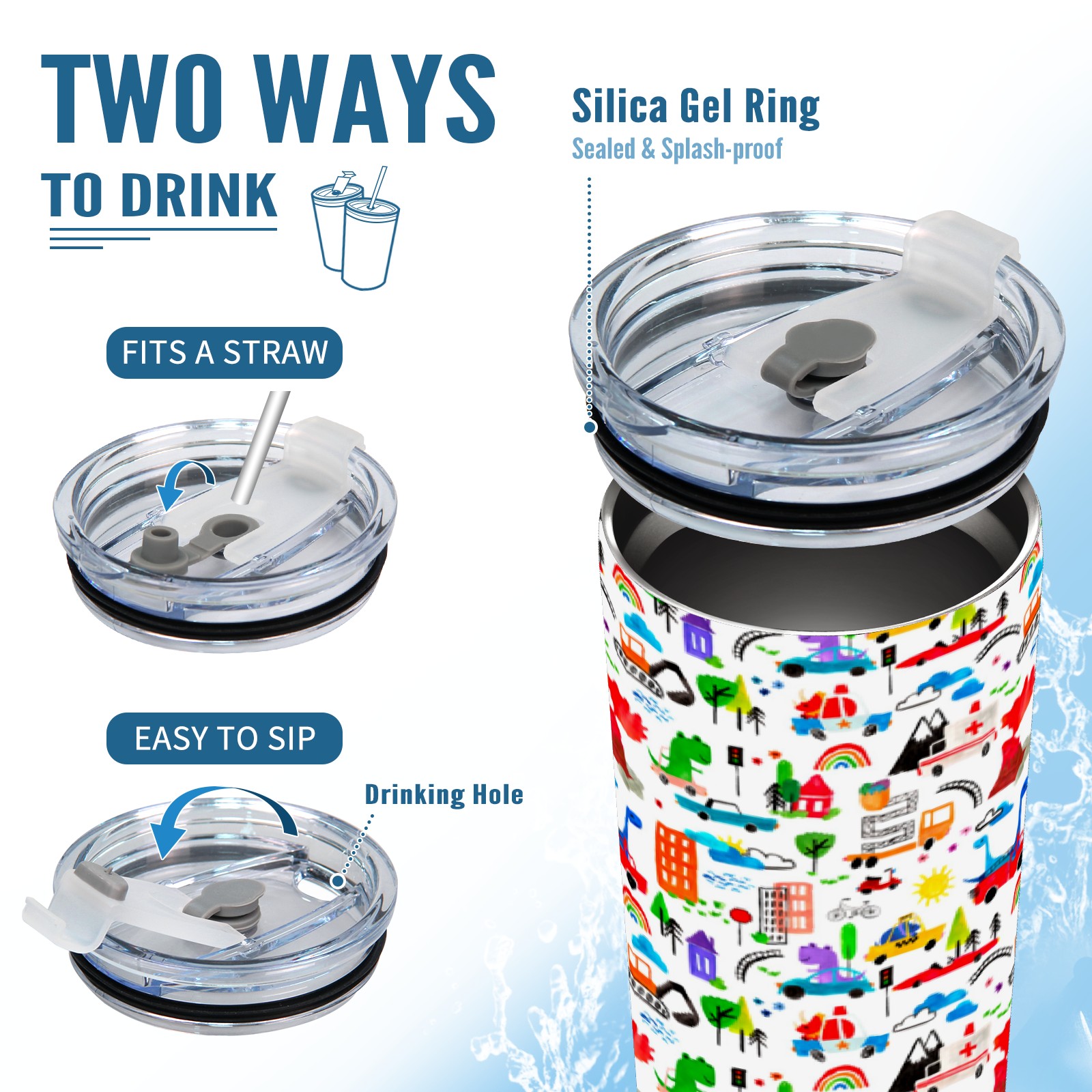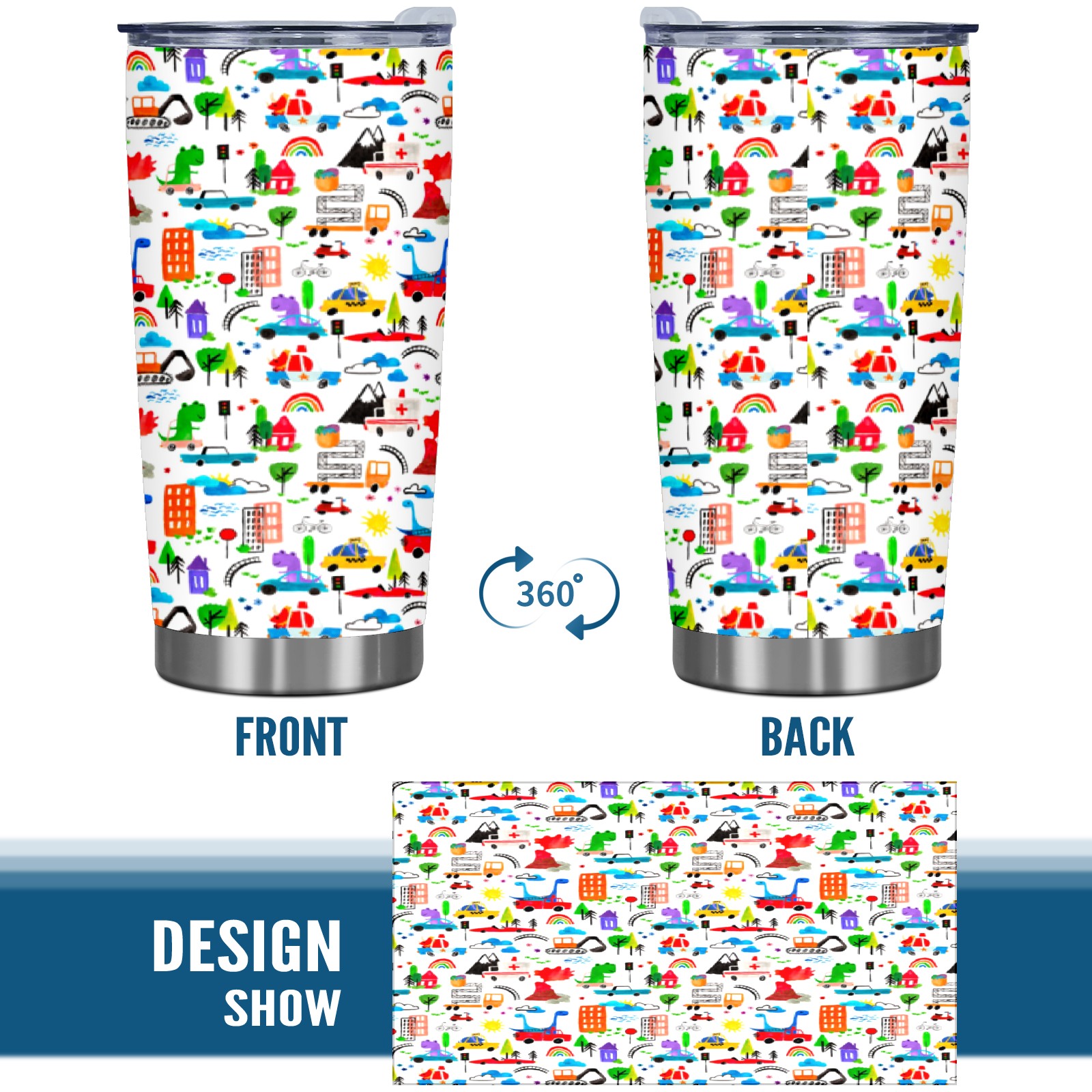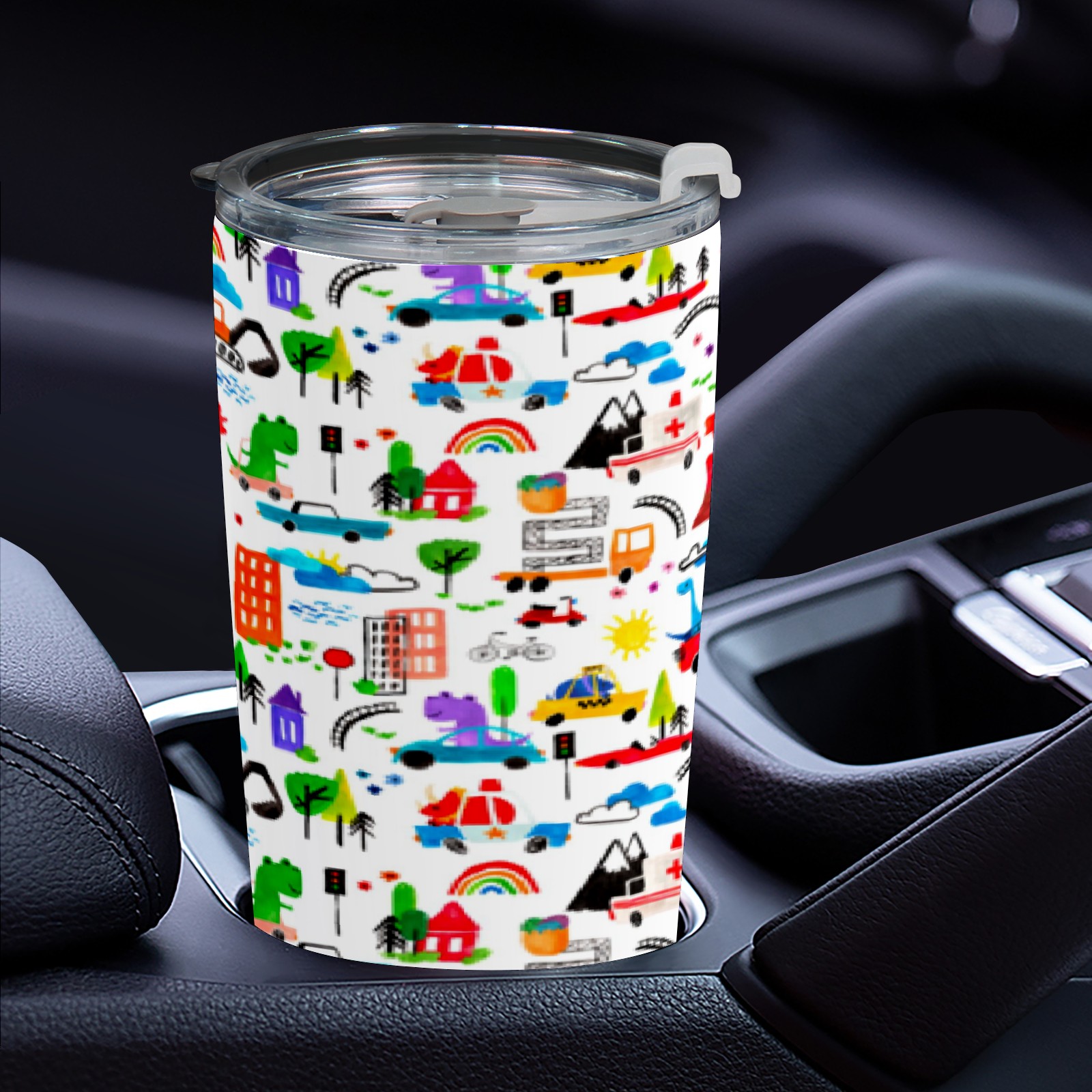 20 oz Tumbler Dinosaur Watercolor Busy City Kids Dino Pattern Stainless Steel Insulated Tumbler with Lid Double Wall Vacuum Insulated Travel Mug Cup for Coffee Ice Hot Drinks