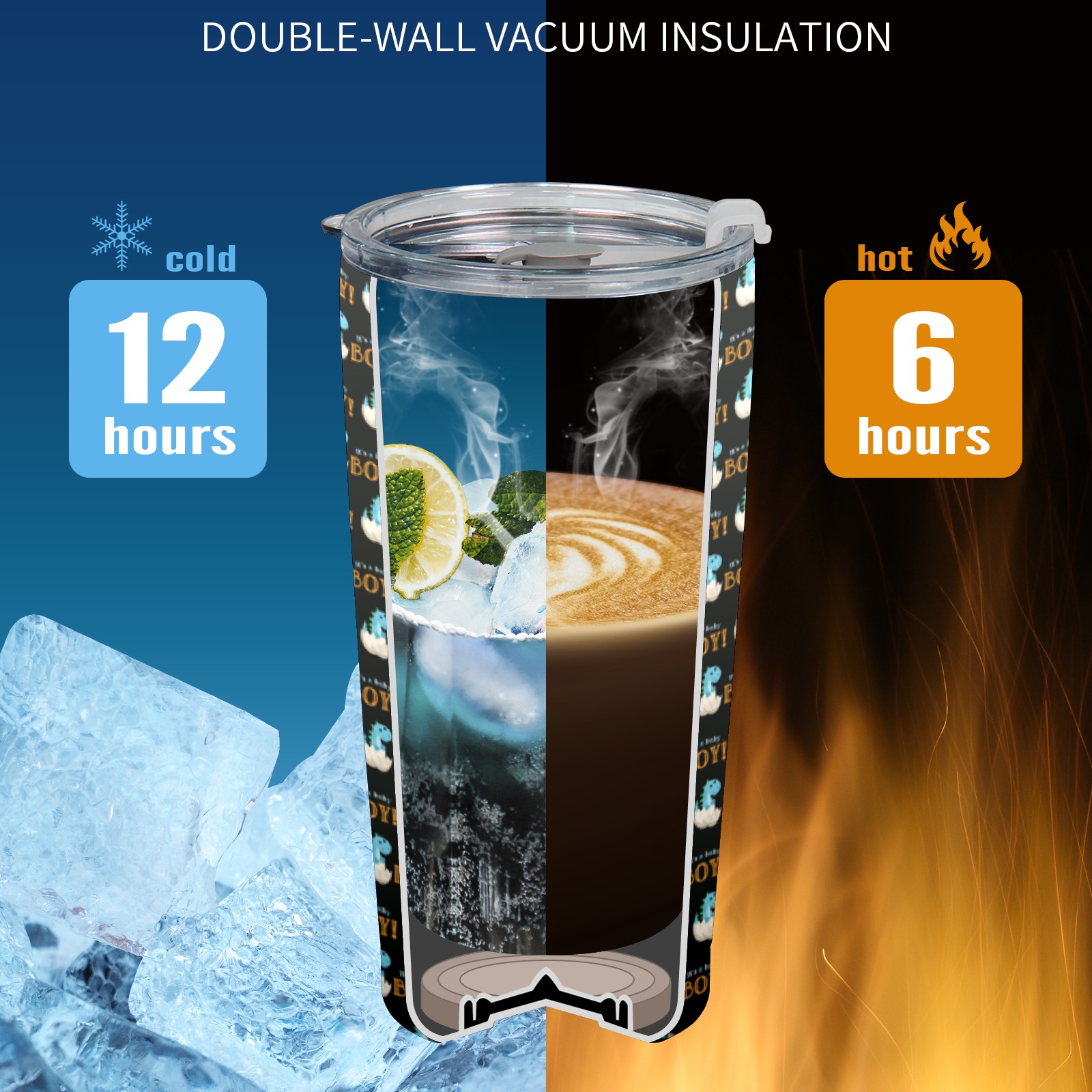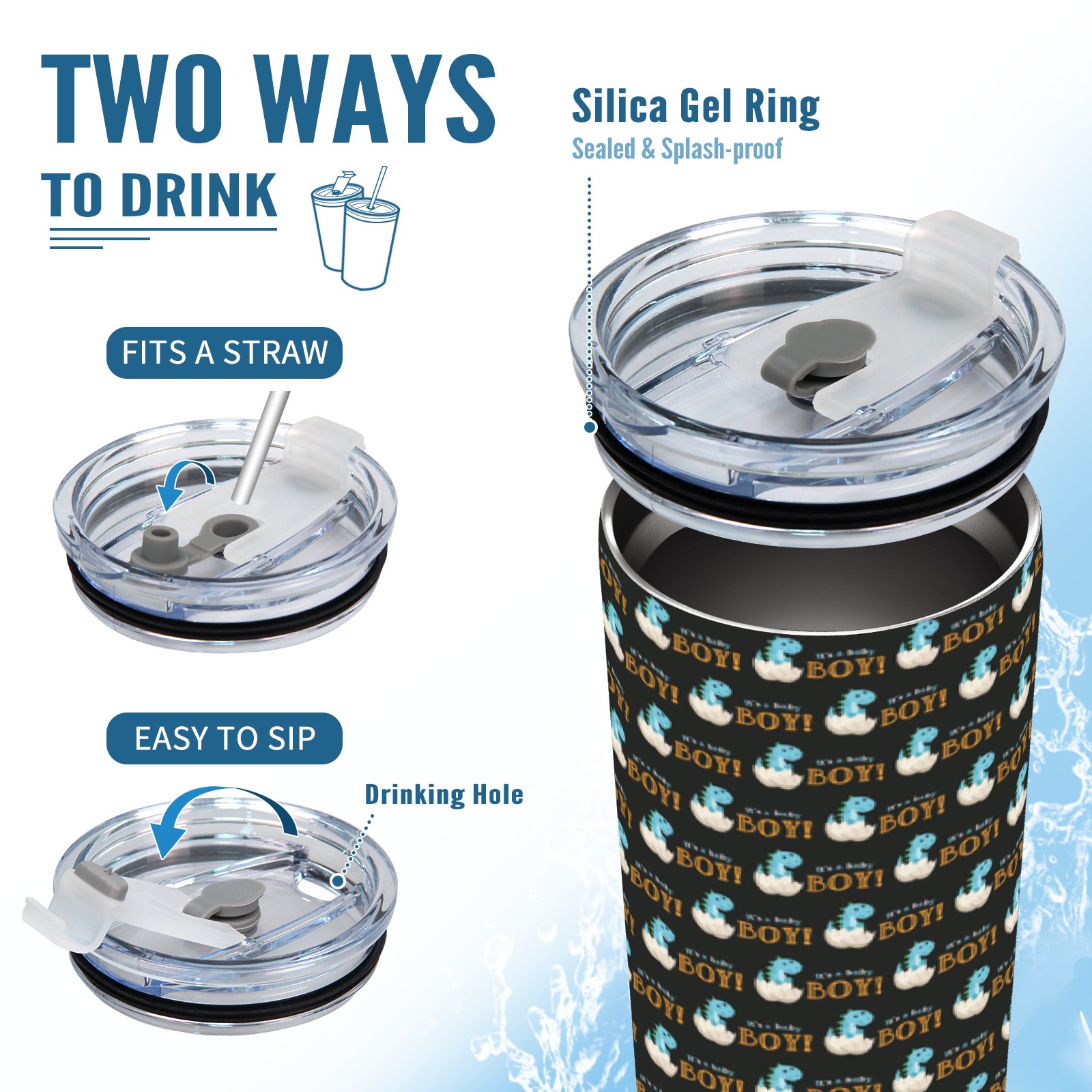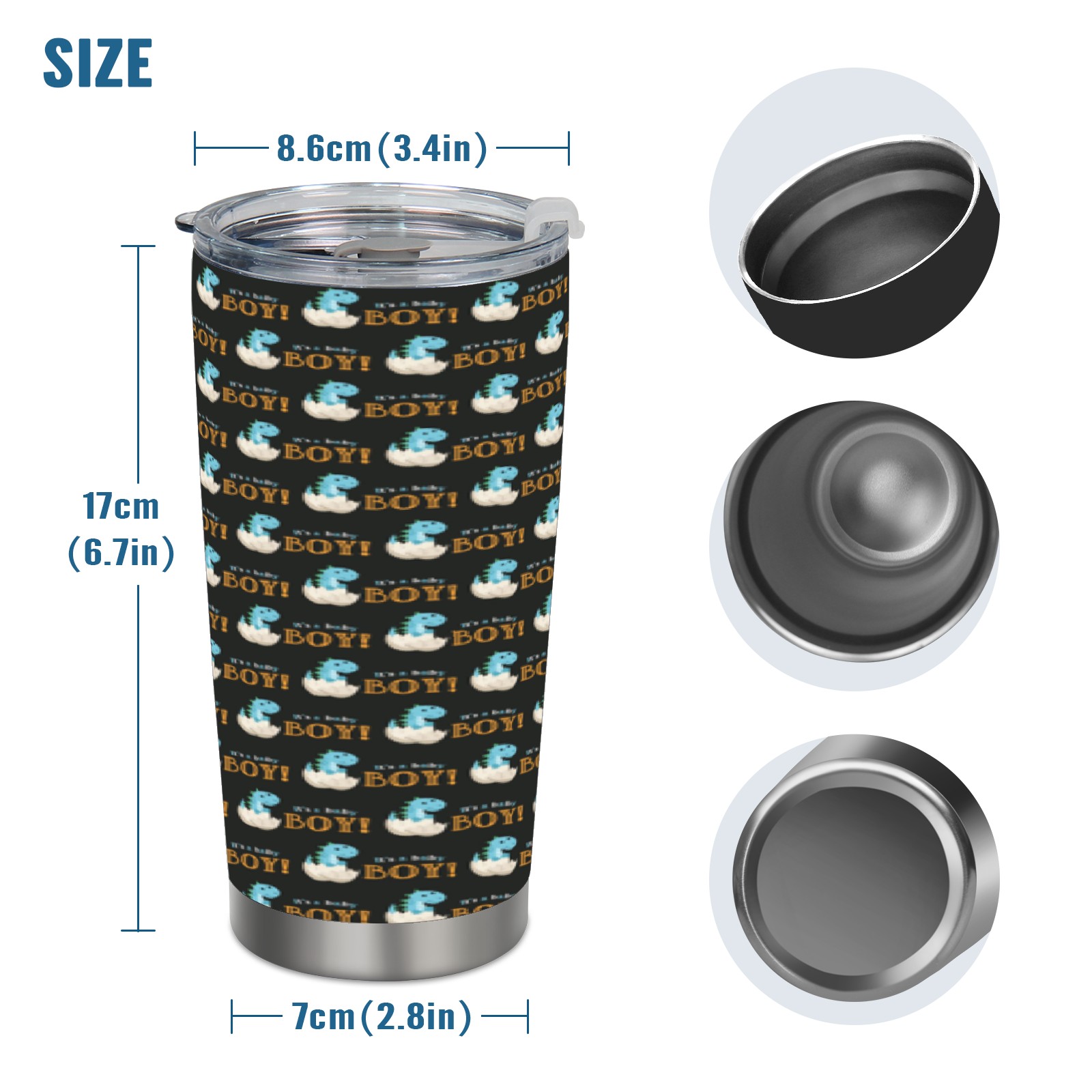 20 oz Tumbler Dinosaur It's A Boy Baby Stainless Steel Insulated Tumbler with Lid Double Wall Vacuum Insulated Travel Mug Cup for Coffee Ice Hot Drinks