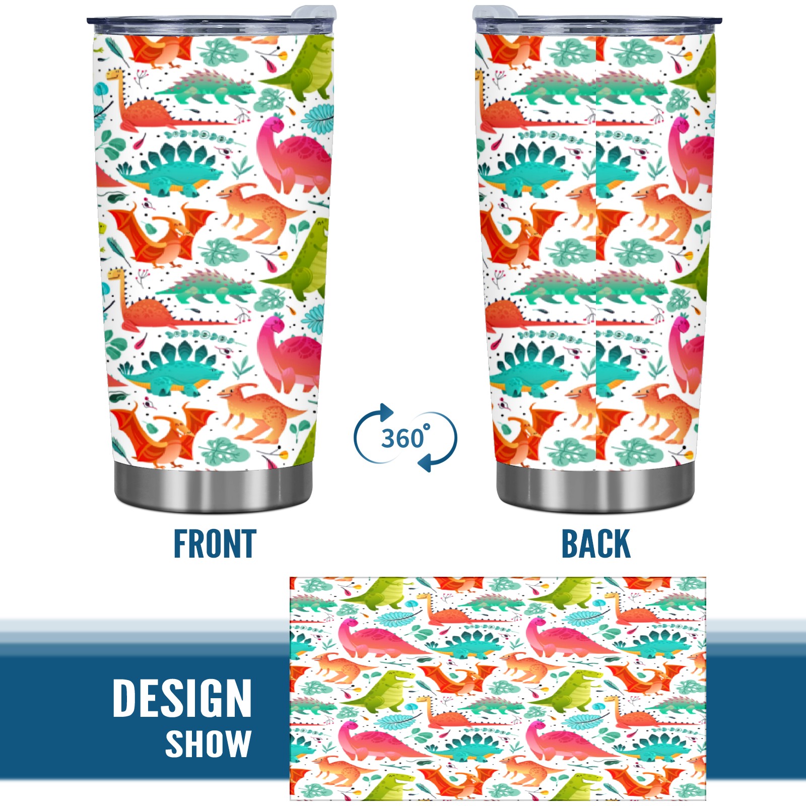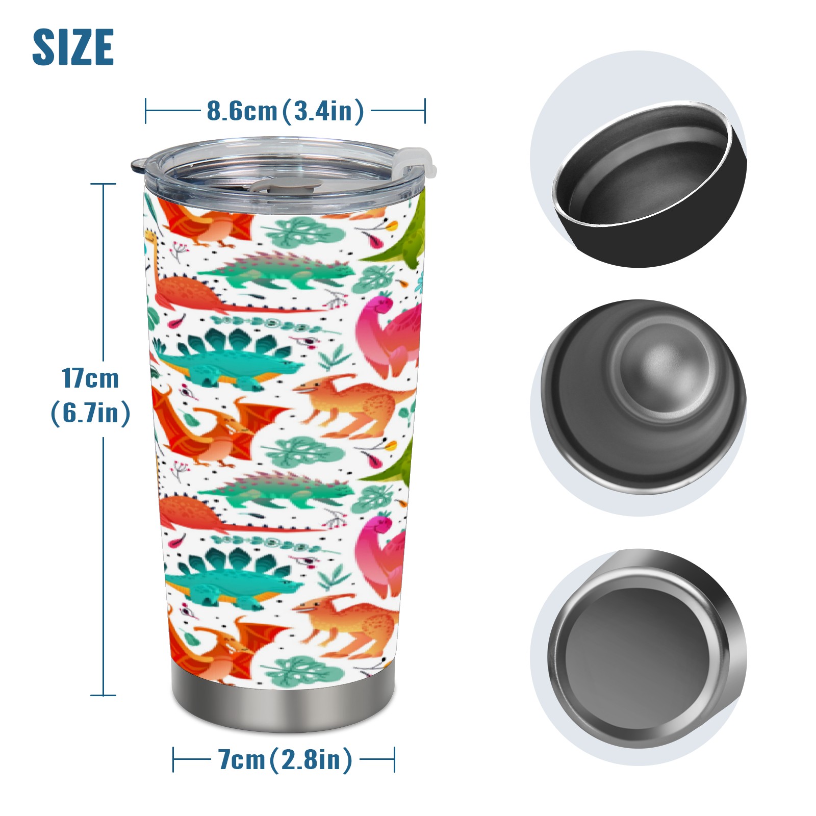 20 oz Tumbler Watercolor Dinosaurs Stainless Steel Insulated Tumbler with Lid Double Wall Vacuum Insulated Travel Mug Cup for Coffee Ice Hot Drinks