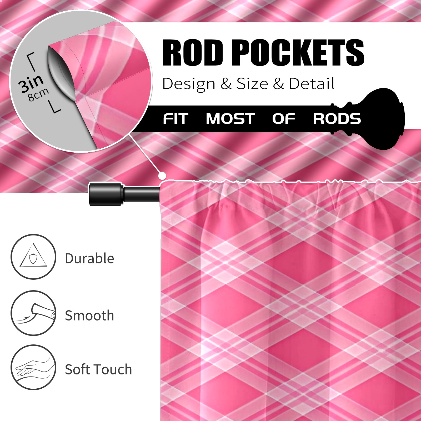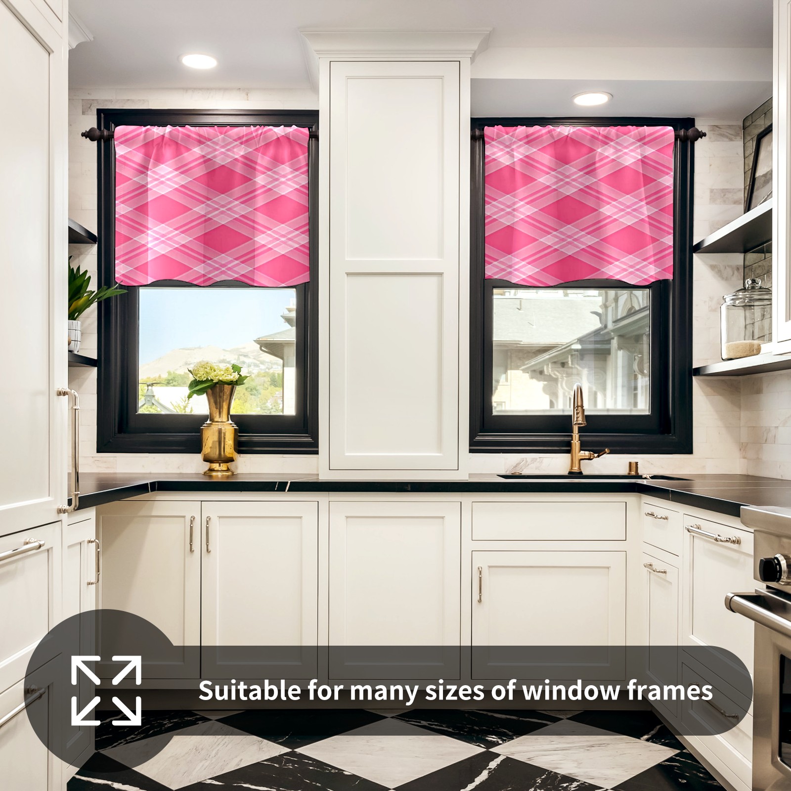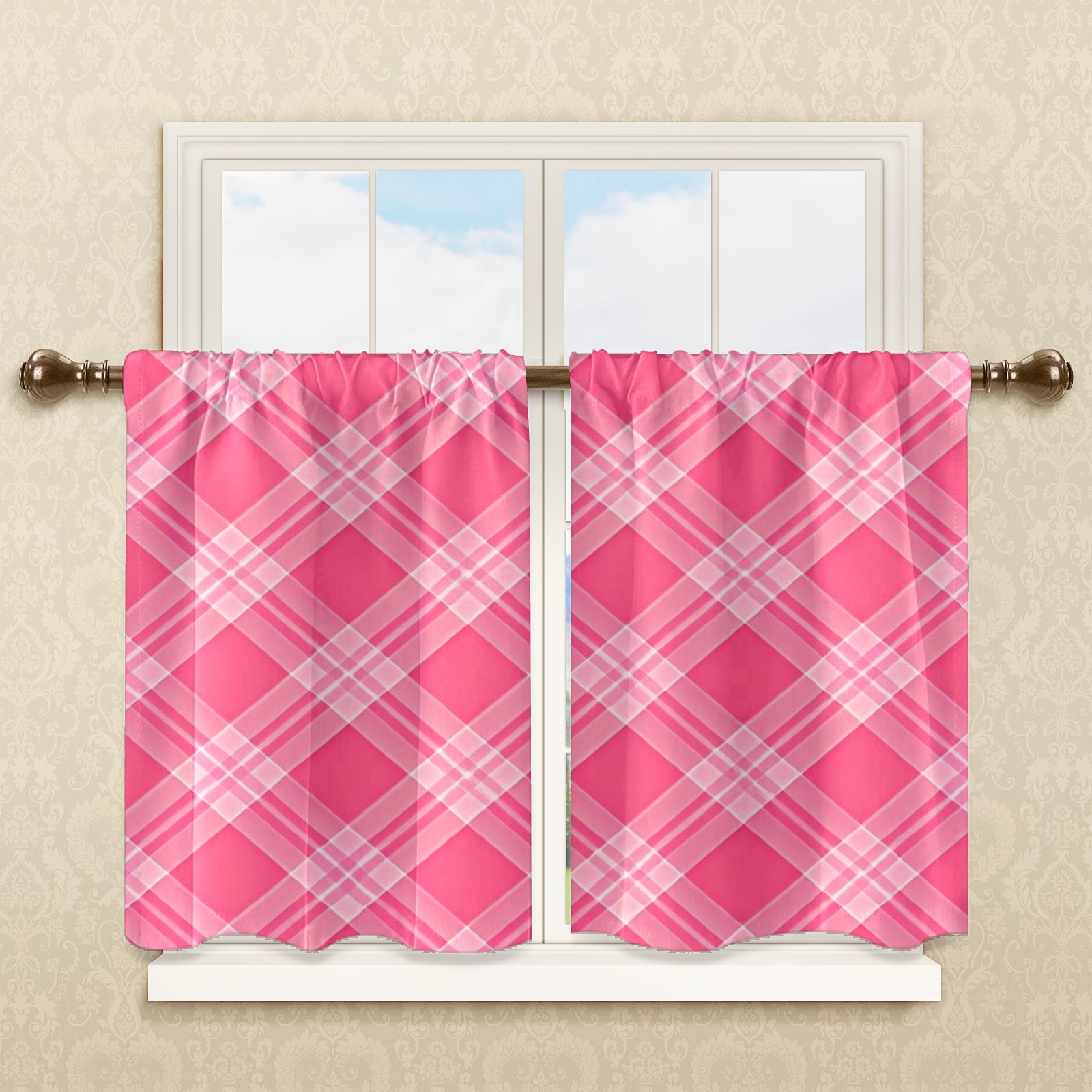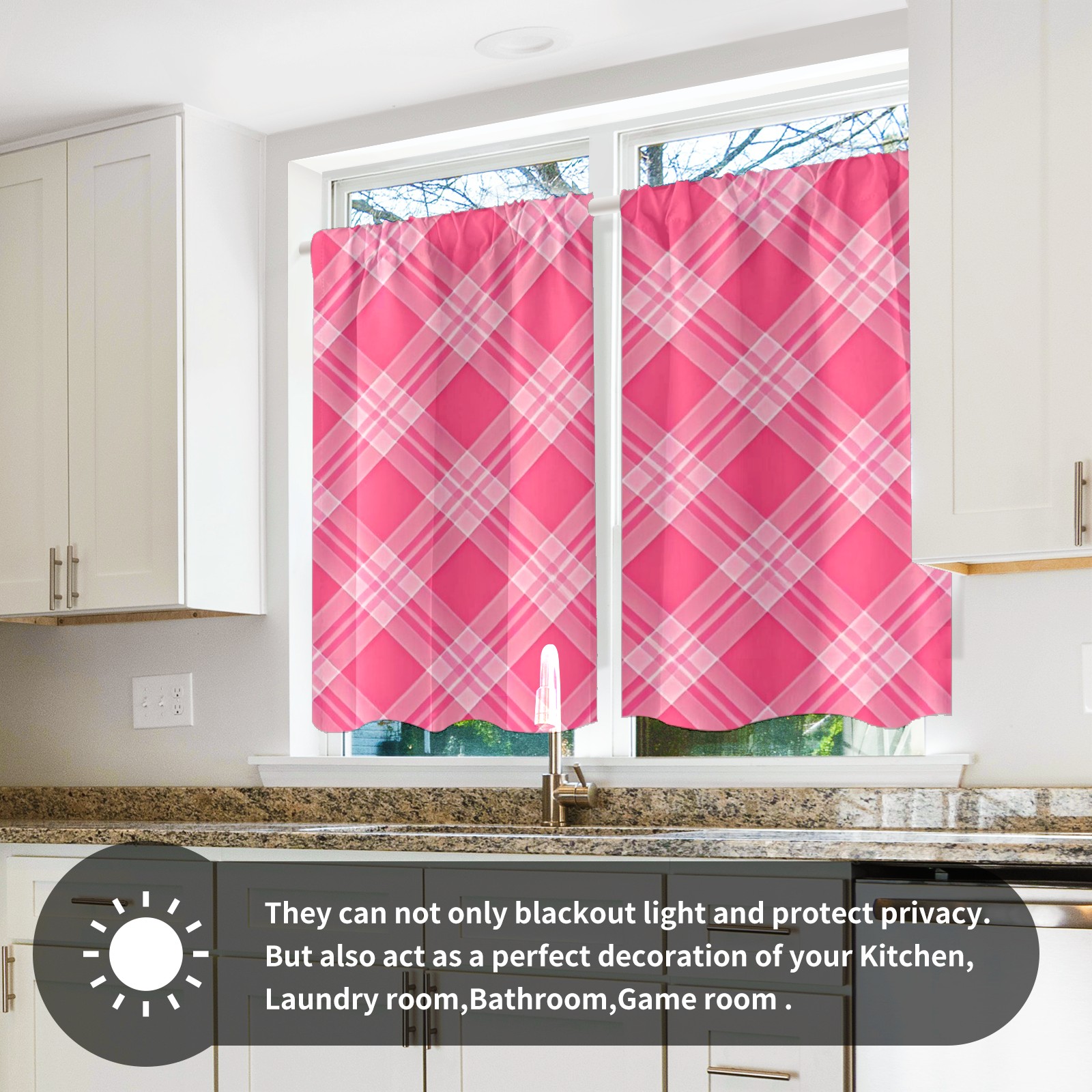 Шторы-панно для дома, декоративные драпировки для гостиной и спальни, легкие и прочные, Pink White Checkered