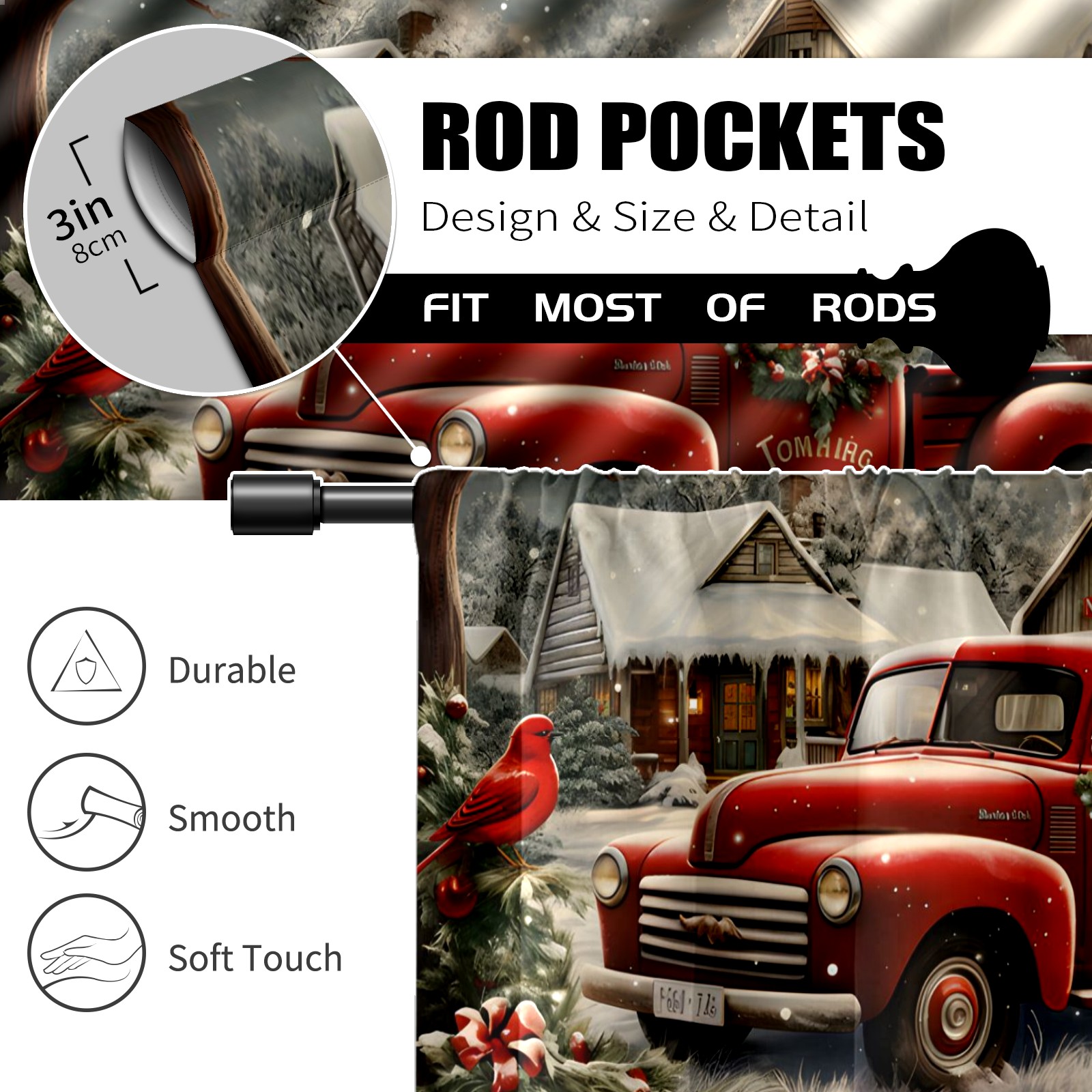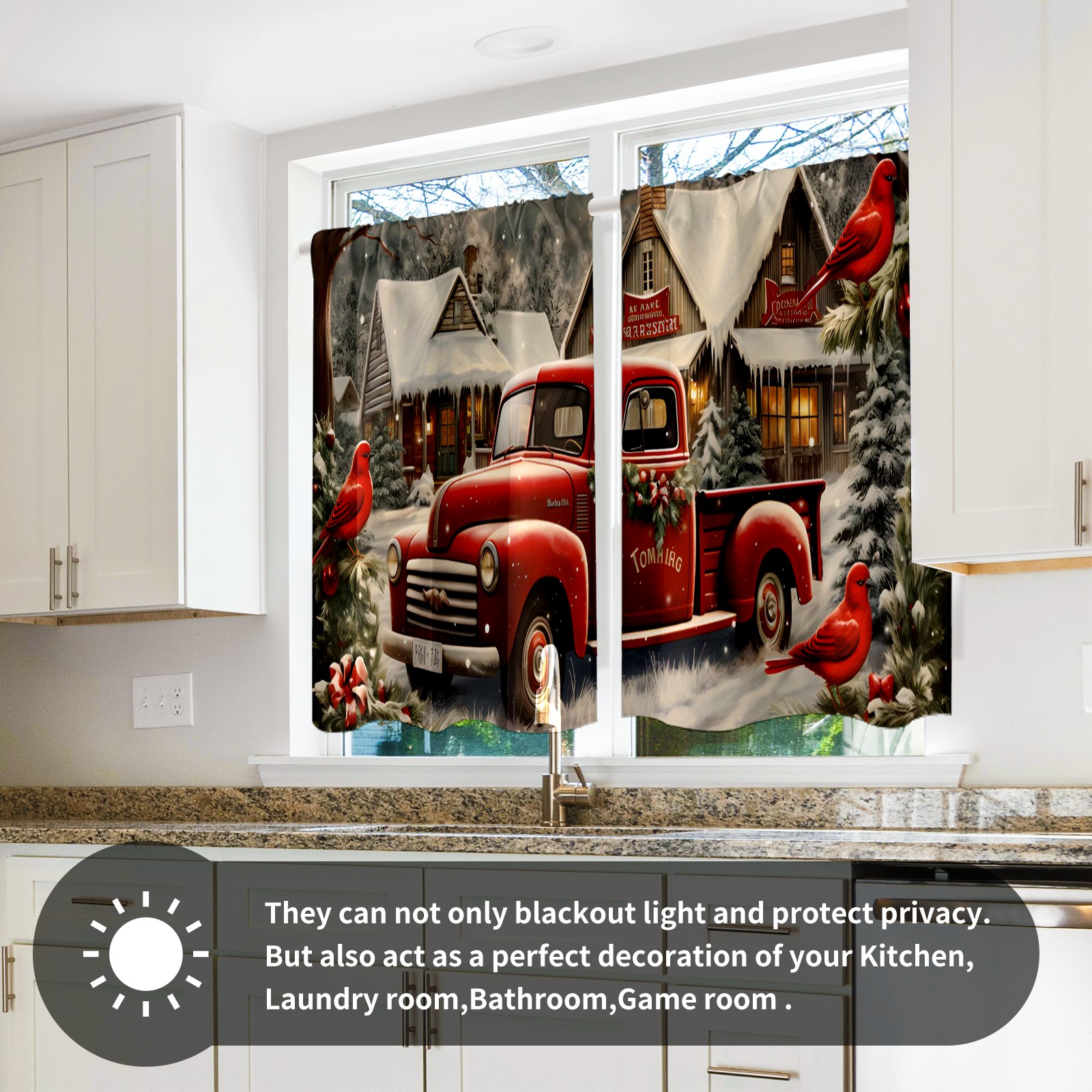 Шторы-панно для дома, декоративные драпировки для гостиной и спальни, легкие и прочные, Christmas Snow Truck