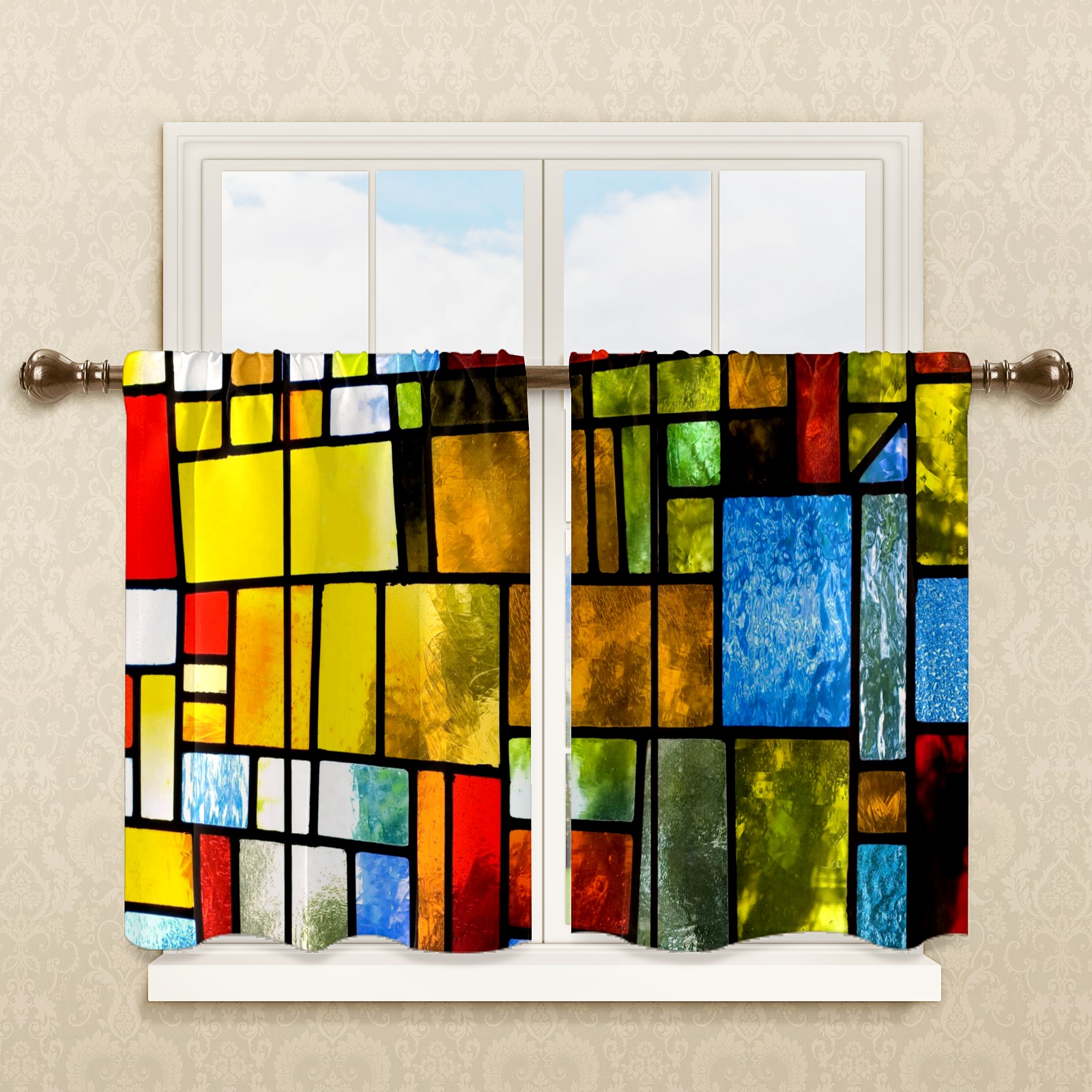 Шторы-панно для дома, декоративные драпировки для гостиной и спальни, легкие и прочные, Vintage Stained Glass Texture