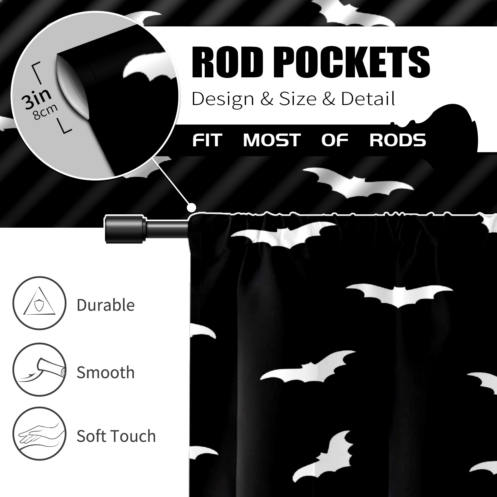 Шторы-панно для дома, декоративные драпировки для гостиной и спальни, легкие и прочные, Black White Goth Bats