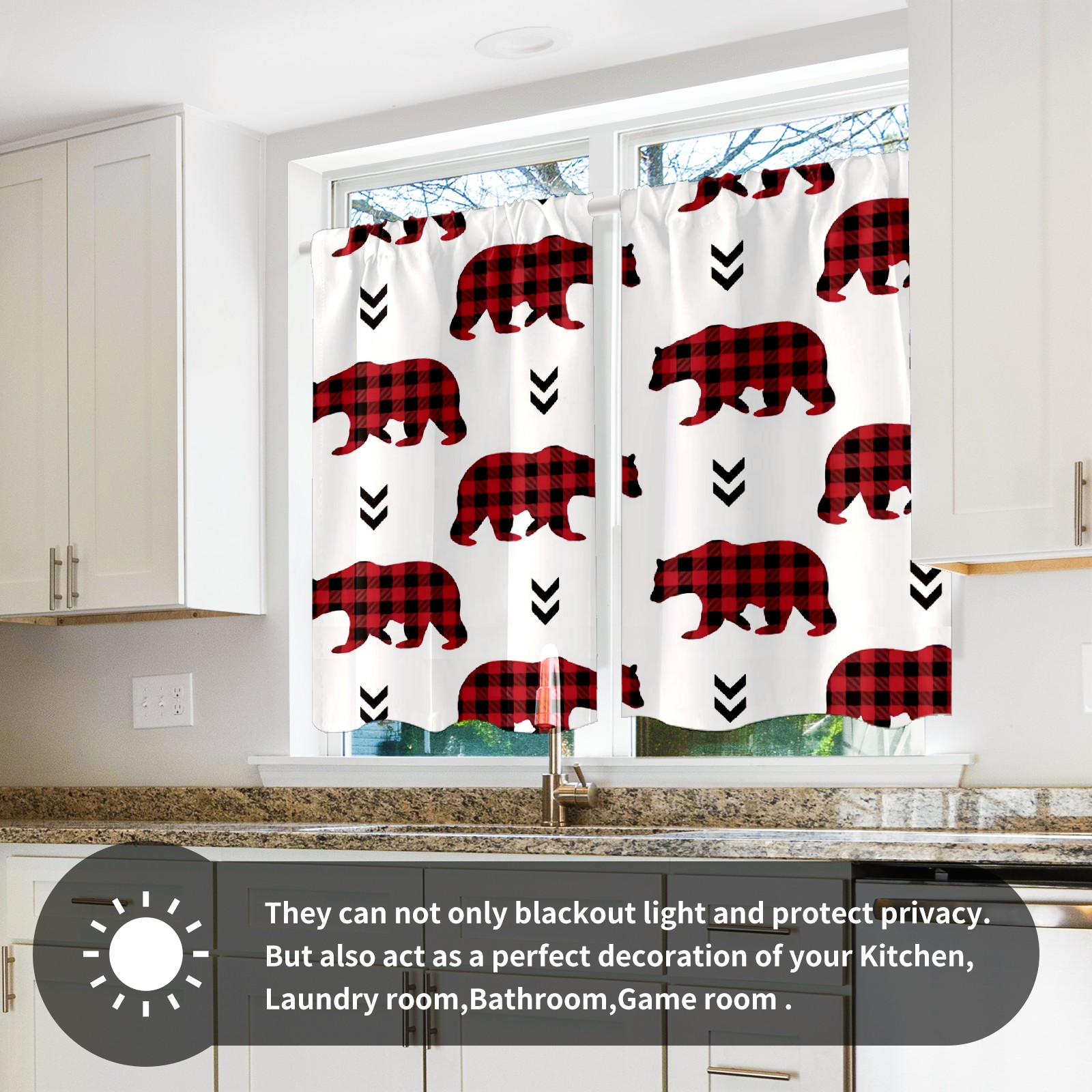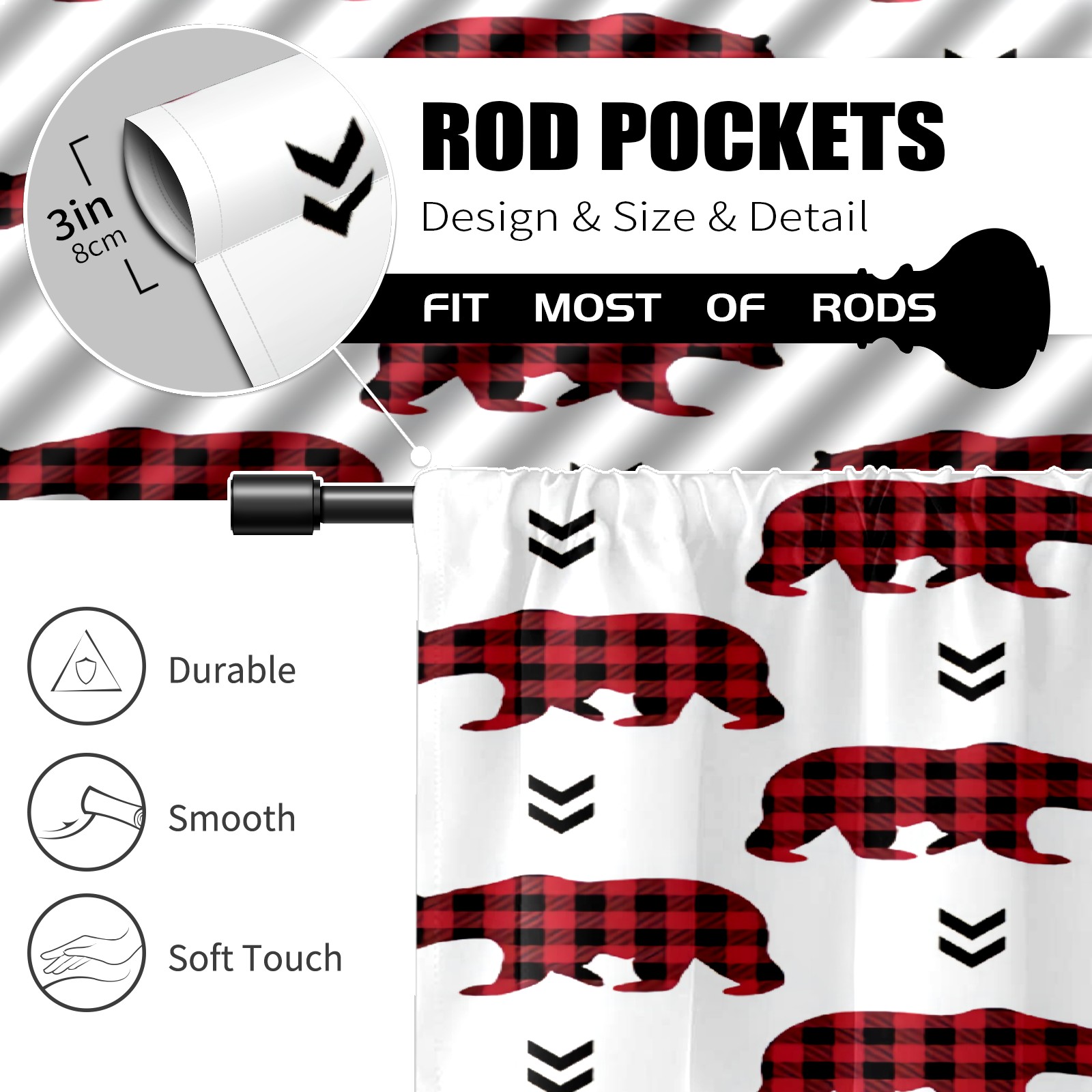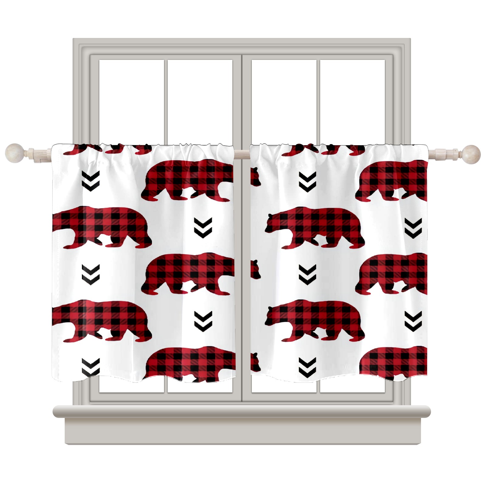 Шторы-панно для дома, декоративные драпировки для гостиной и спальни, легкие и прочные, Red And Black Buffalo Plaid Bear