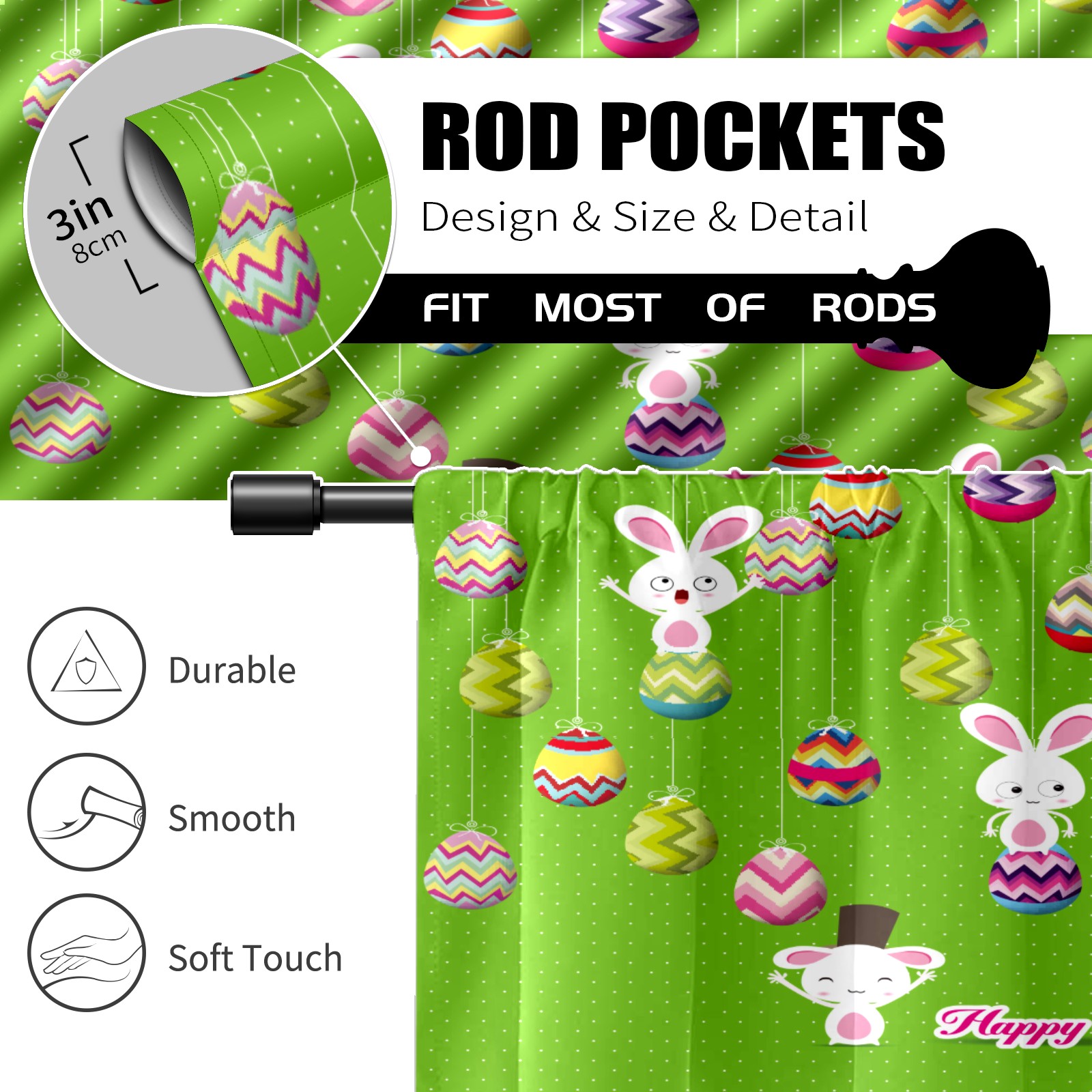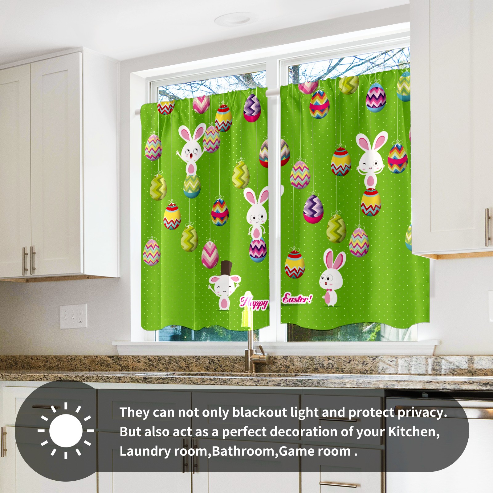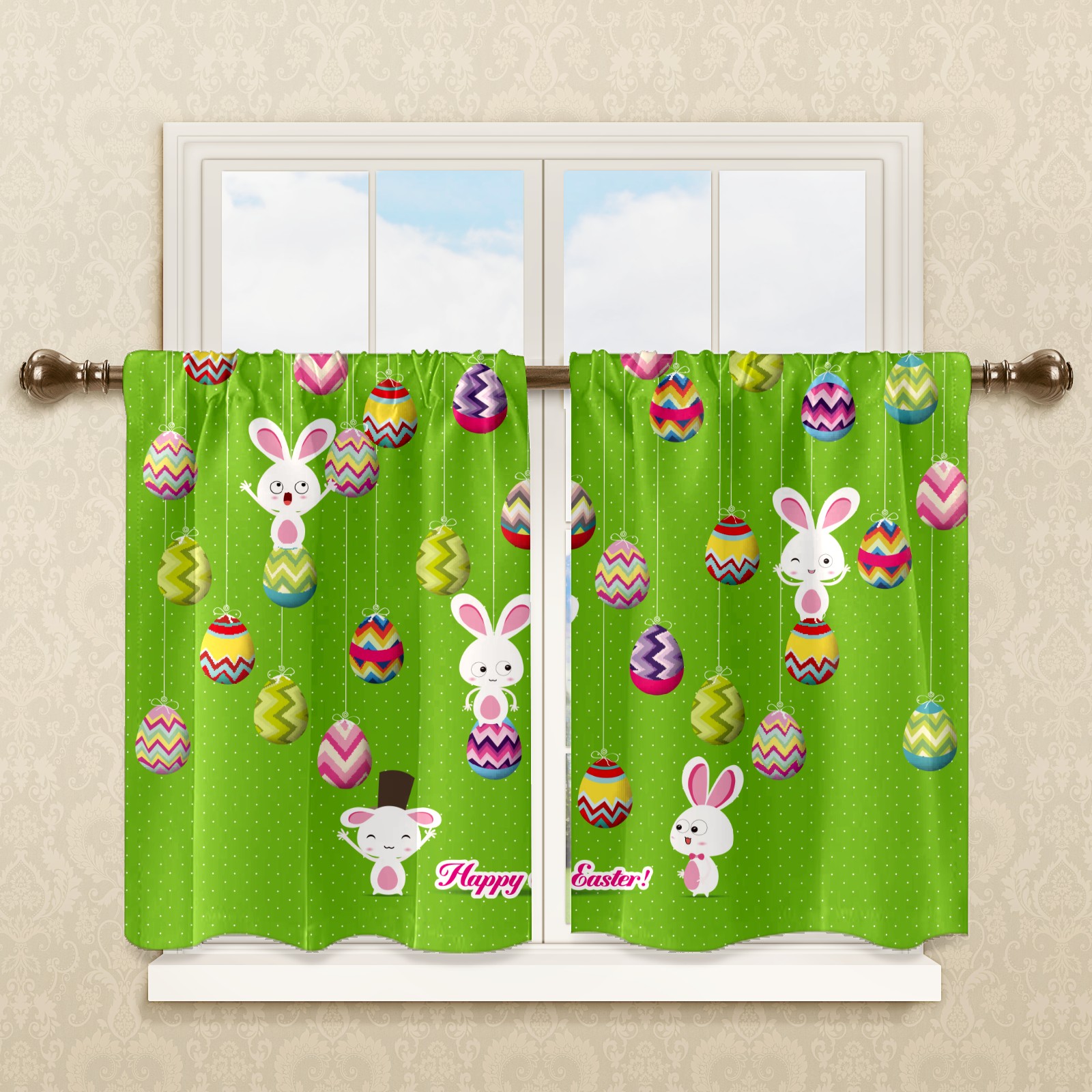 Шторы-панно для дома, декоративные драпировки для гостиной и спальни, легкие и прочные, Easter Bunny Eggs Green Polka Dot