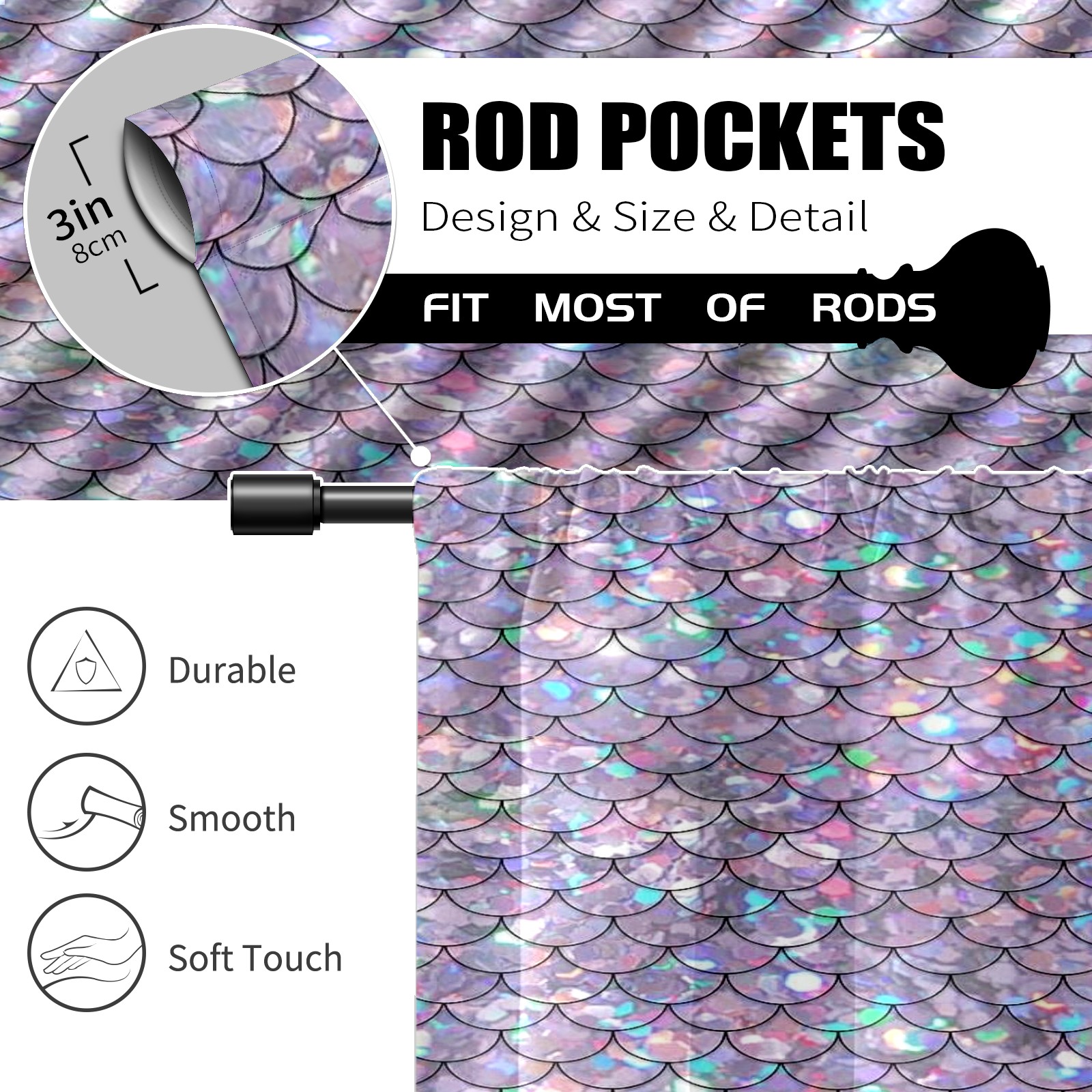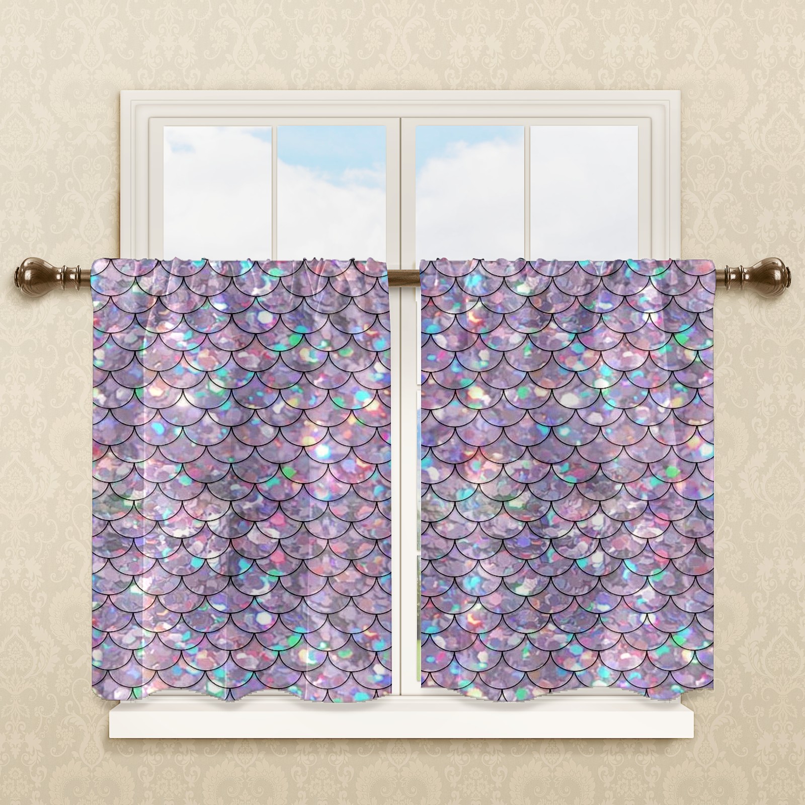 Шторы-панно для дома, декоративные драпировки для гостиной и спальни, легкие и прочные, Mermaid Purple Scales