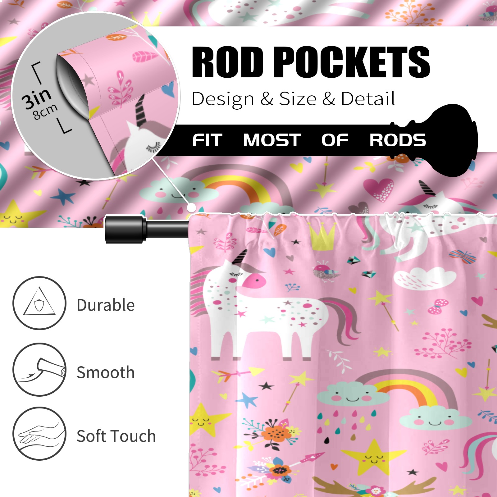Шторы-панно для дома, декоративные драпировки для гостиной и спальни, легкие и прочные, Cute Unicorn Pink