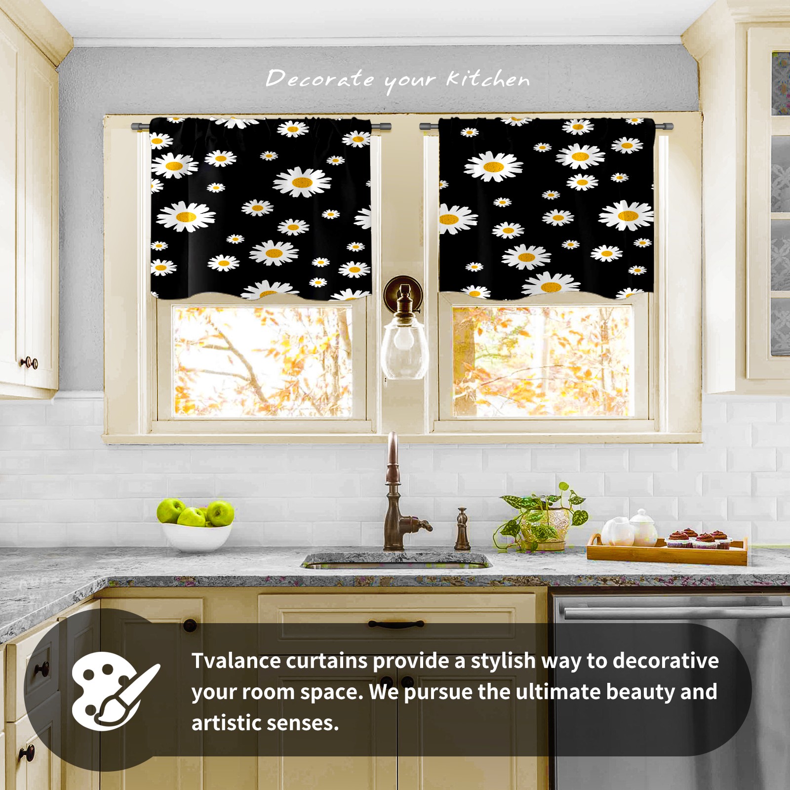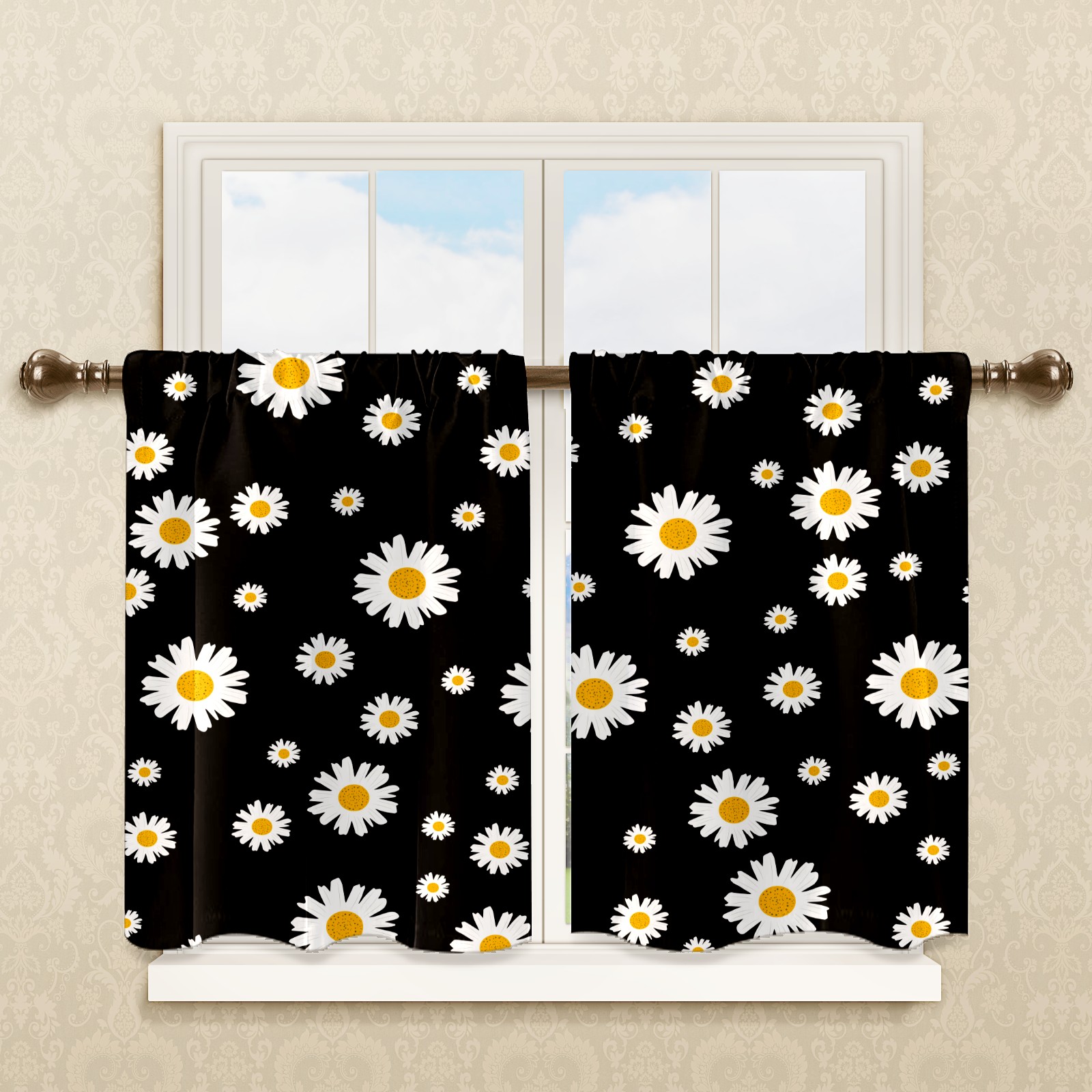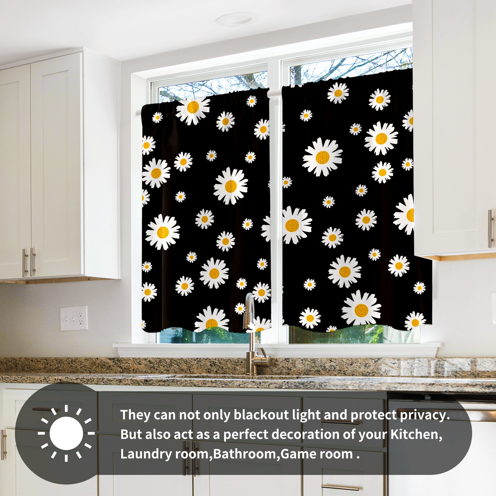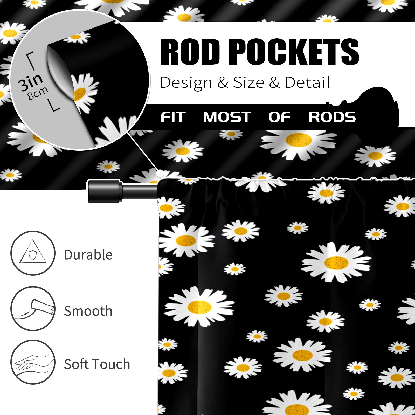 Шторы-панно для дома, декоративные драпировки для гостиной и спальни, легкие и прочные, Daisy Flower Floral Black