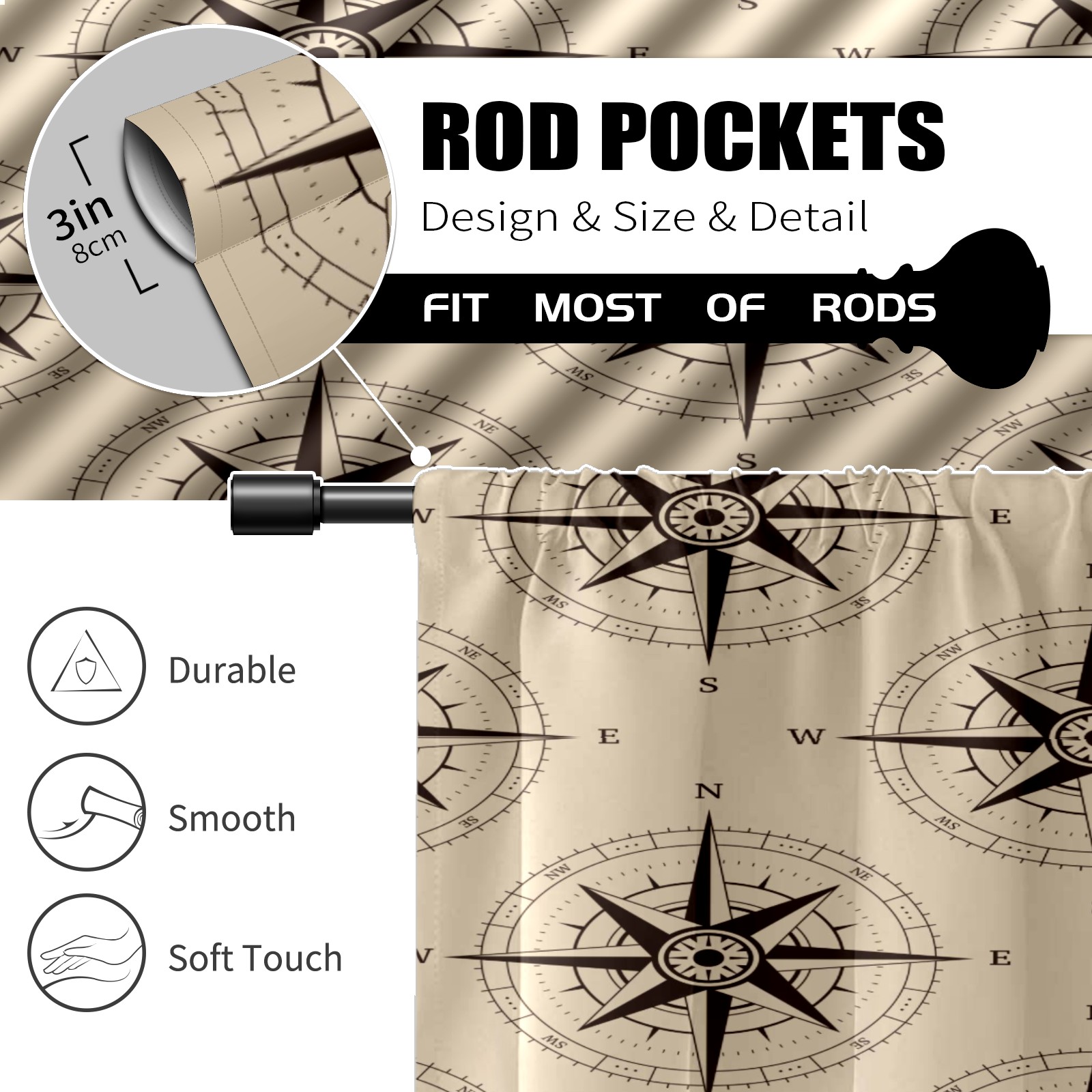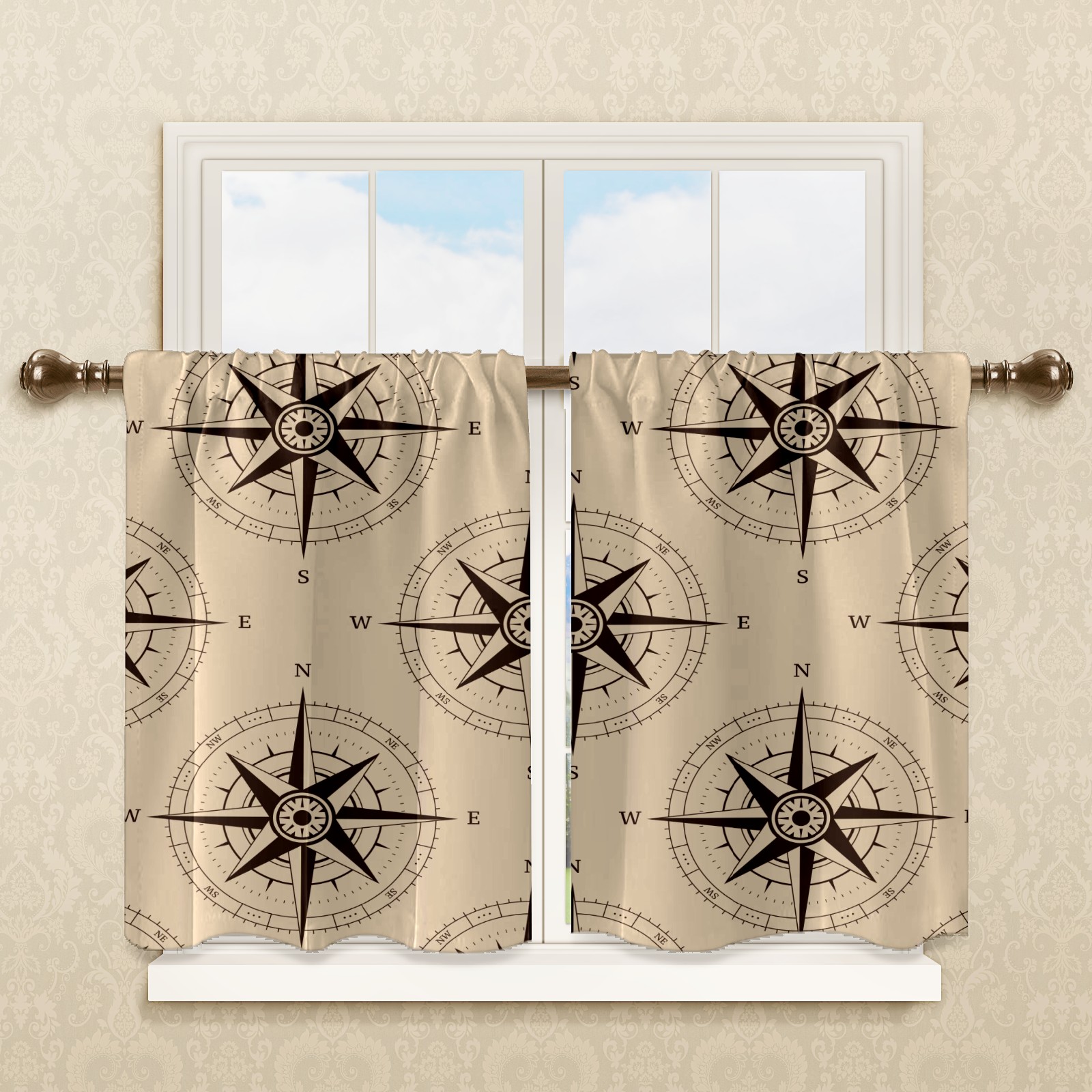 Шторы-панно для дома, декоративные драпировки для гостиной и спальни, легкие и прочные, Nautical Navigation Compass Retro
